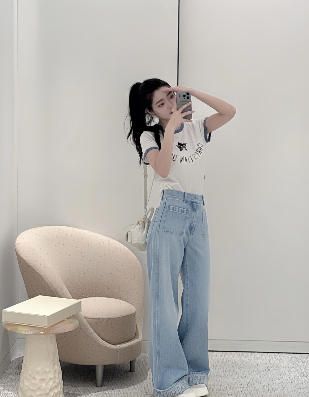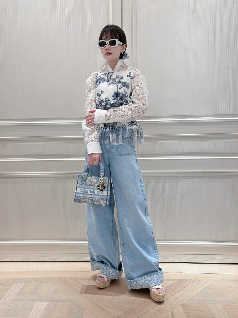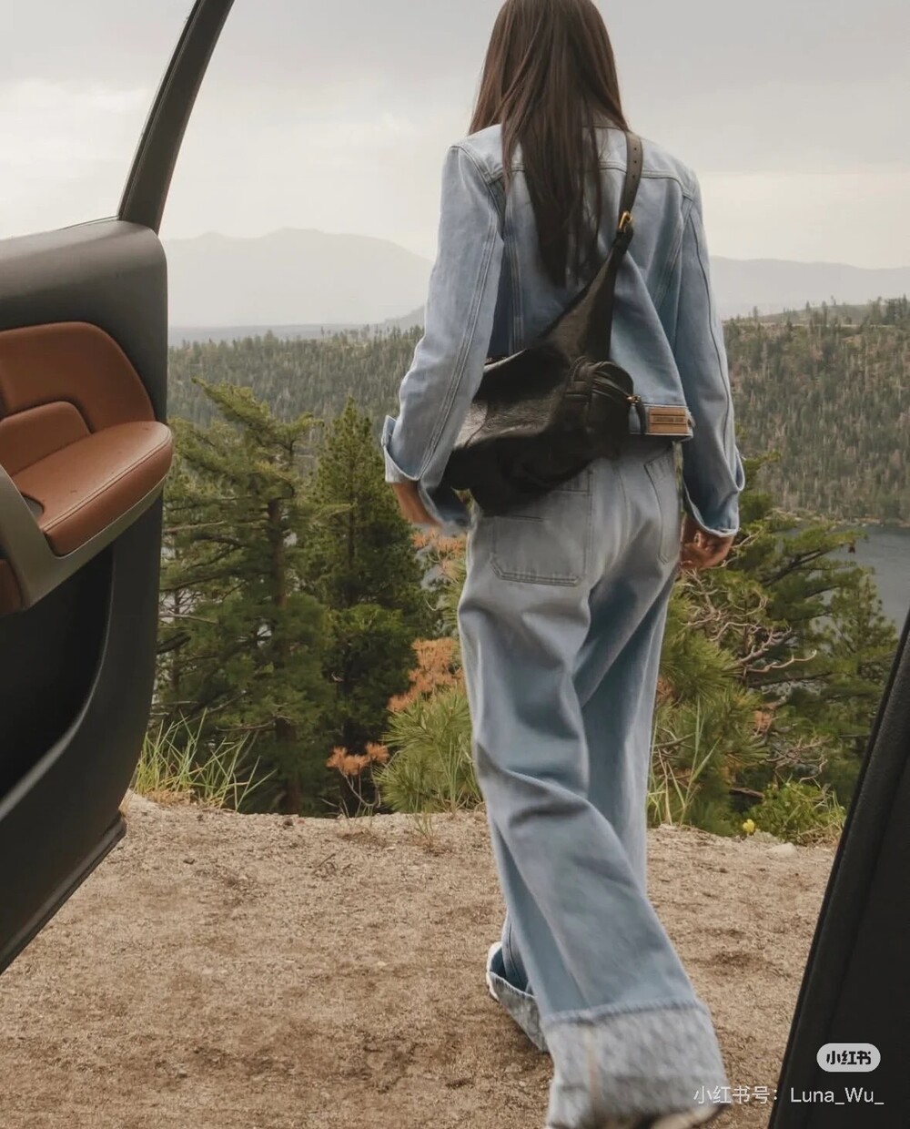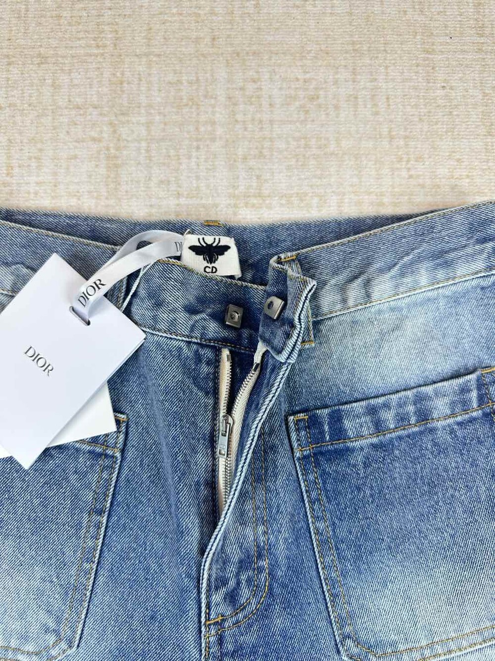 라이트 블루 워싱 원단으로 제작된