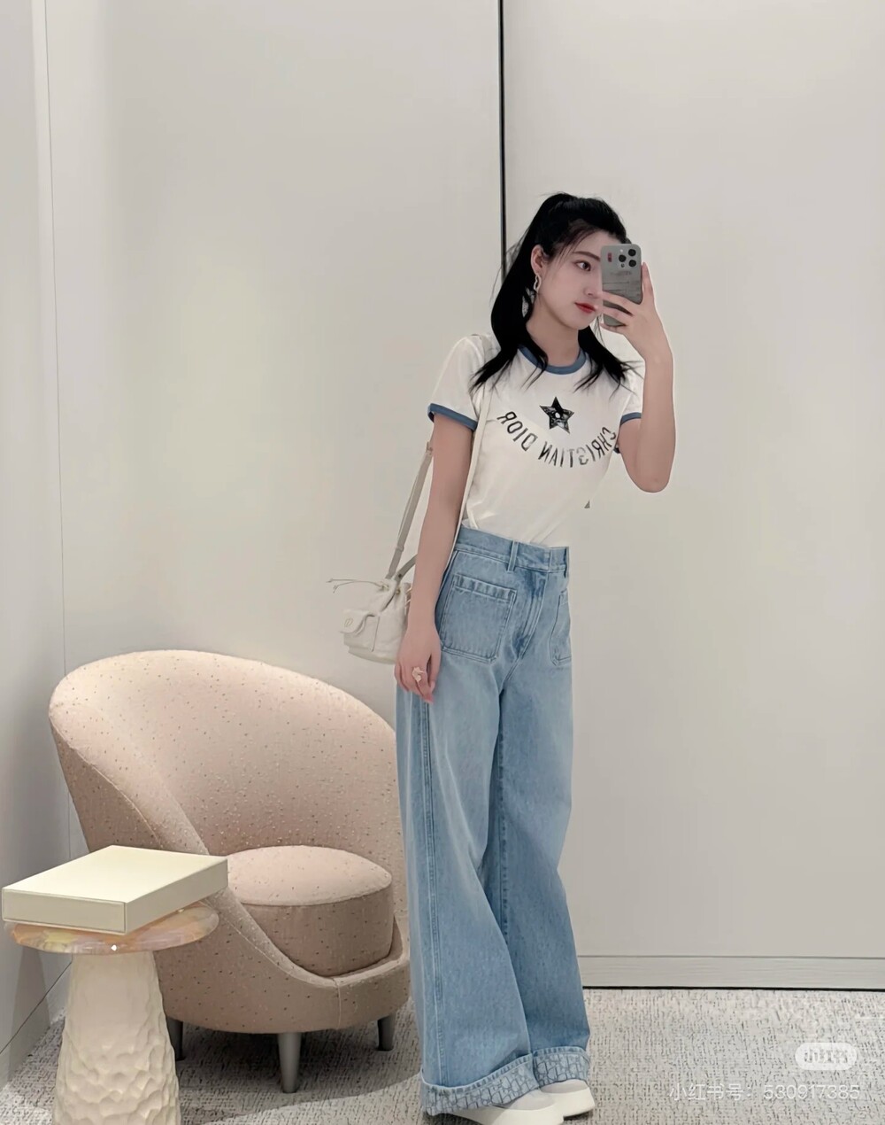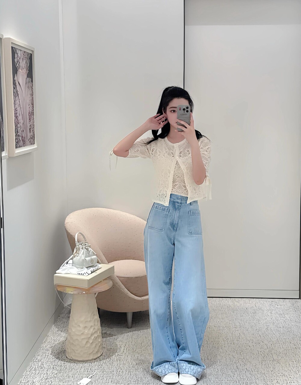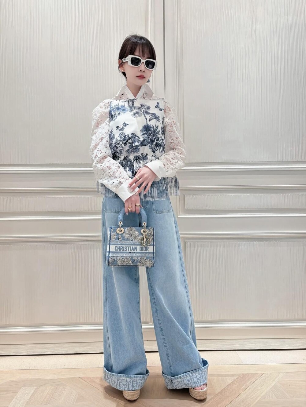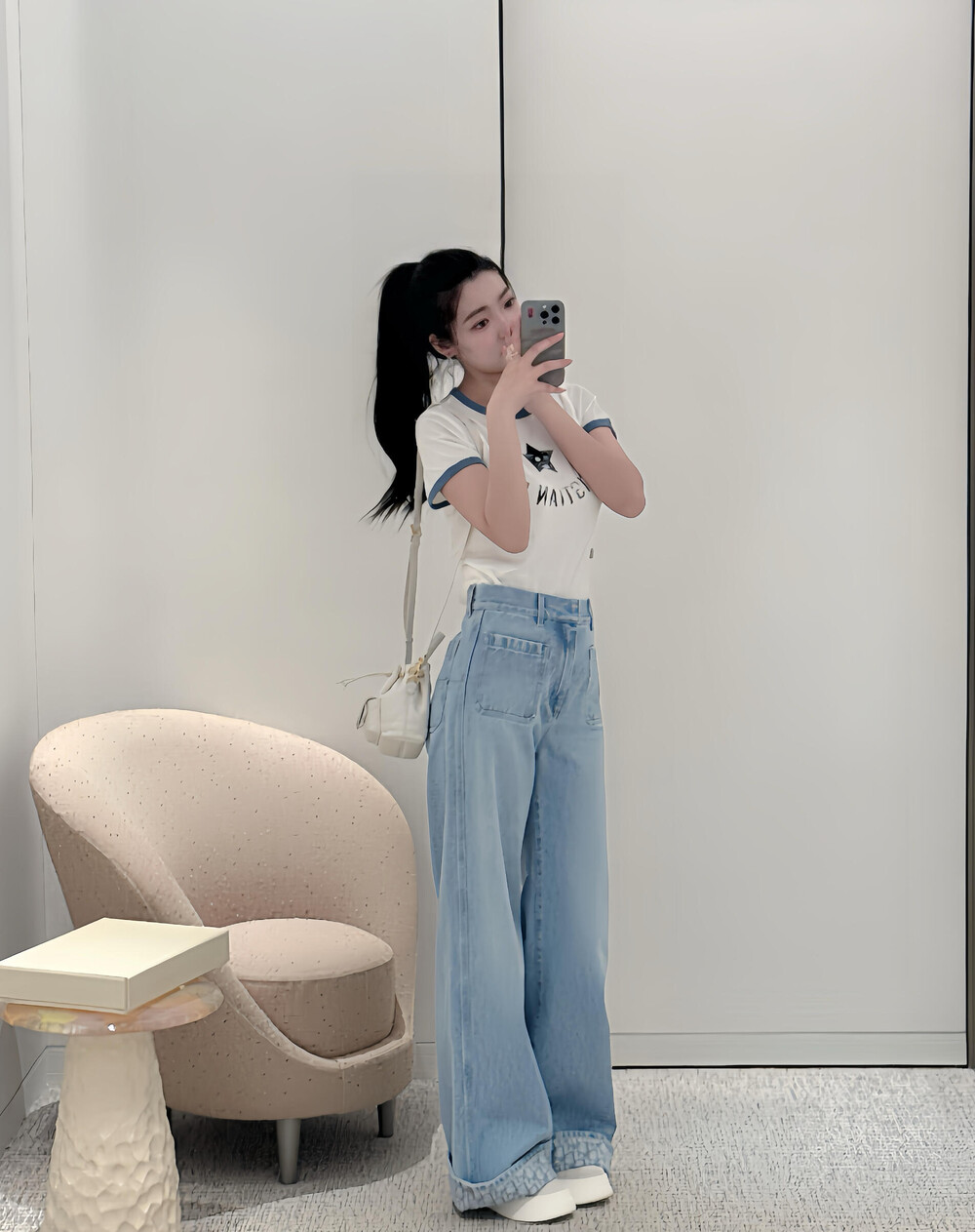 라이트 블루 워싱 원단으로 제작된