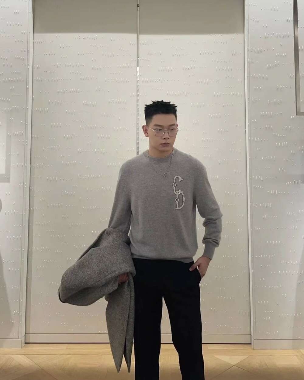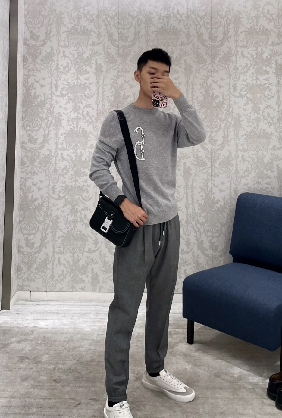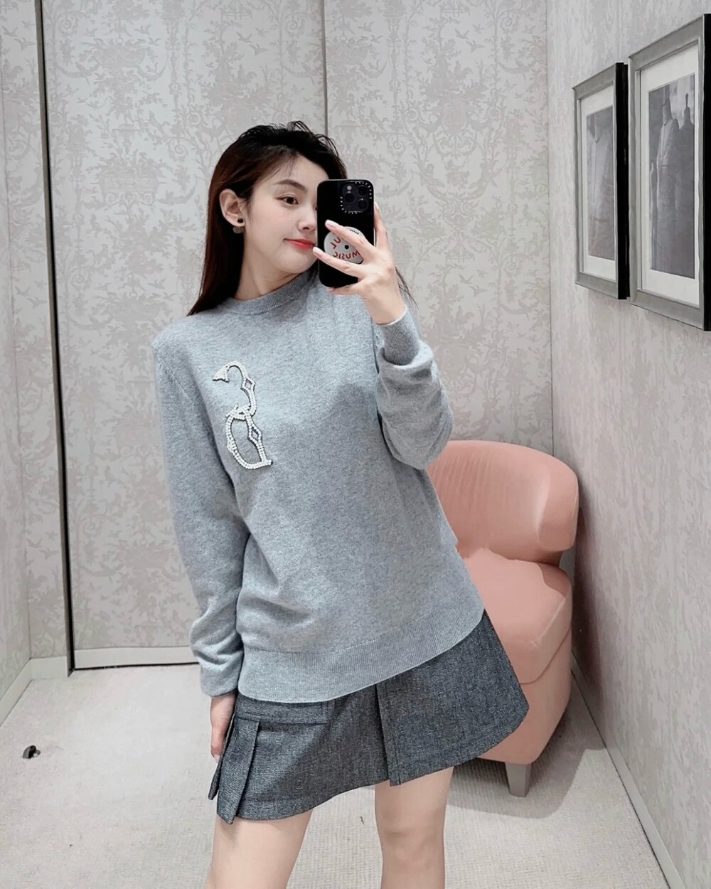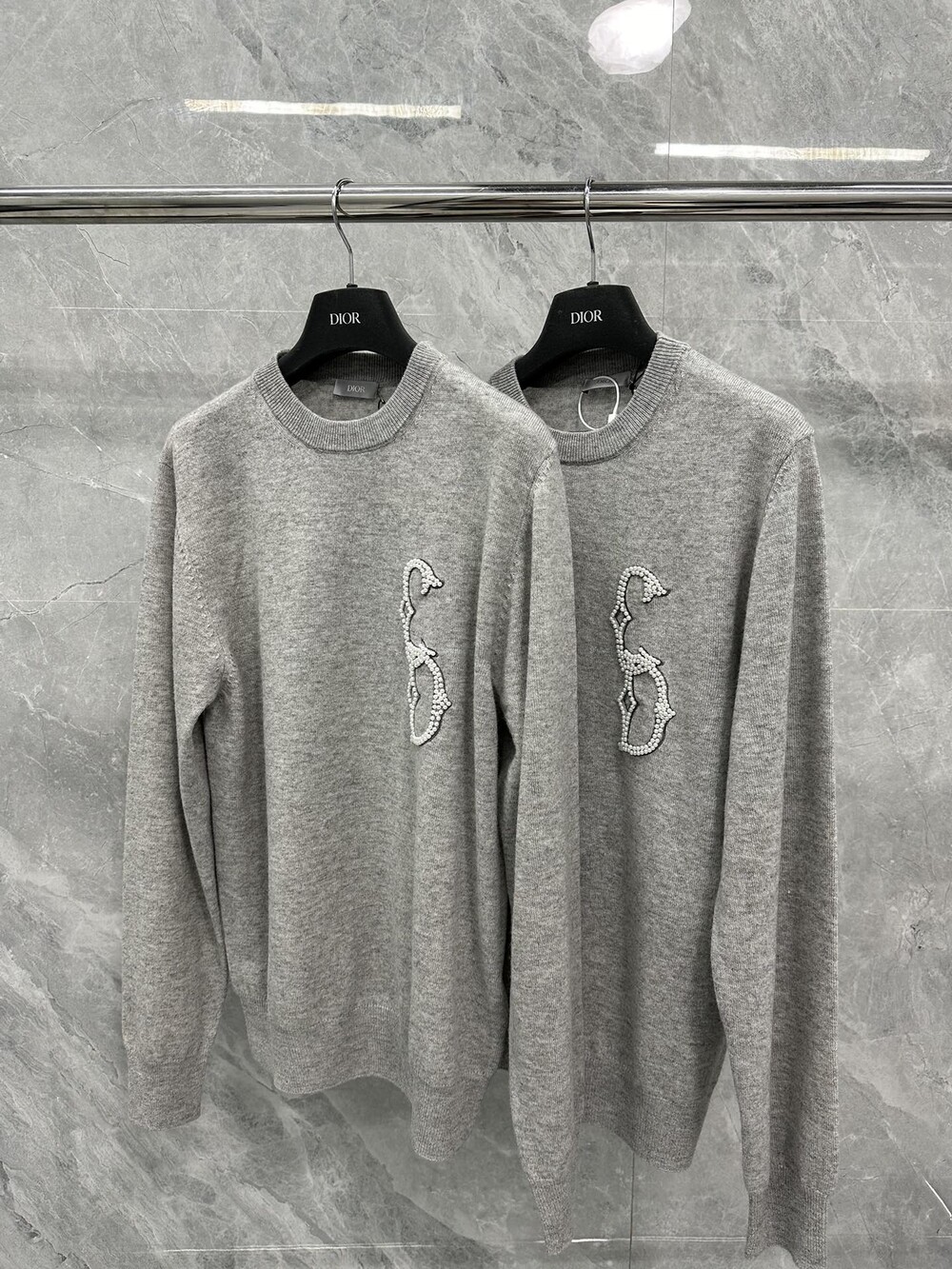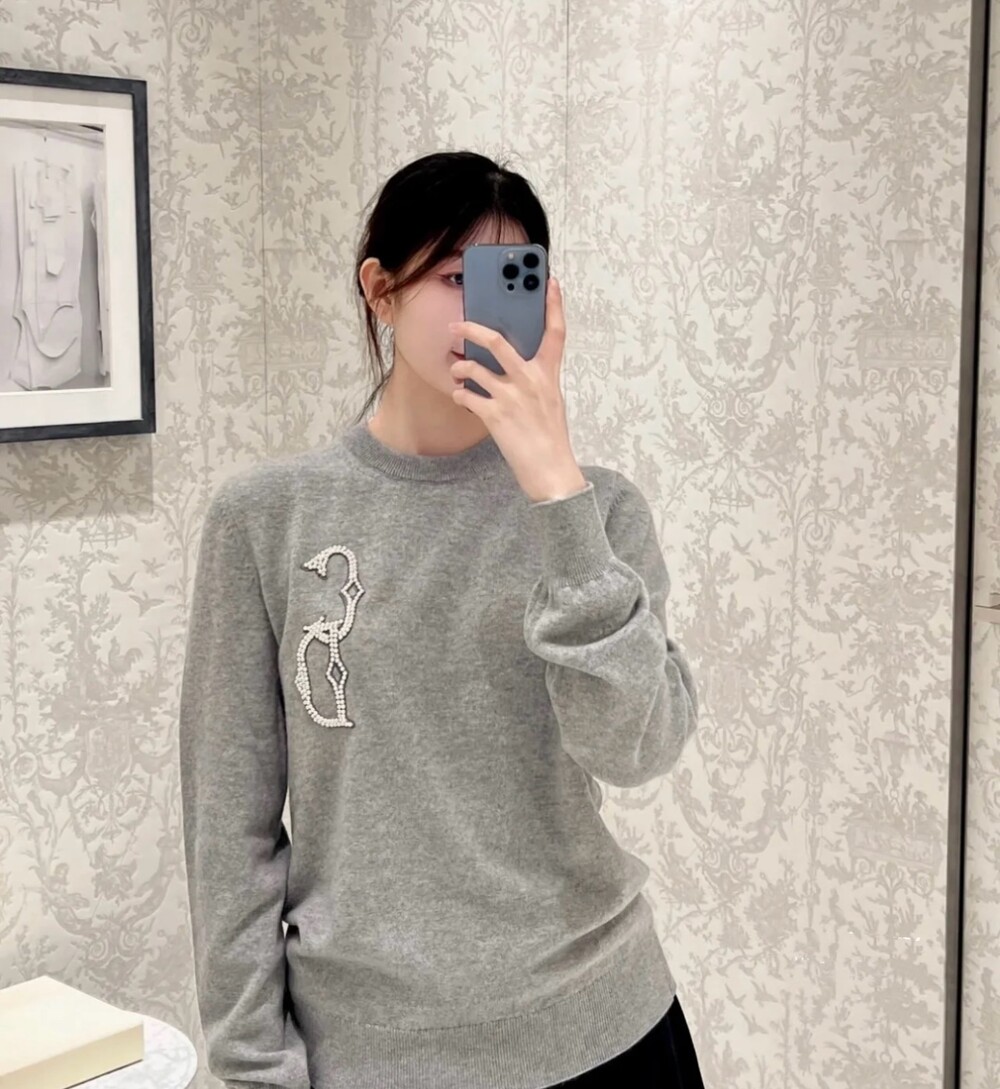 𝗗𝗜𝗢𝗥 그레이 캐시미어 CD로고 스웨터