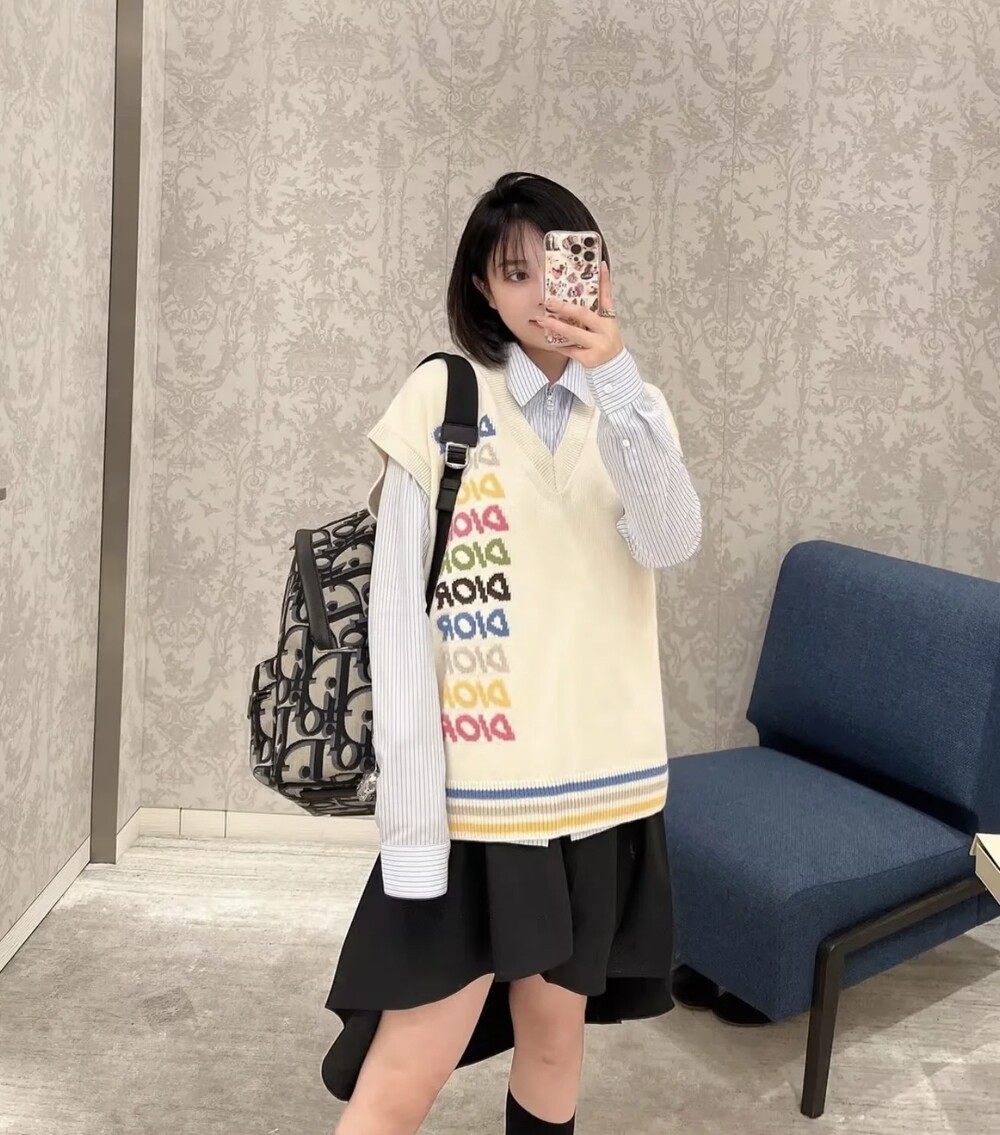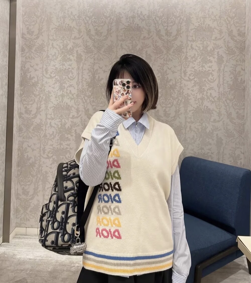 𝗗.𝗜𝗢𝗥 컬러풀한 캐시미어 니트 베스트