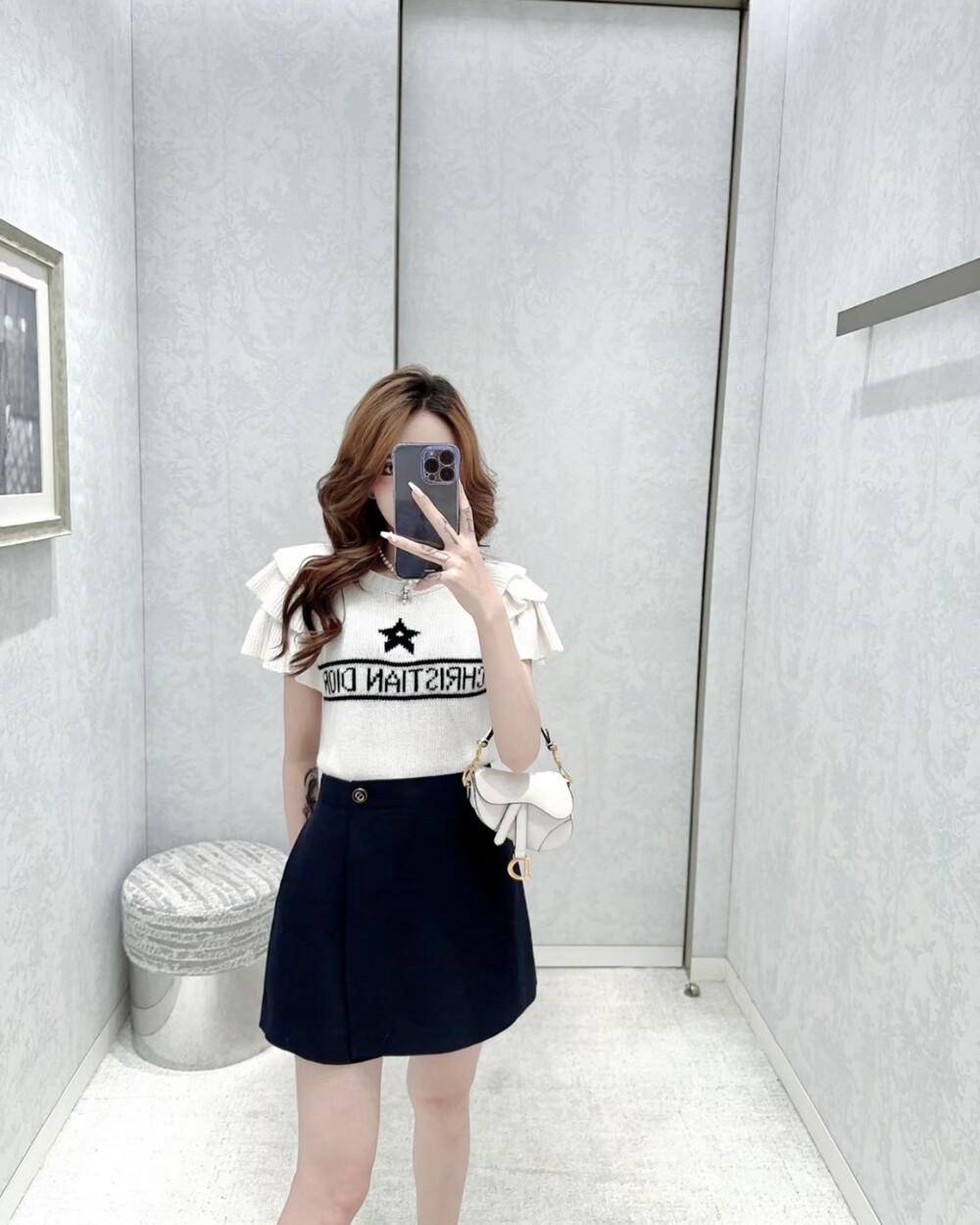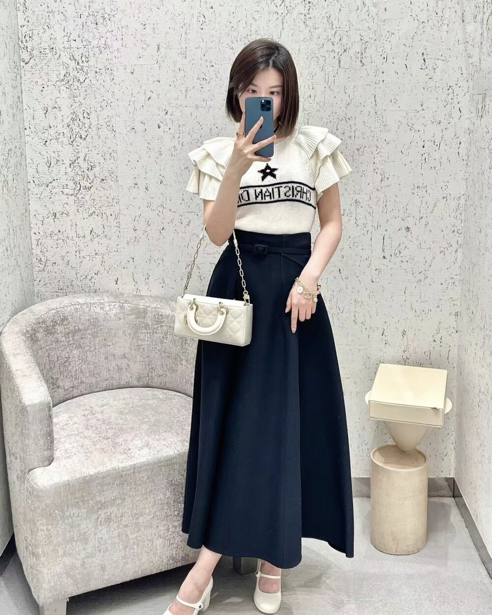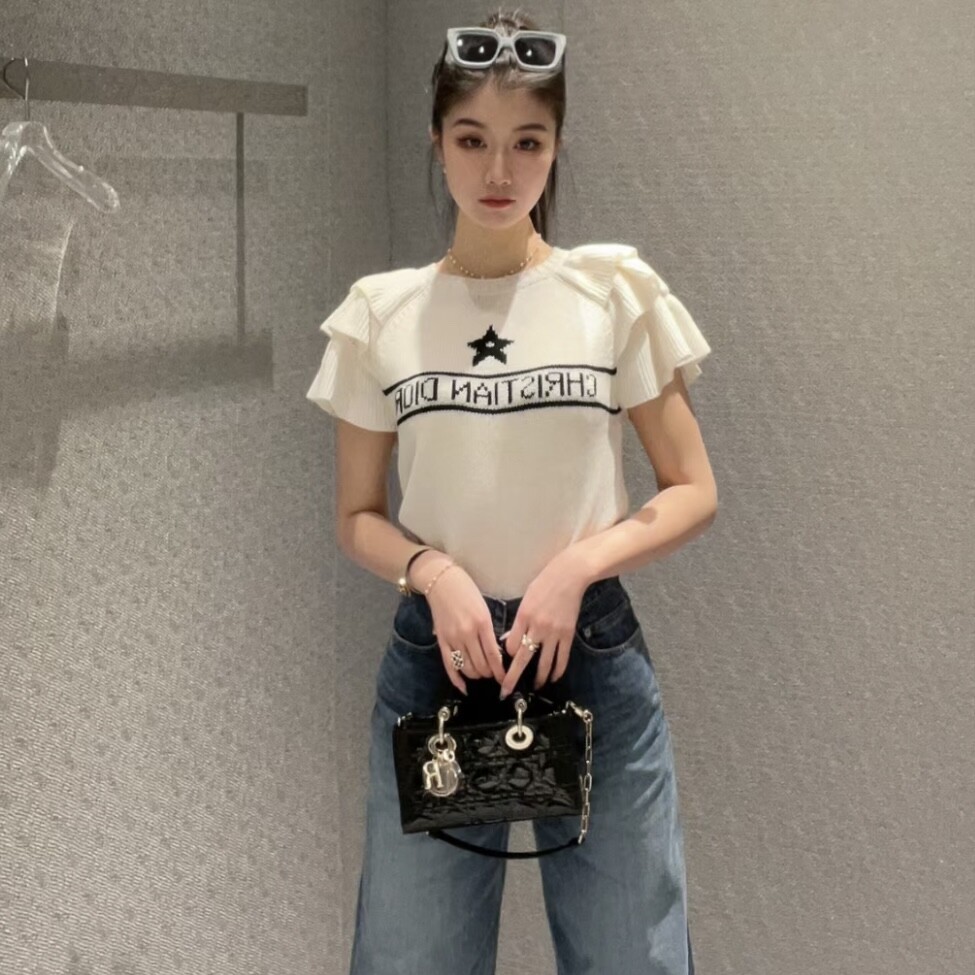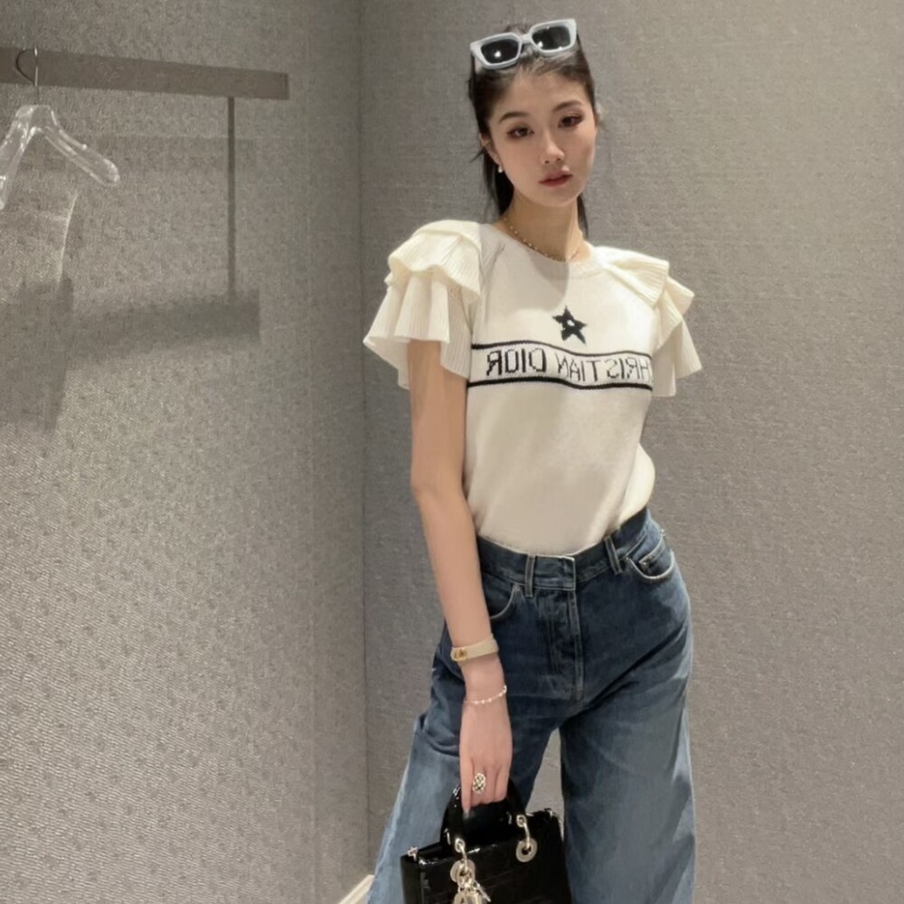 𝗗.𝗜𝗢𝗥 캐시미어 프릴 소매 니트