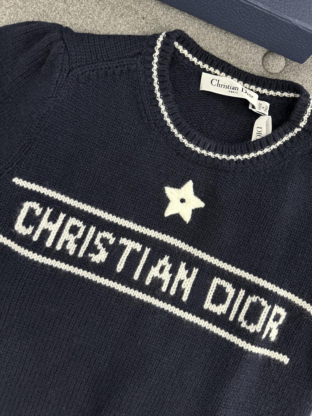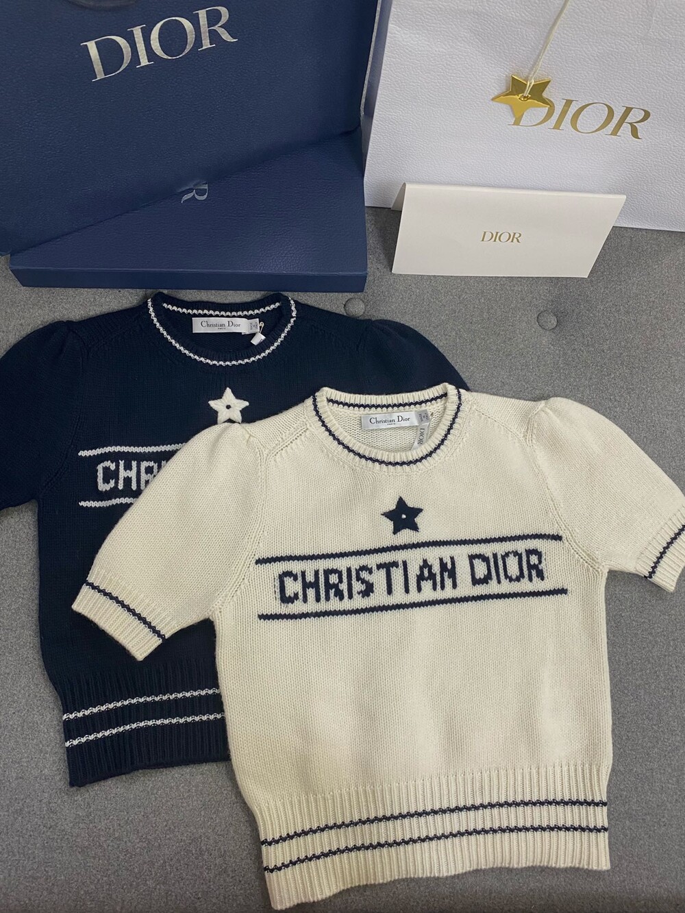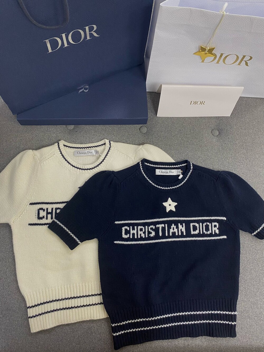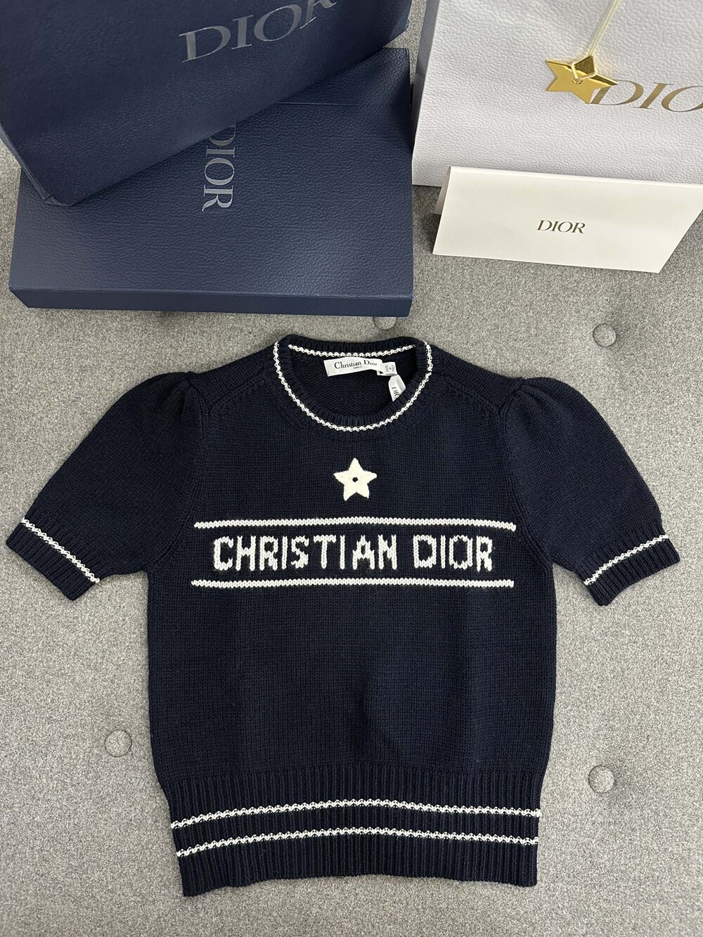 𝗗.𝗜𝗢𝗥 𝗟𝘂𝗰𝗸𝘆 𝘀𝘁𝗮𝗿캐시미어 니트 반팔🦋