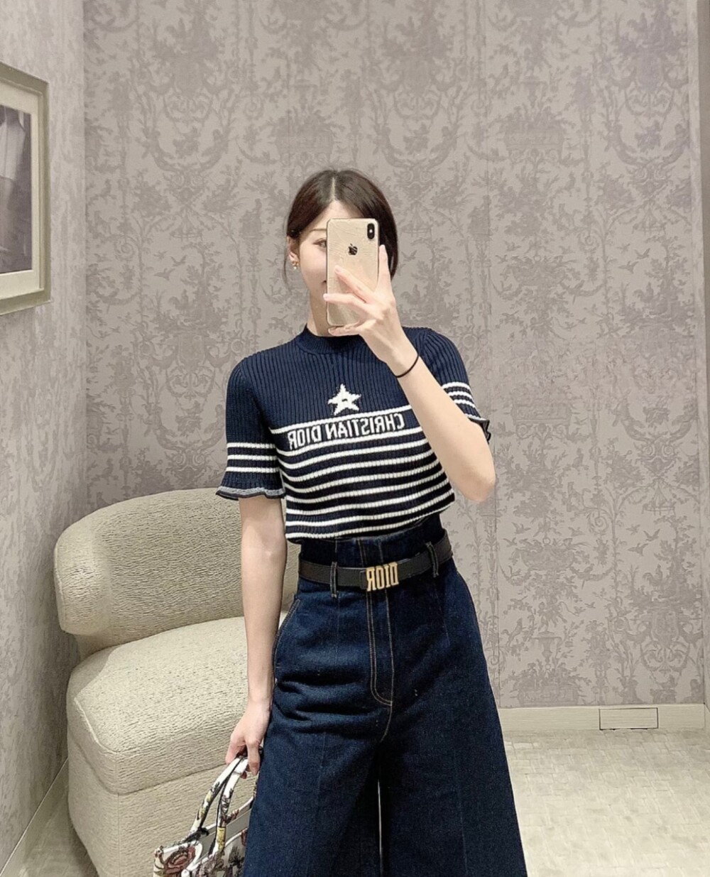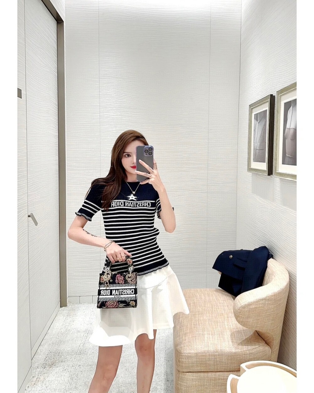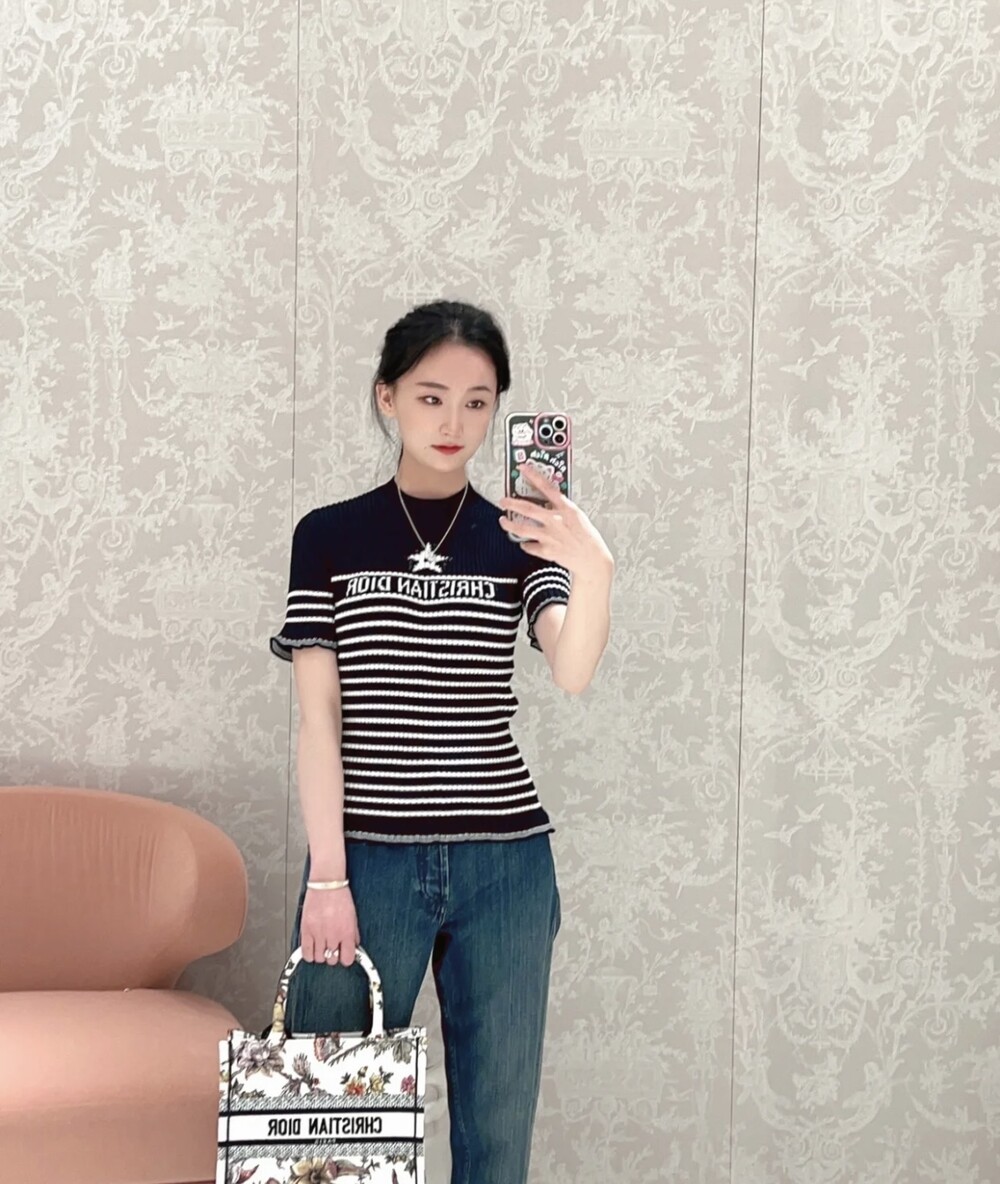 𝗗.𝗜𝗢𝗥 𝗰𝗿𝘂𝗶𝘀𝗲 𝟮𝟯 초봄 프릴 니트 반팔🌌