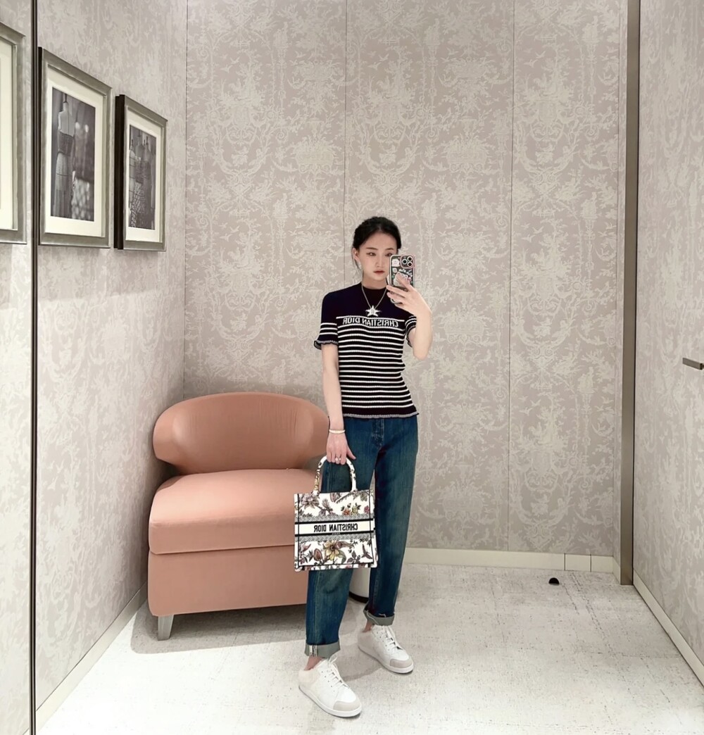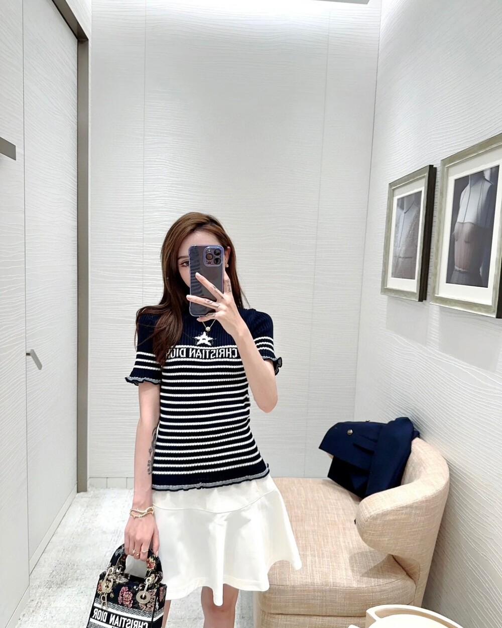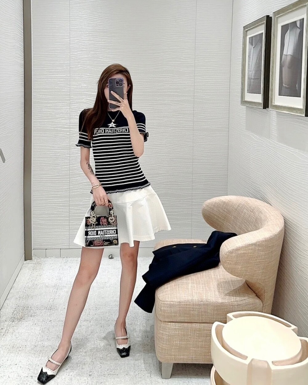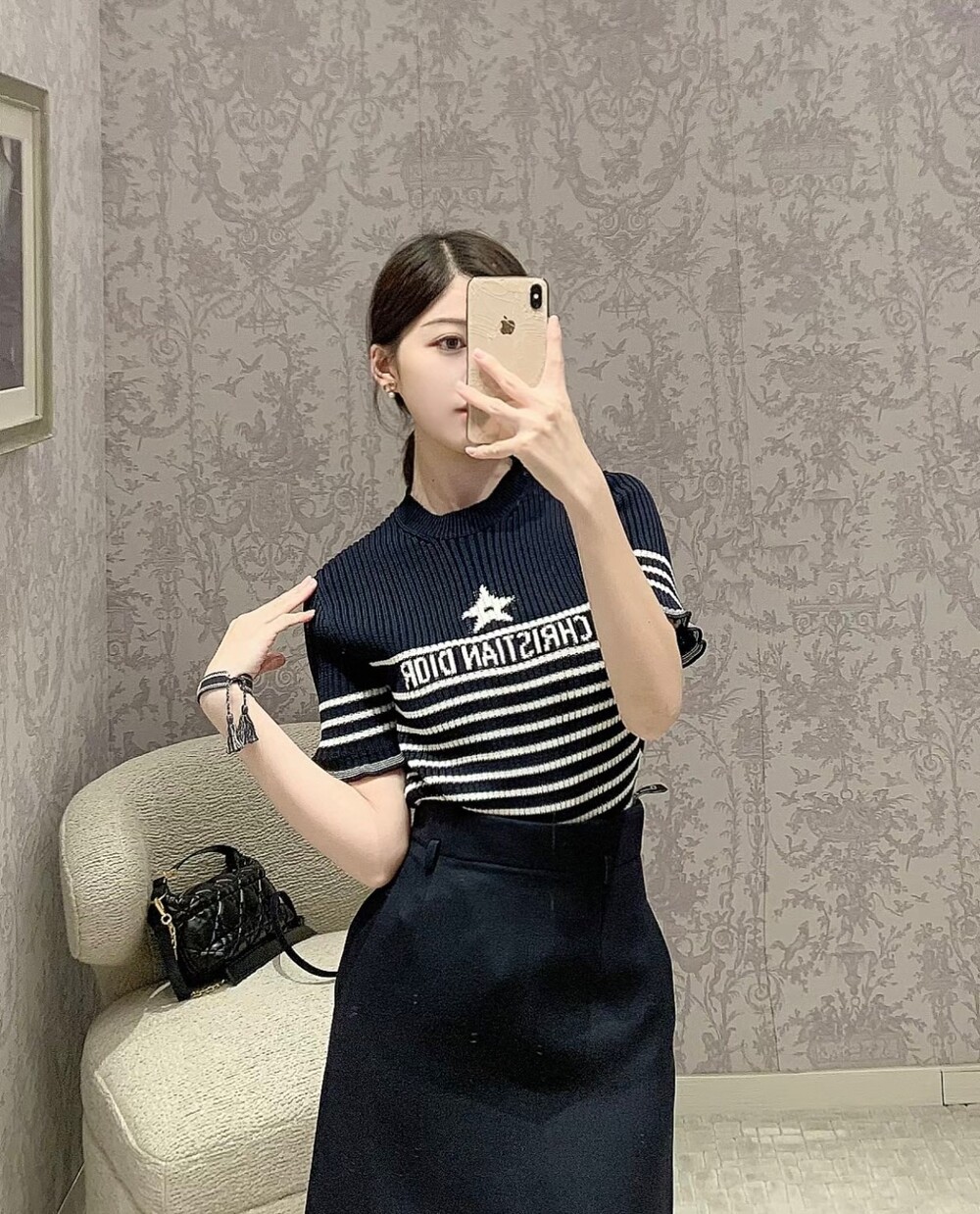 𝗗.𝗜𝗢𝗥 𝗰𝗿𝘂𝗶𝘀𝗲 𝟮𝟯 초봄 프릴 니트 반팔🌌