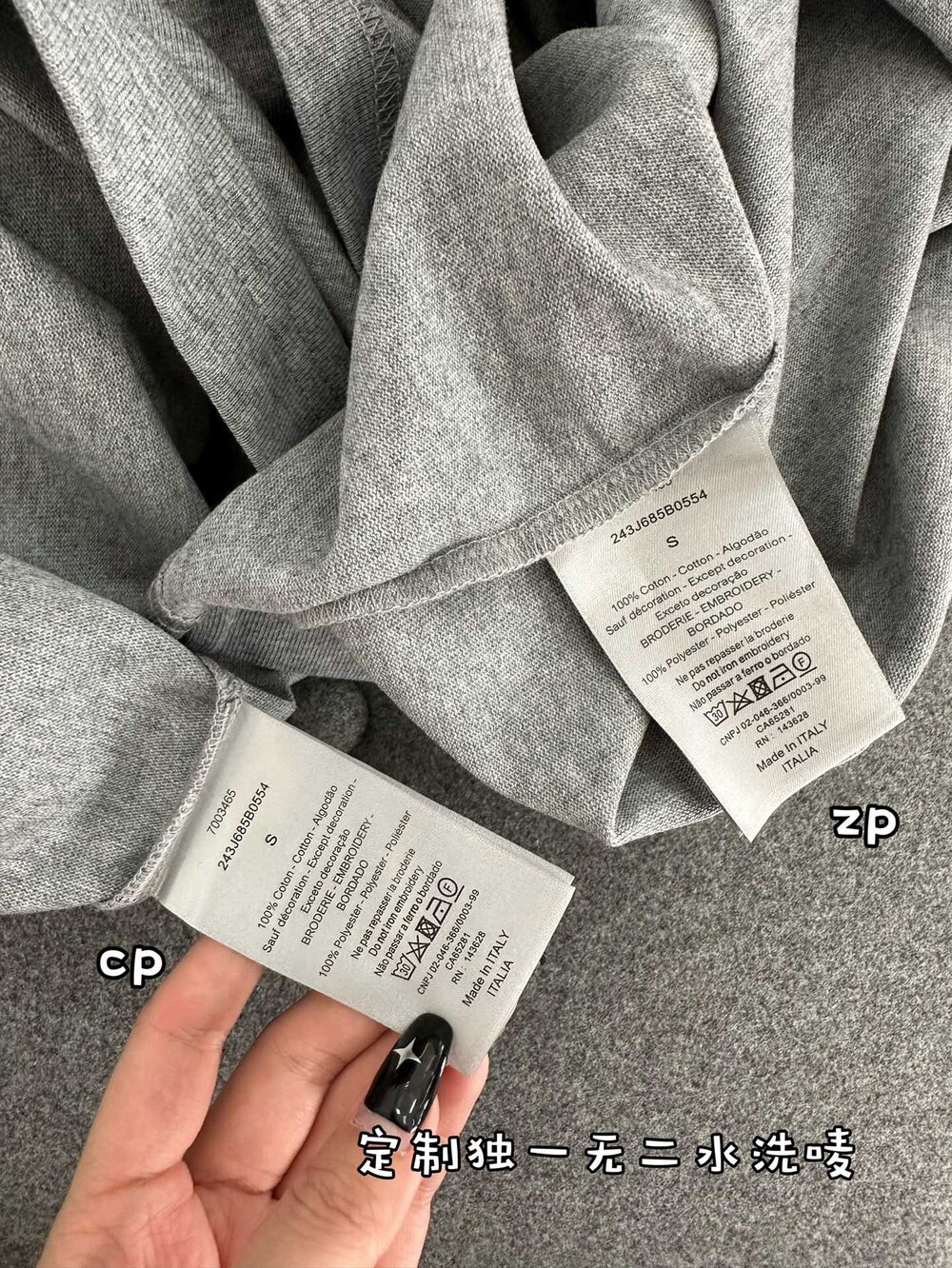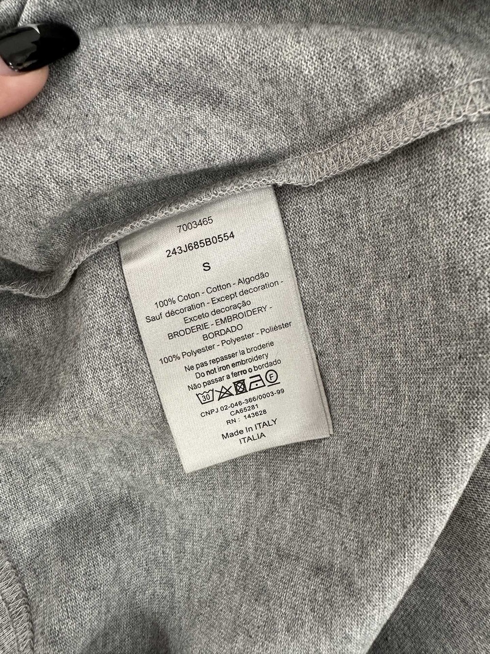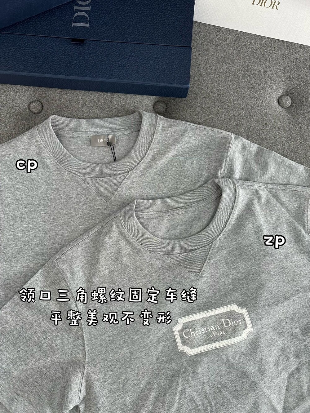 네크라인은 봉제용 삼각실로 고정되어 있습니다