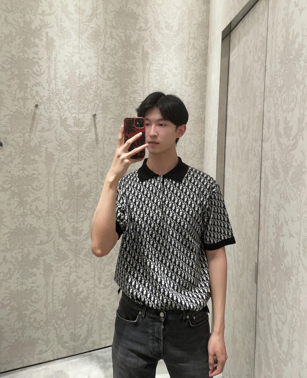 𝗗.𝗜𝗢𝗥 𝗢𝗯𝗹𝗶𝗾𝘂 코튼 자카드 폴로 셔츠🌀