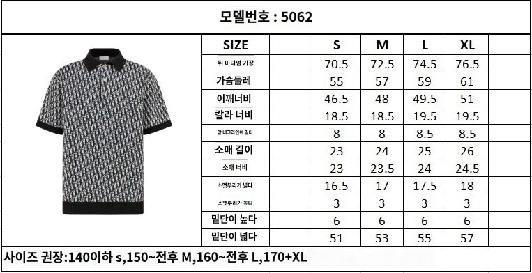 패턴의 사이즈와 색상이 긴팔과 다릅니다