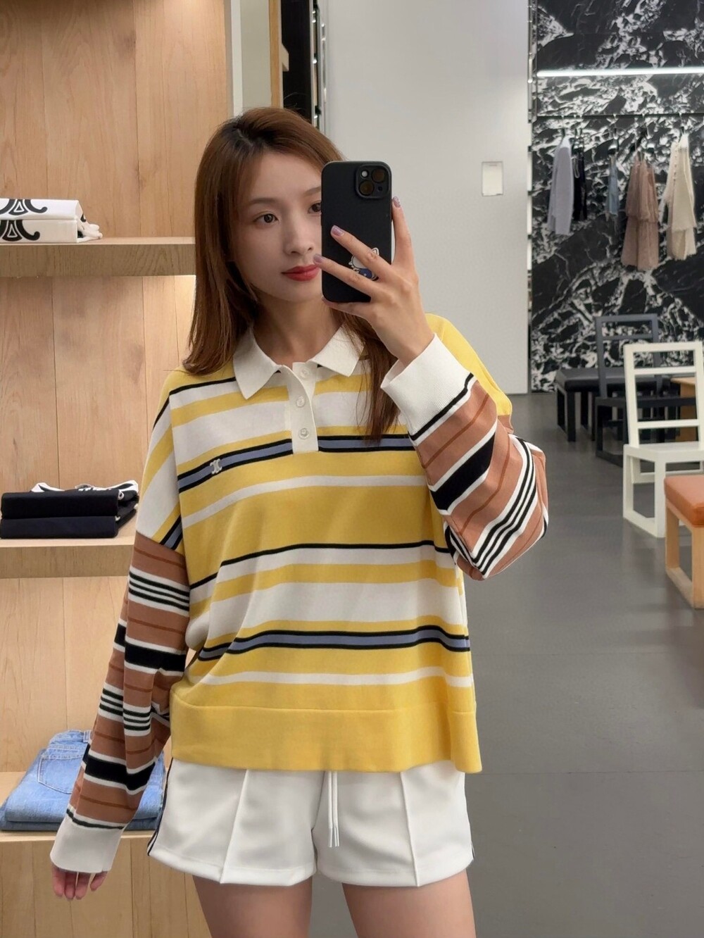 클래식한 대비를 이루는 폴로 칼라는