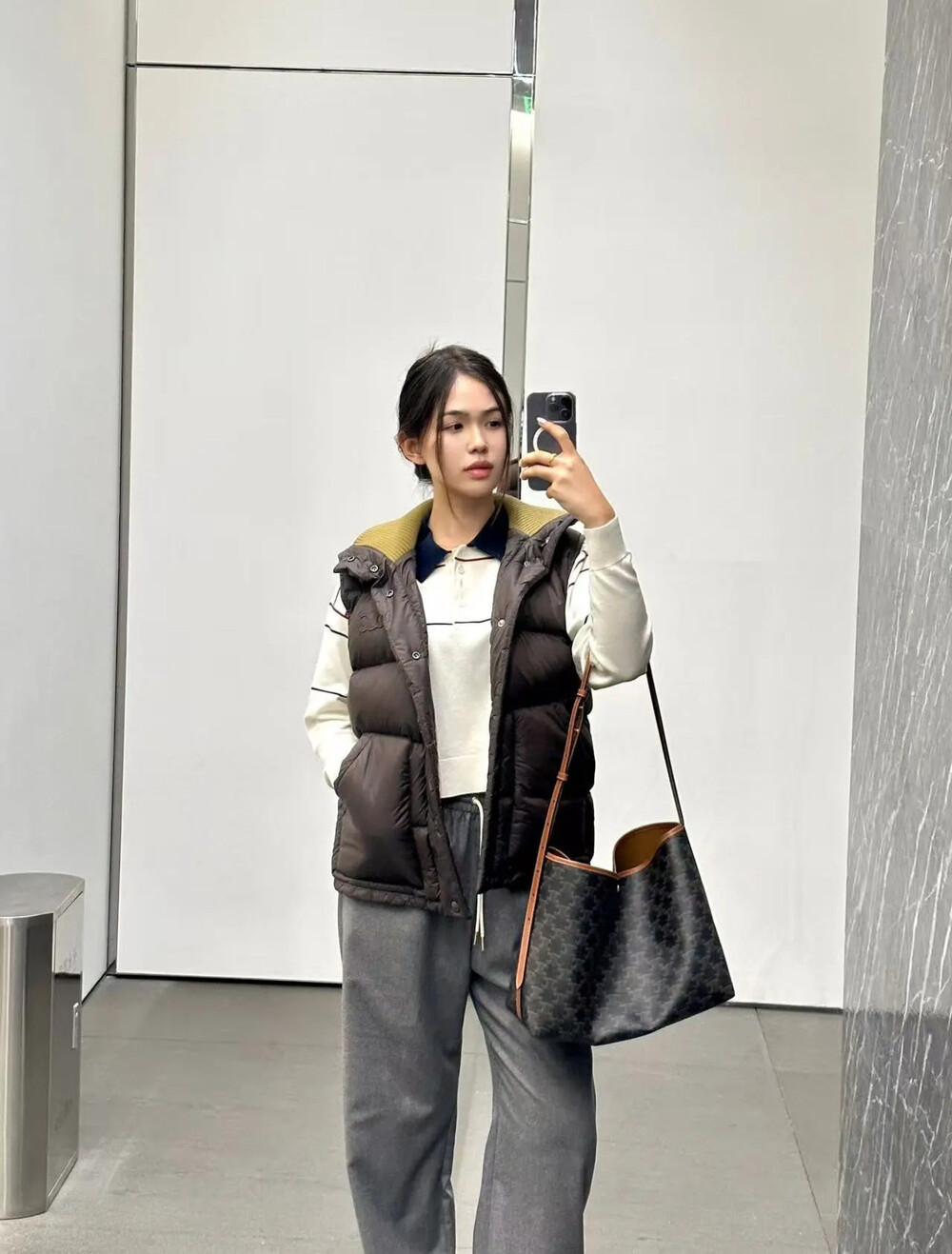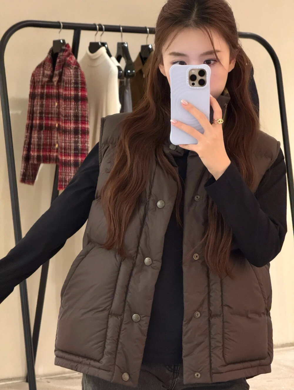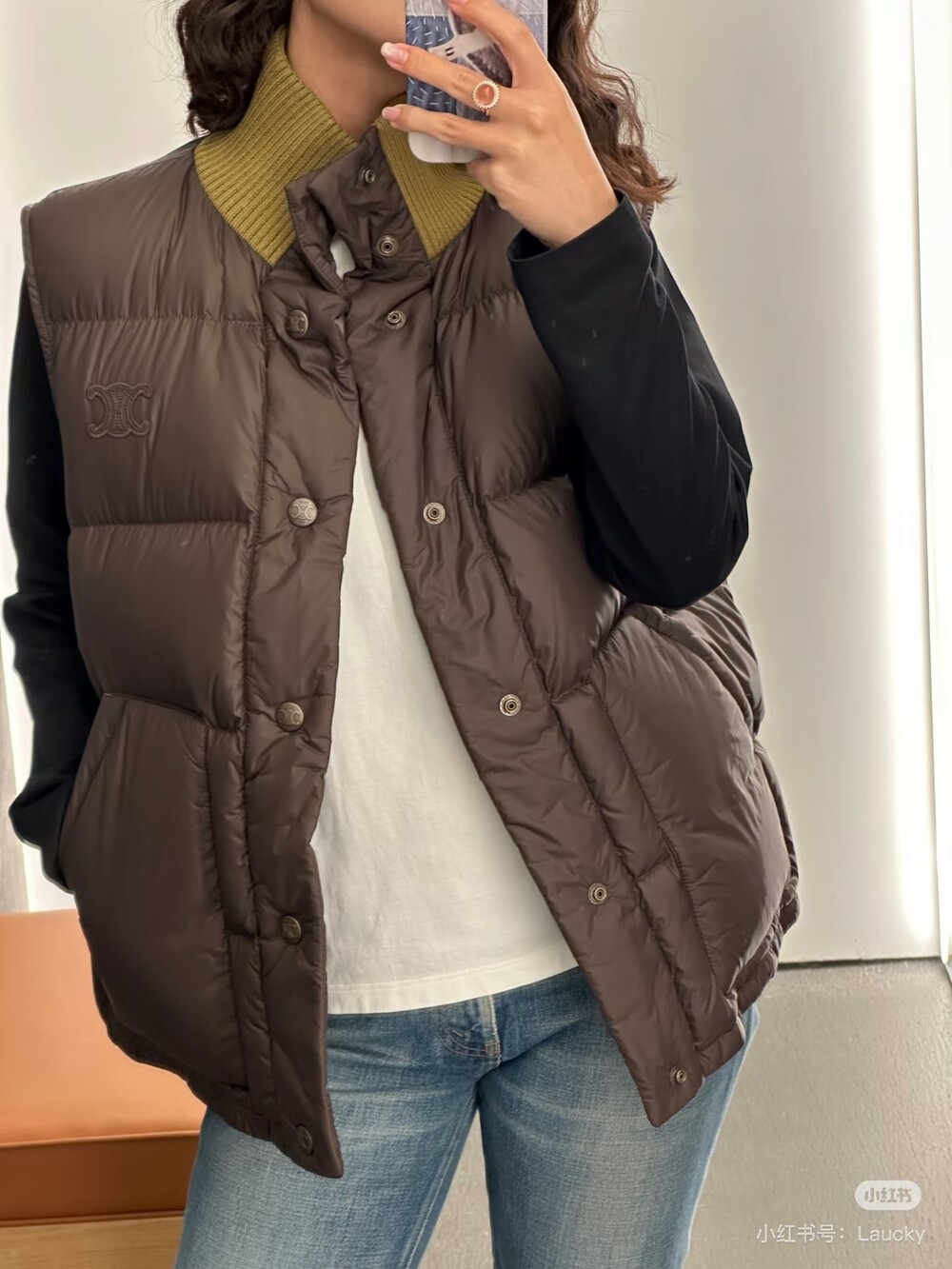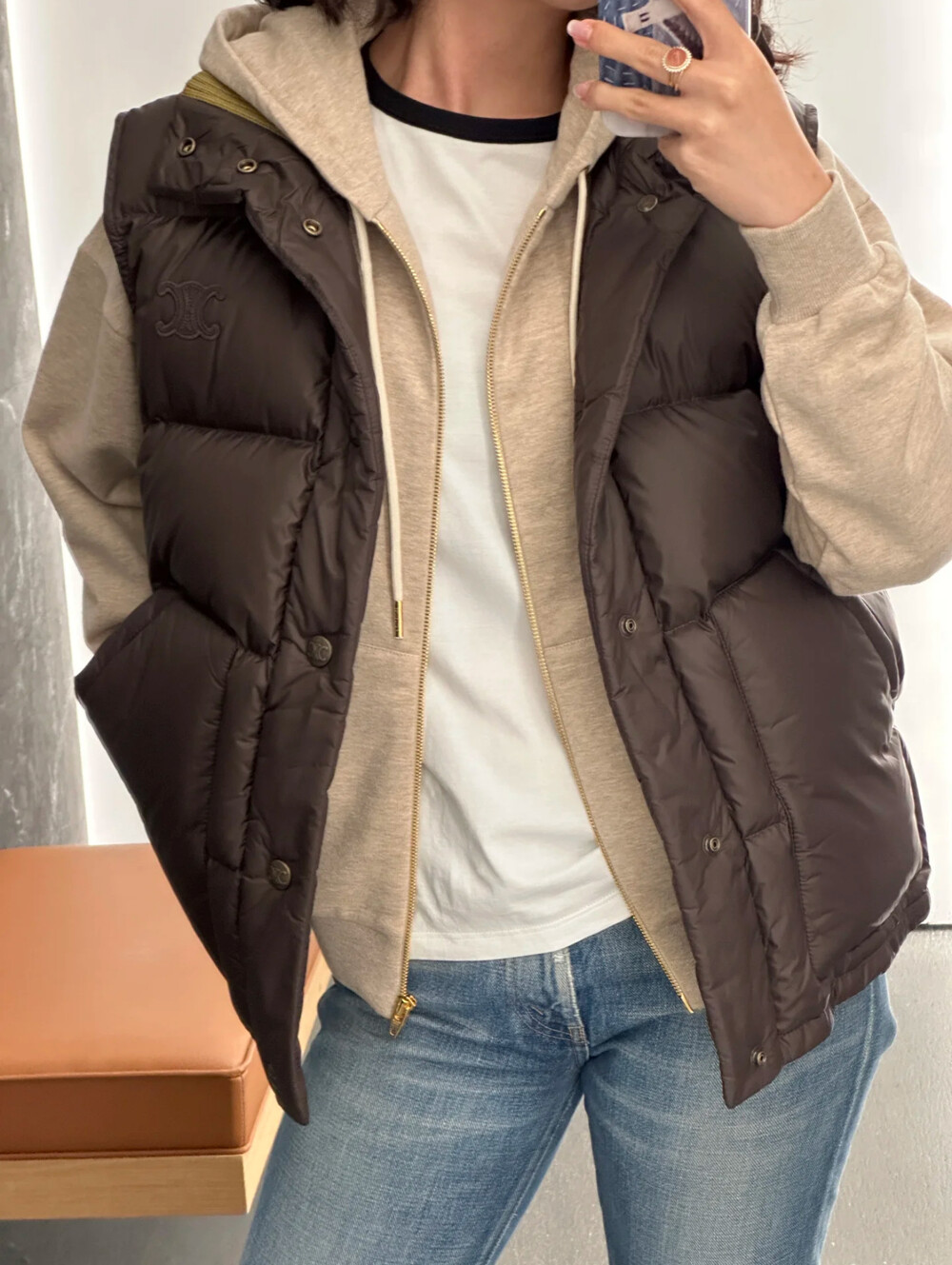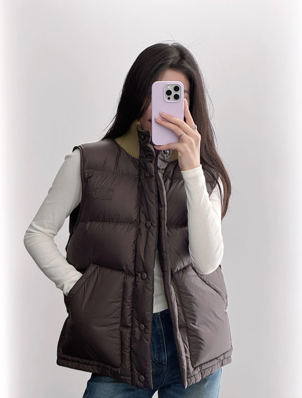 스웨터나 후드 위에 레이어드하여