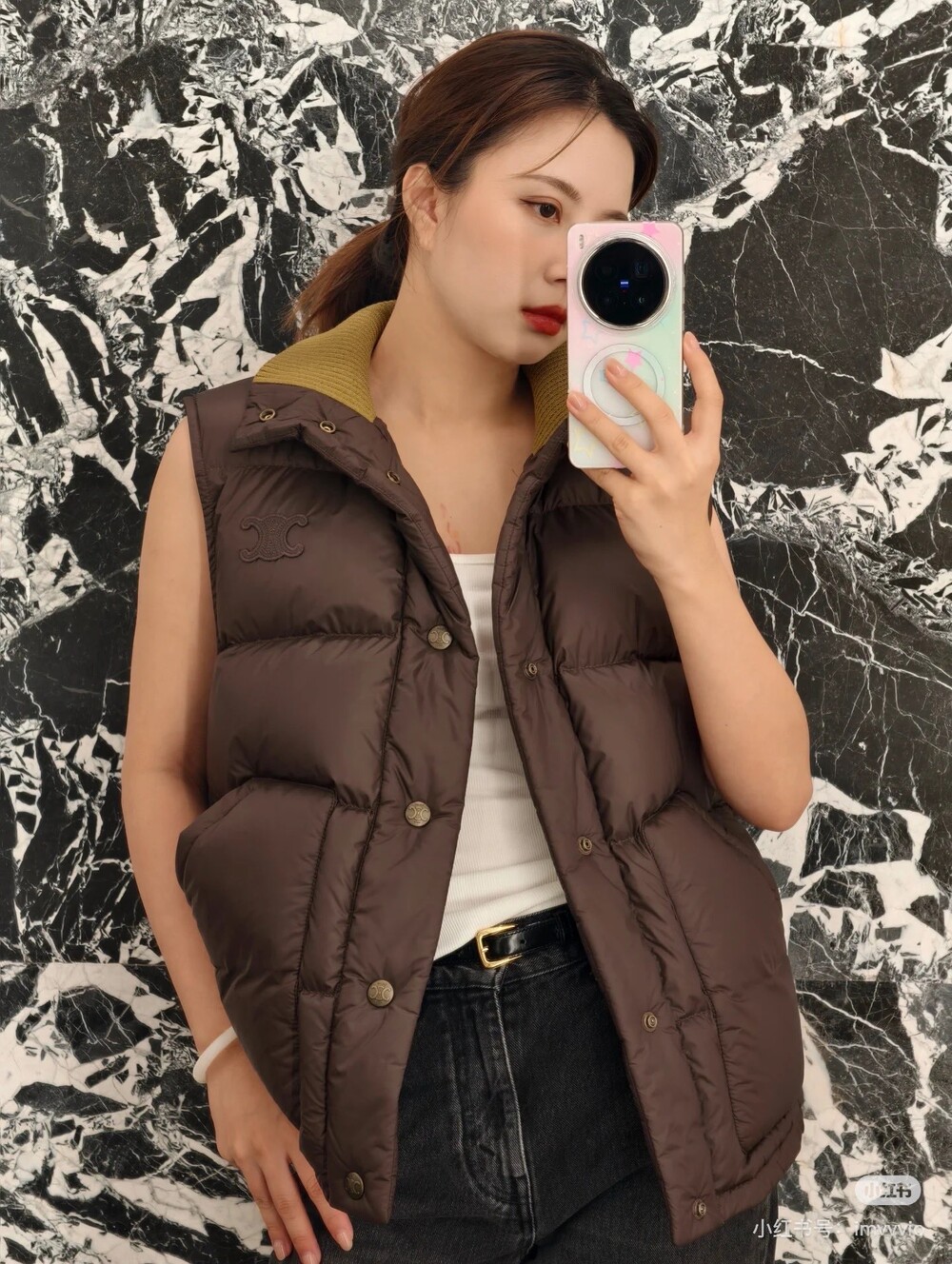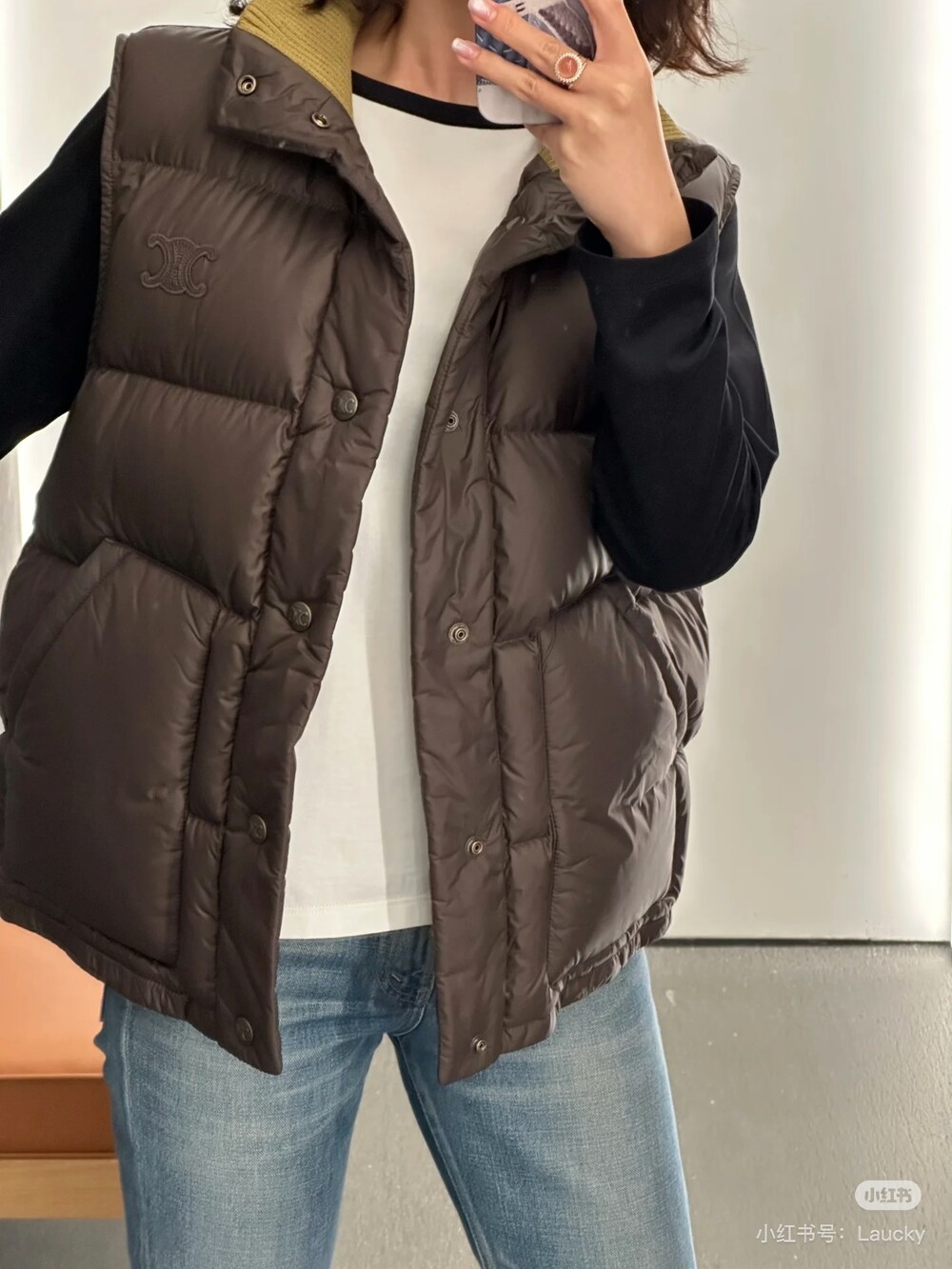 콘트라스트 니트 칼라 다운 베스트