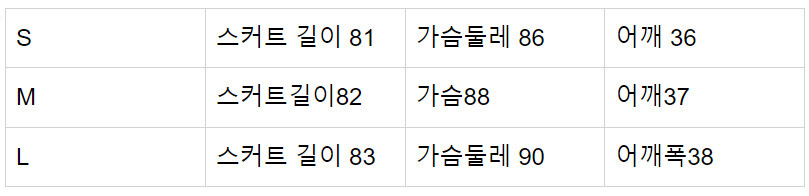 아래 사이즈표 참고