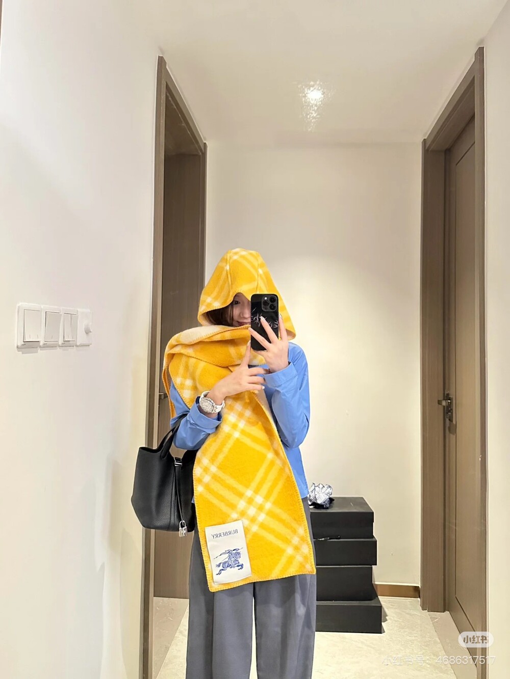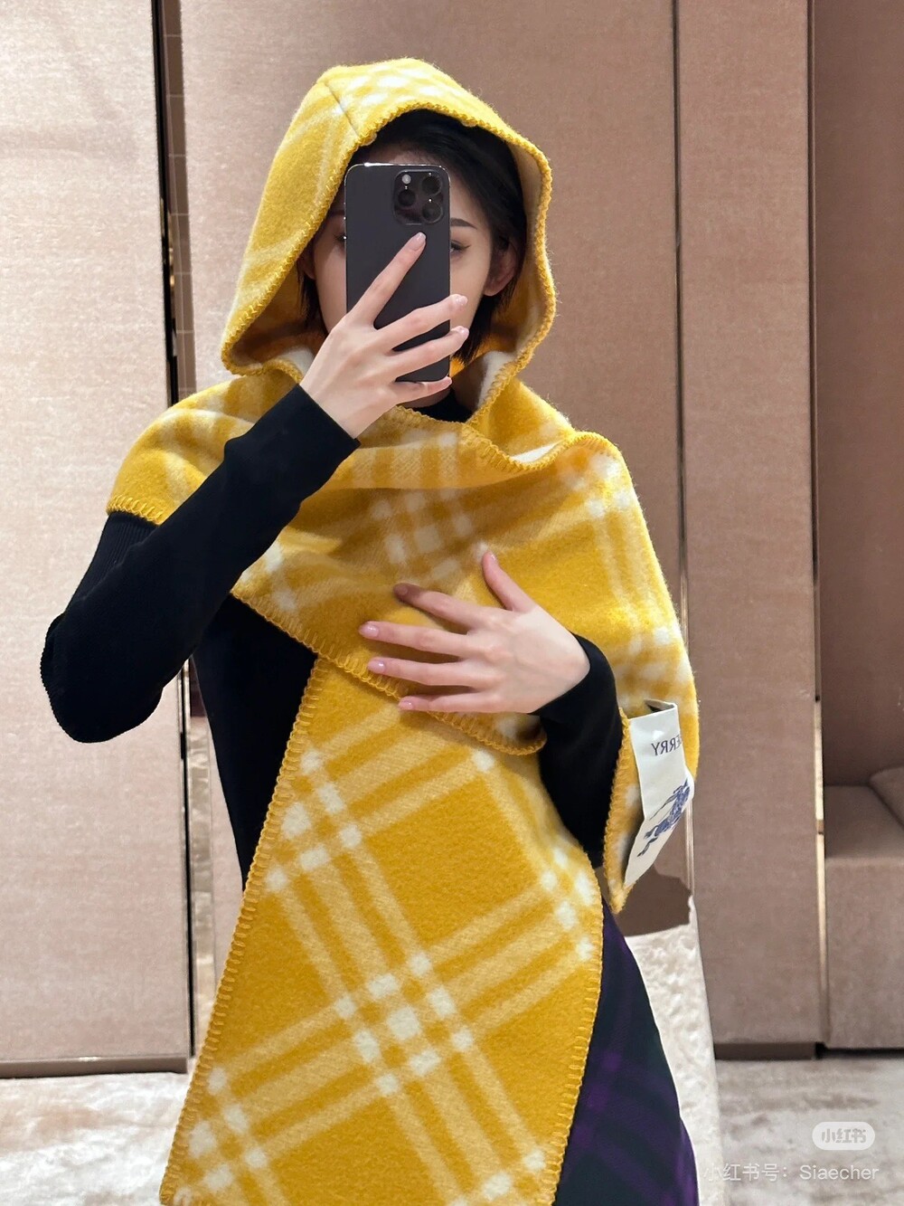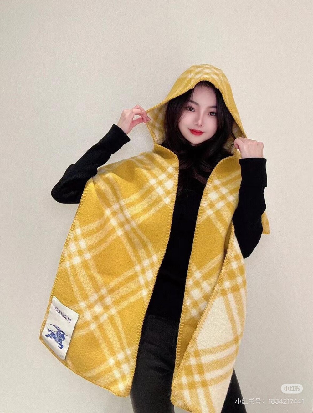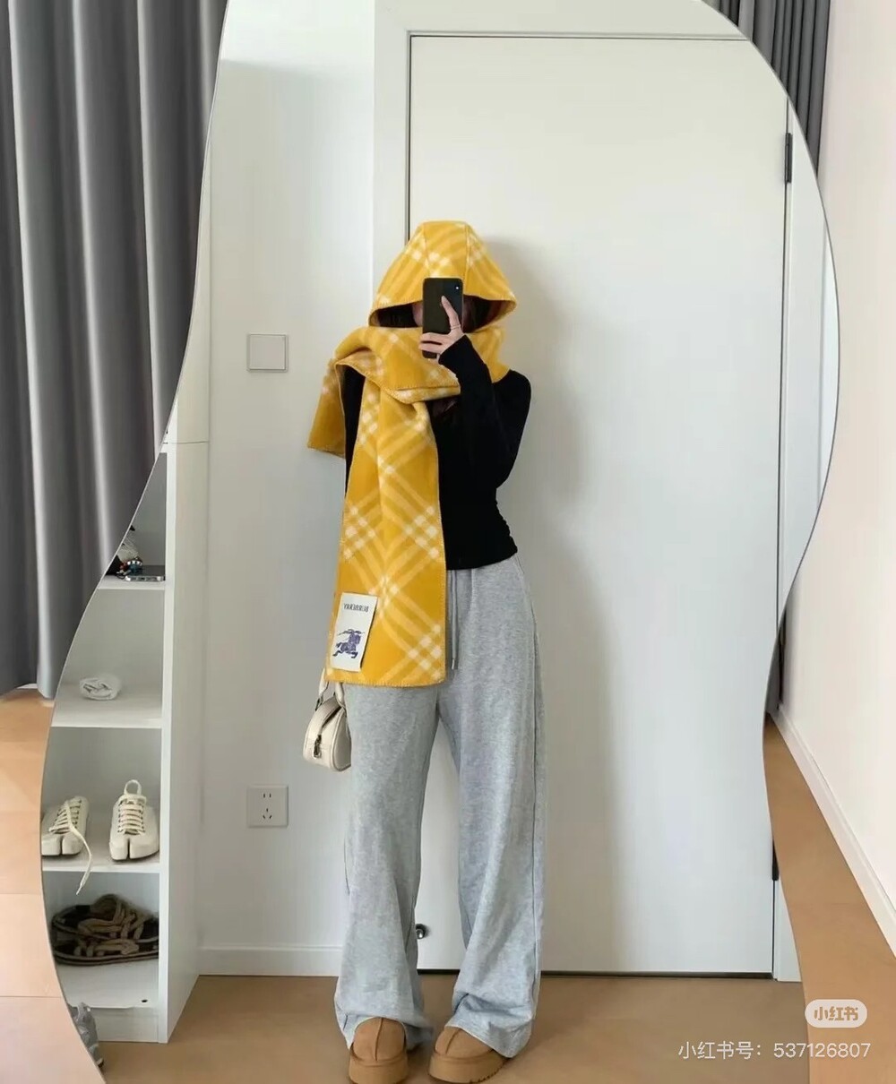 □체크 울 후드 스카프□