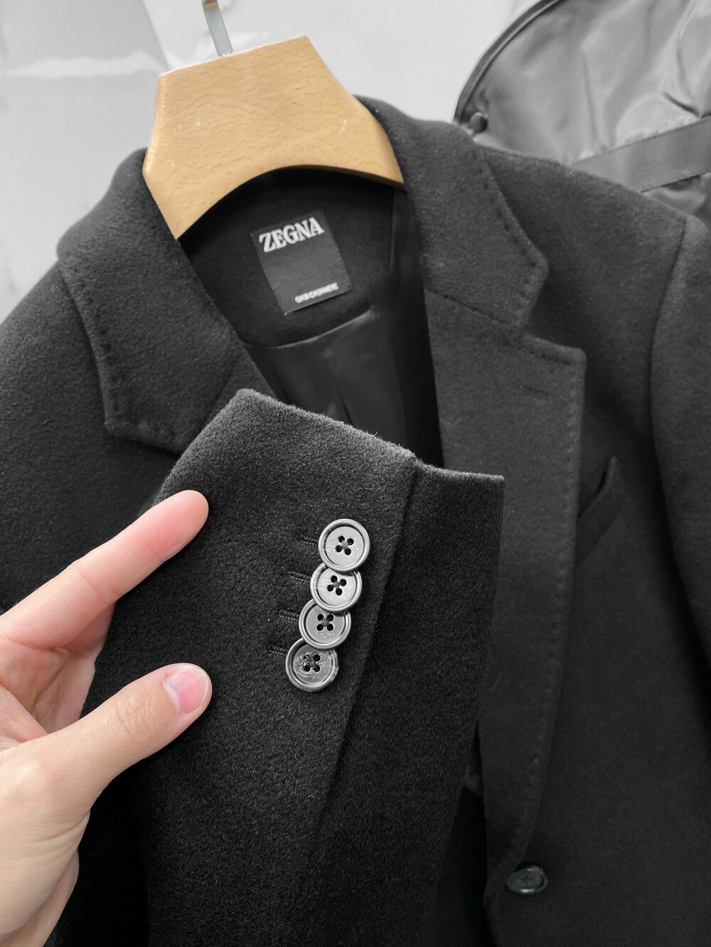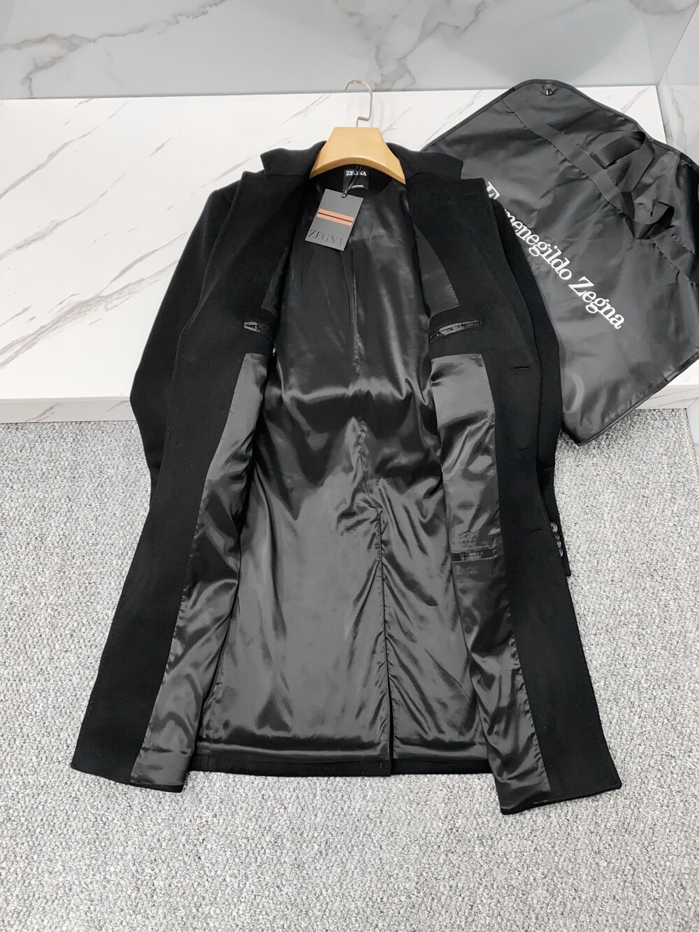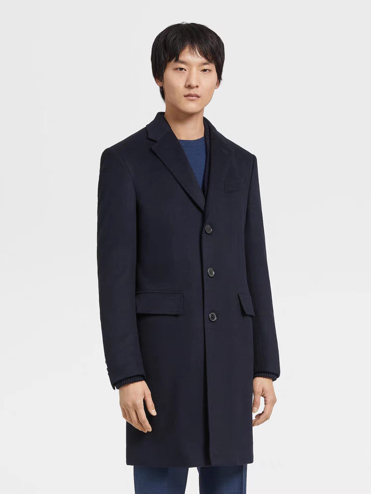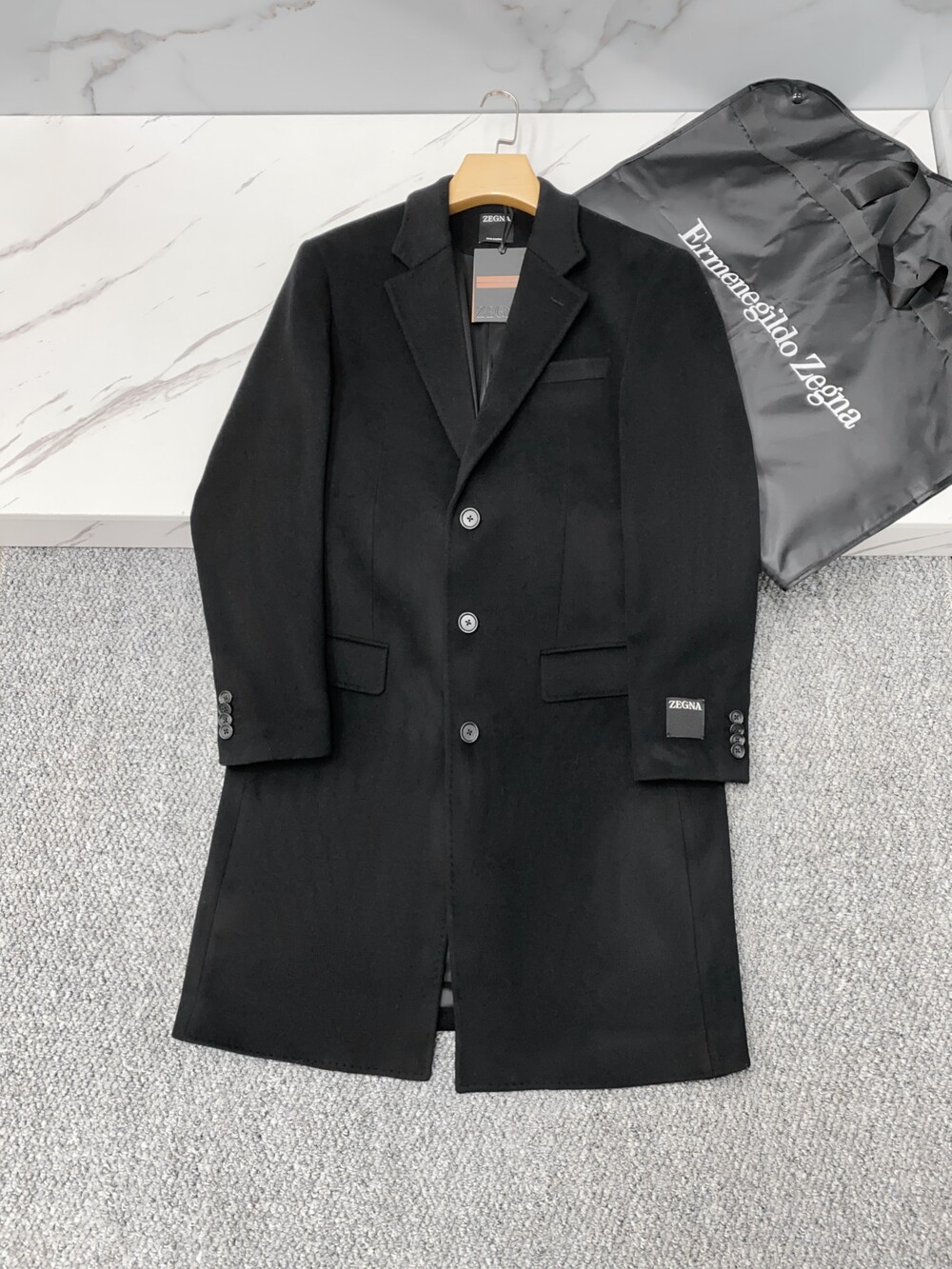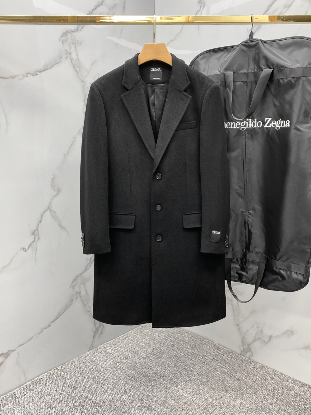 Z.egna남성용 도톰한 중간기장 캐시미어 코트,