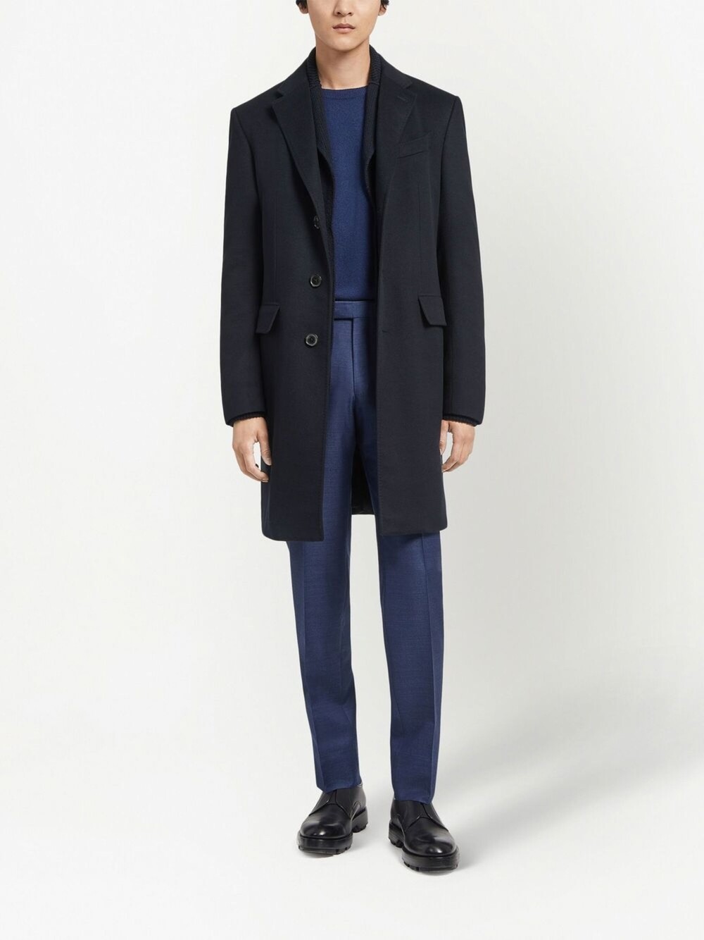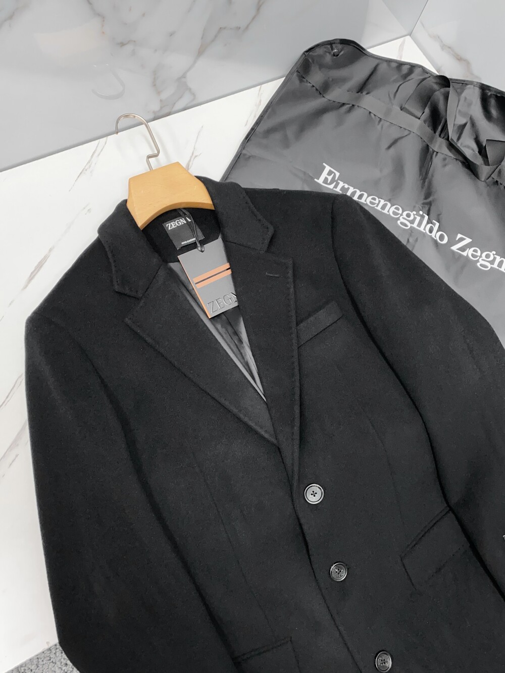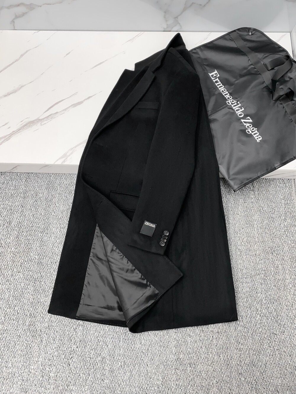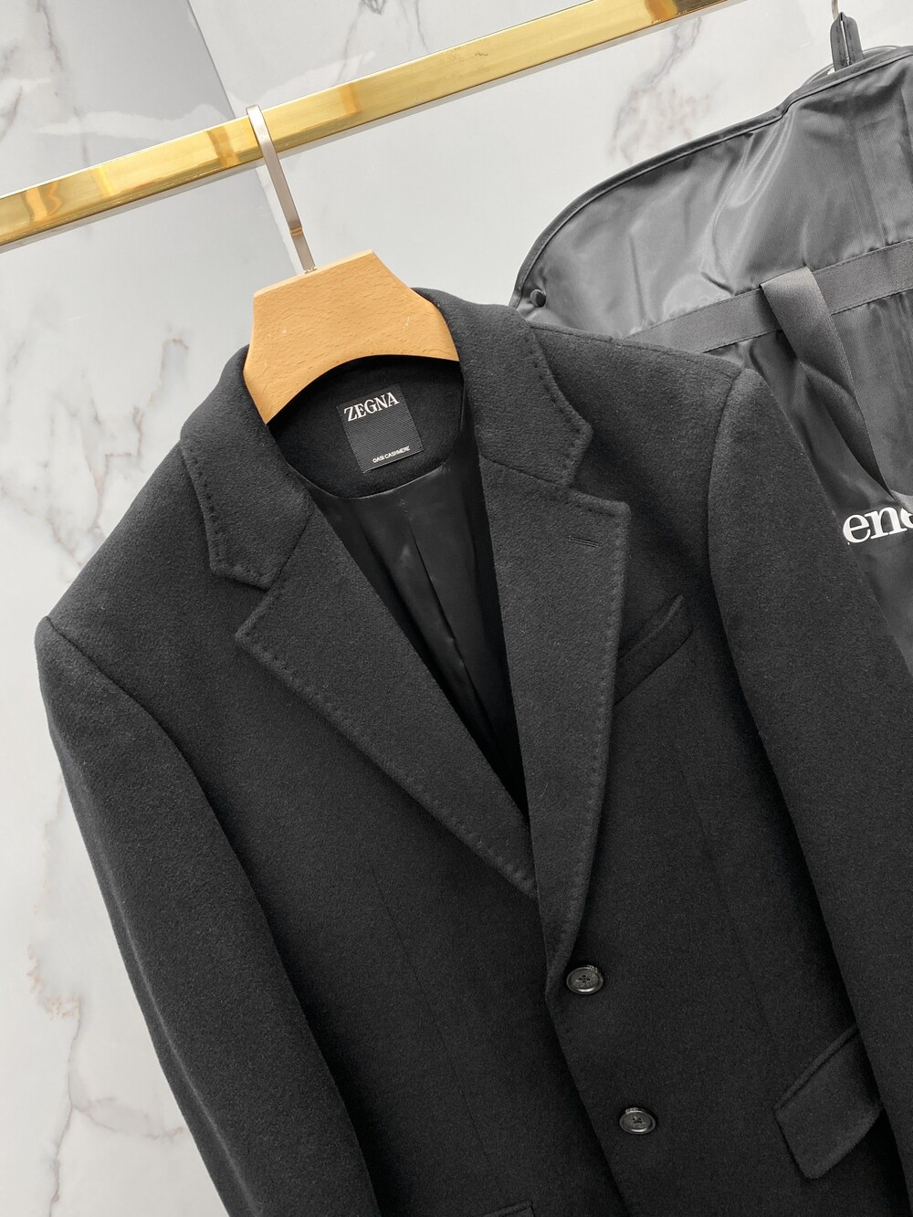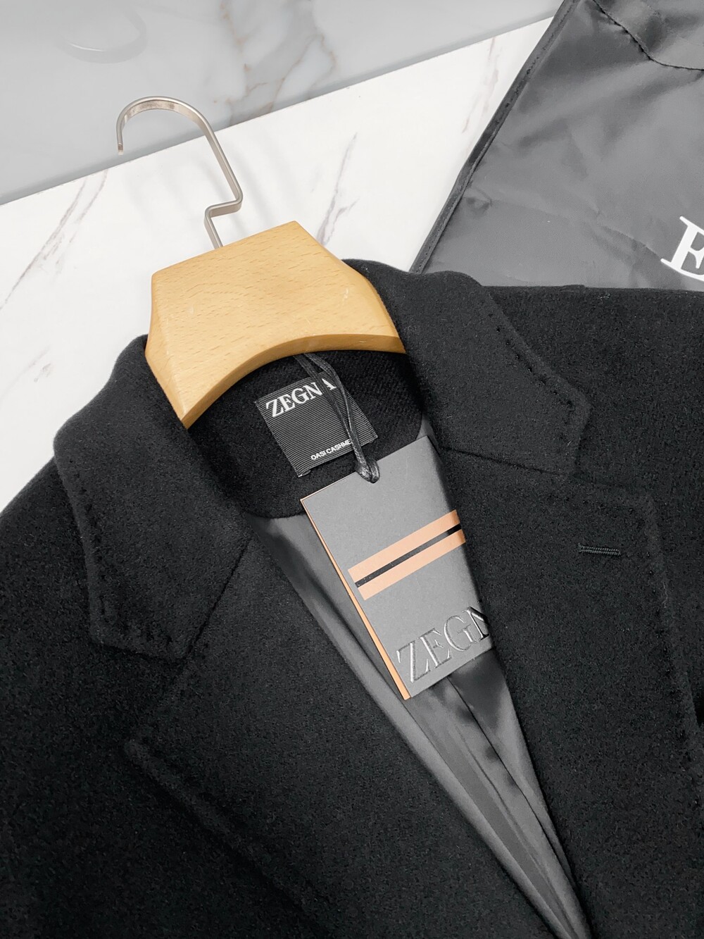 Z.egna남성용 도톰한 중간기장 캐시미어 코트,