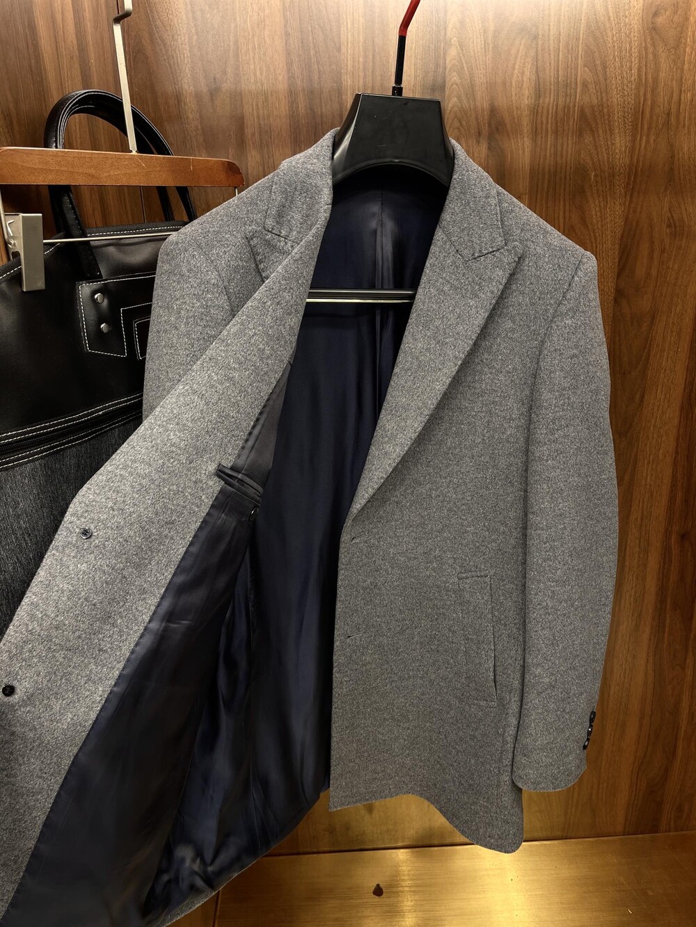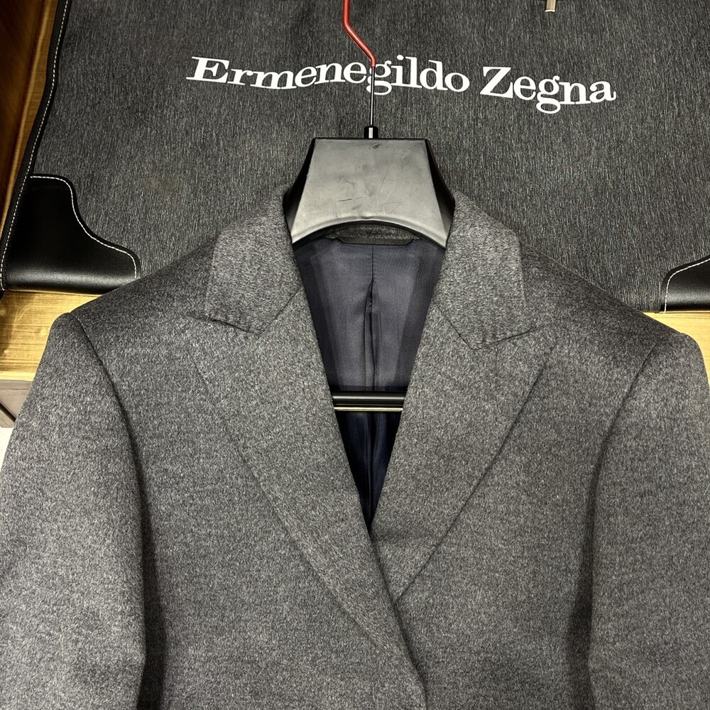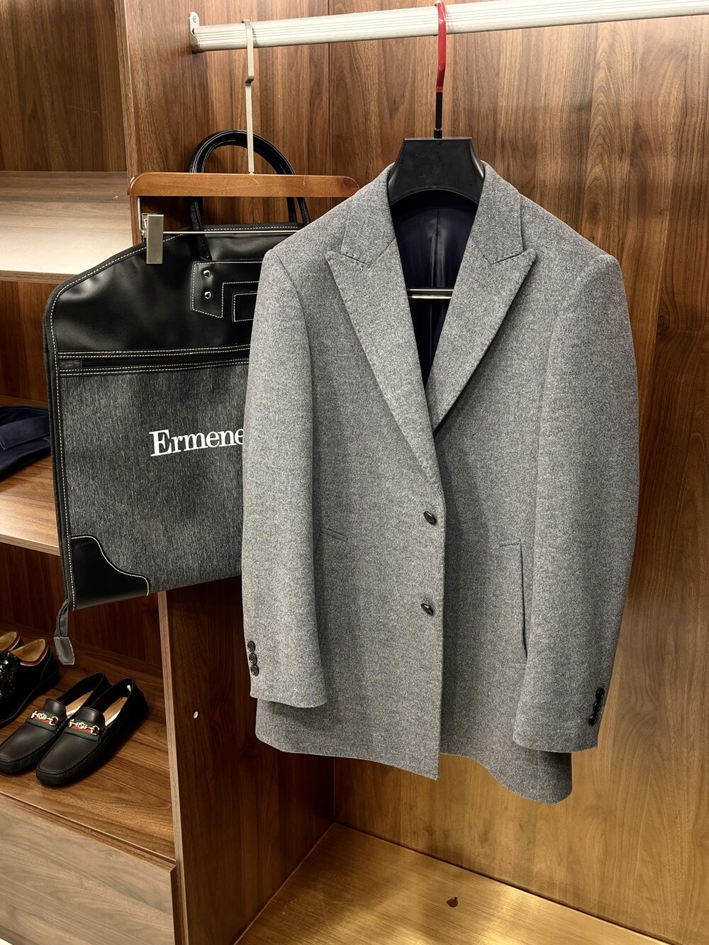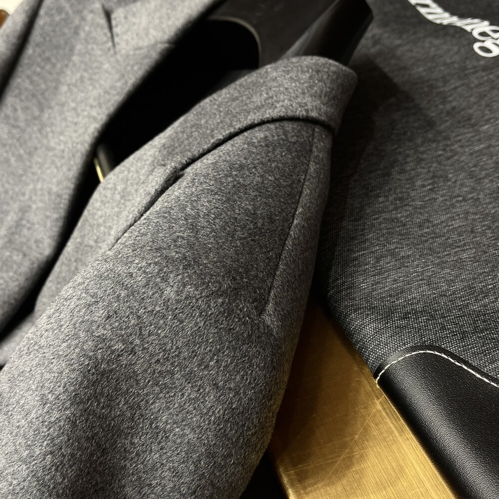 그레이 캐시미어 혼방 울 건라펠 블레이저