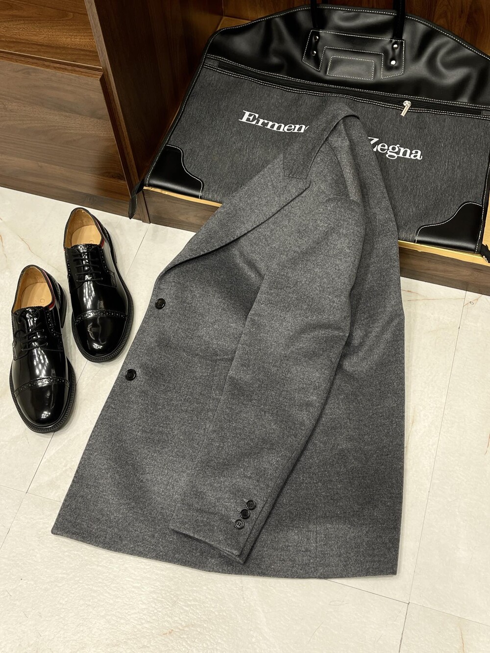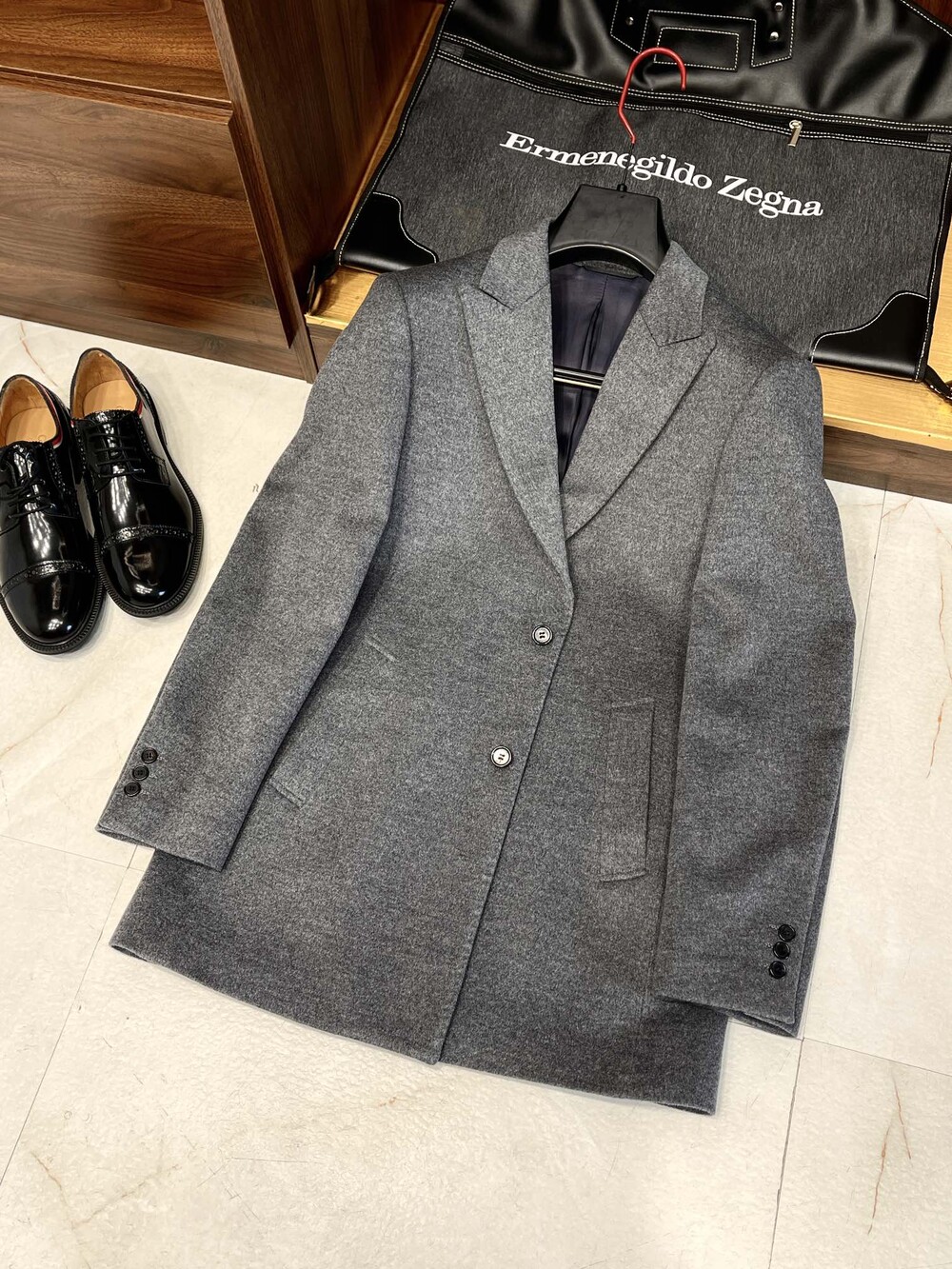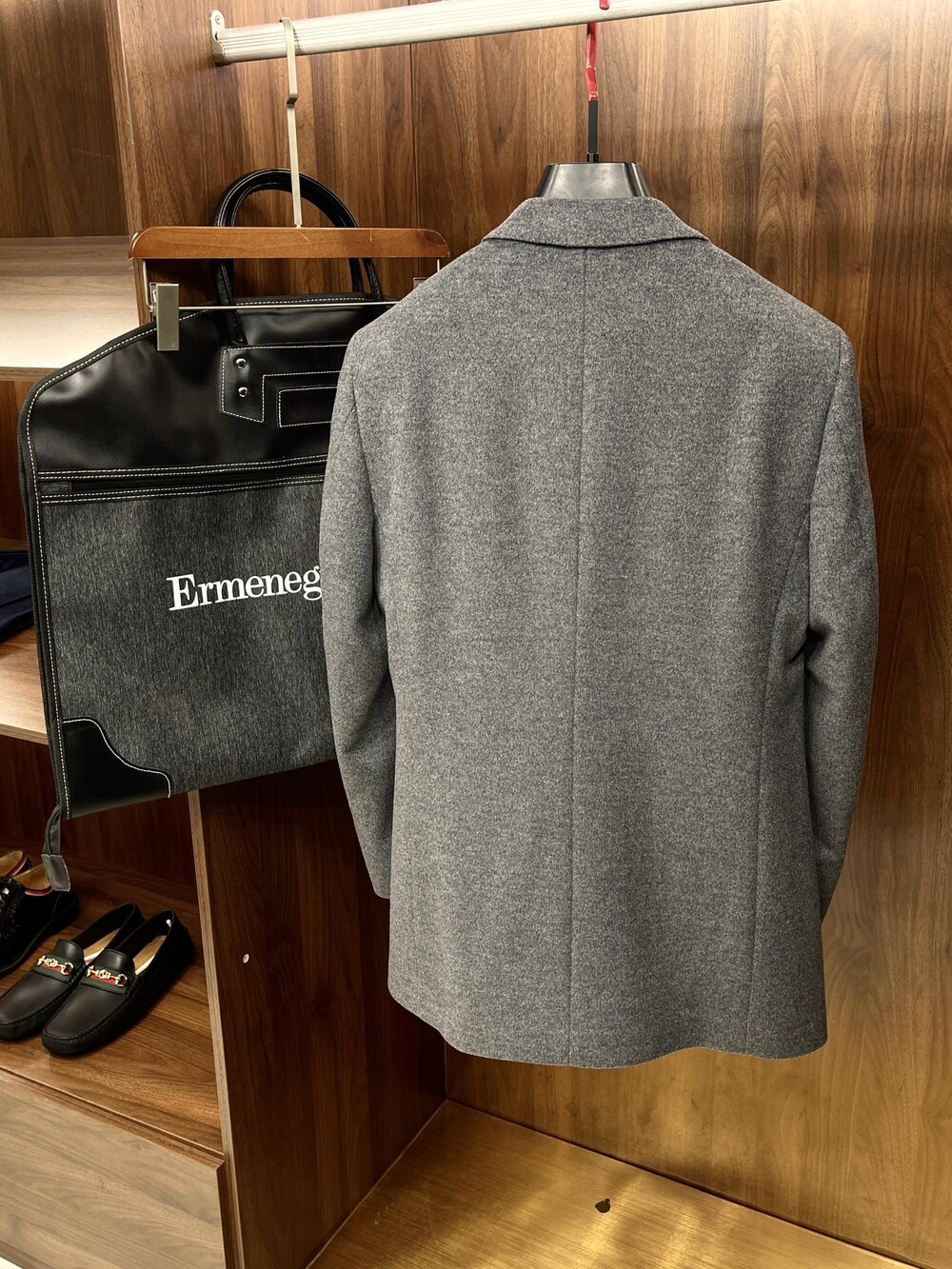 그레이 캐시미어 혼방 울 건라펠 블레이저