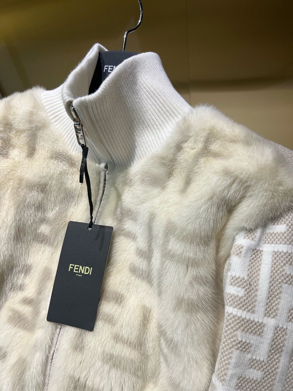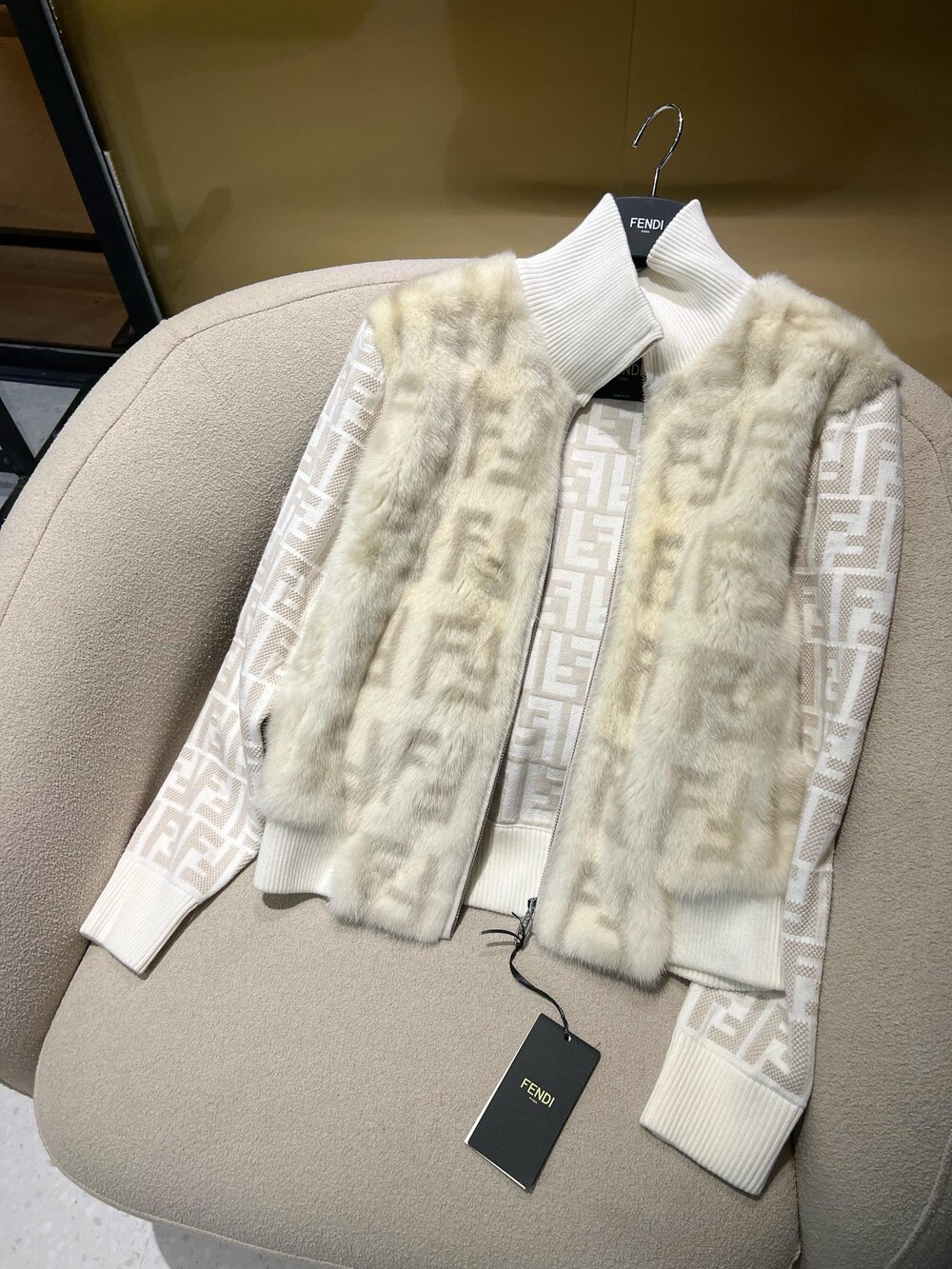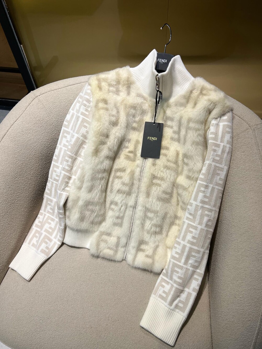 □F.endi 로고 밍크 퍼 니트 자켓□