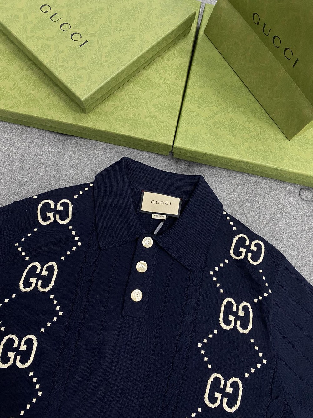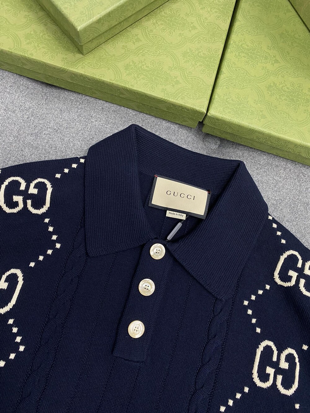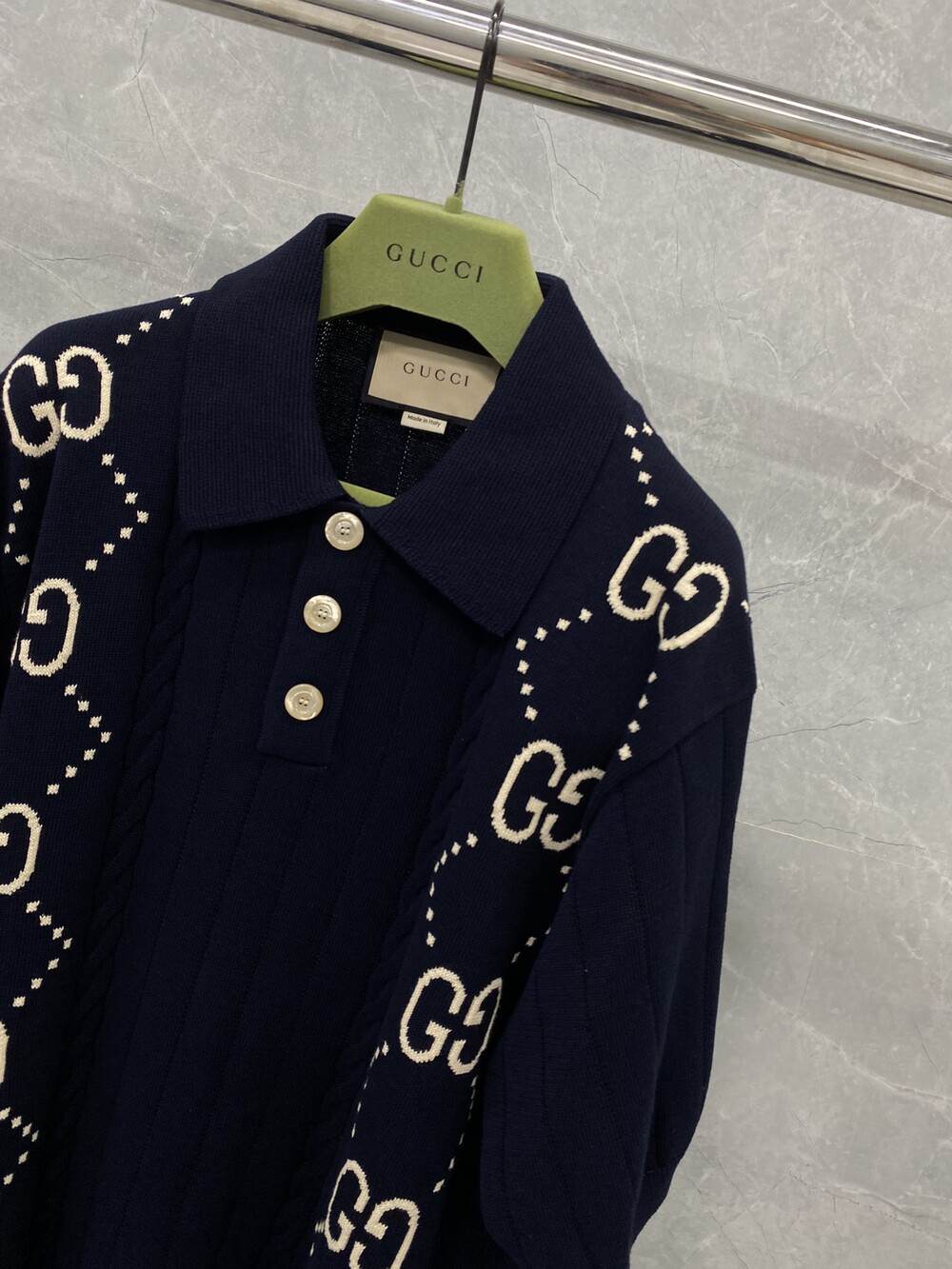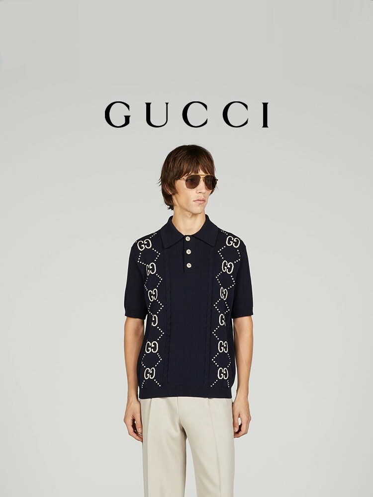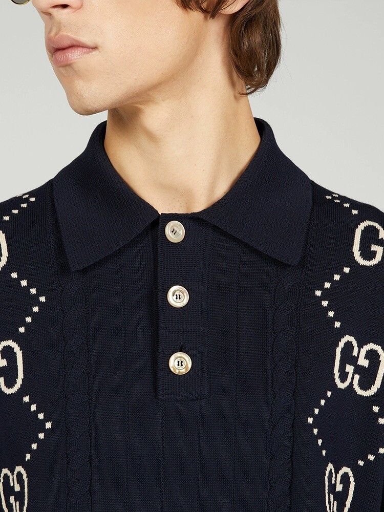 □GG 코튼 니트 폴로 셔츠□