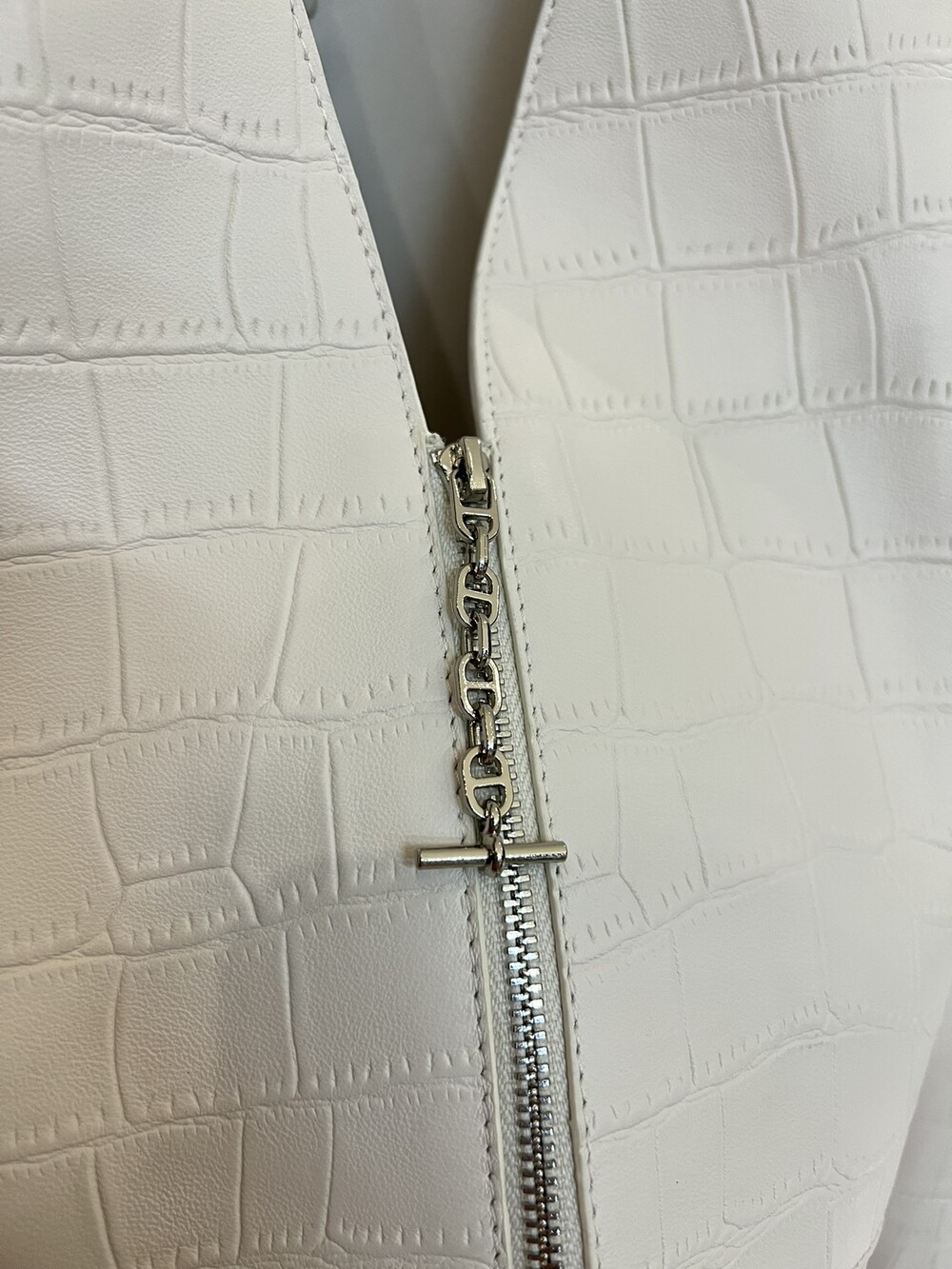 포켓은 '돼지코' 체인 지퍼 형태로 되어 있으며