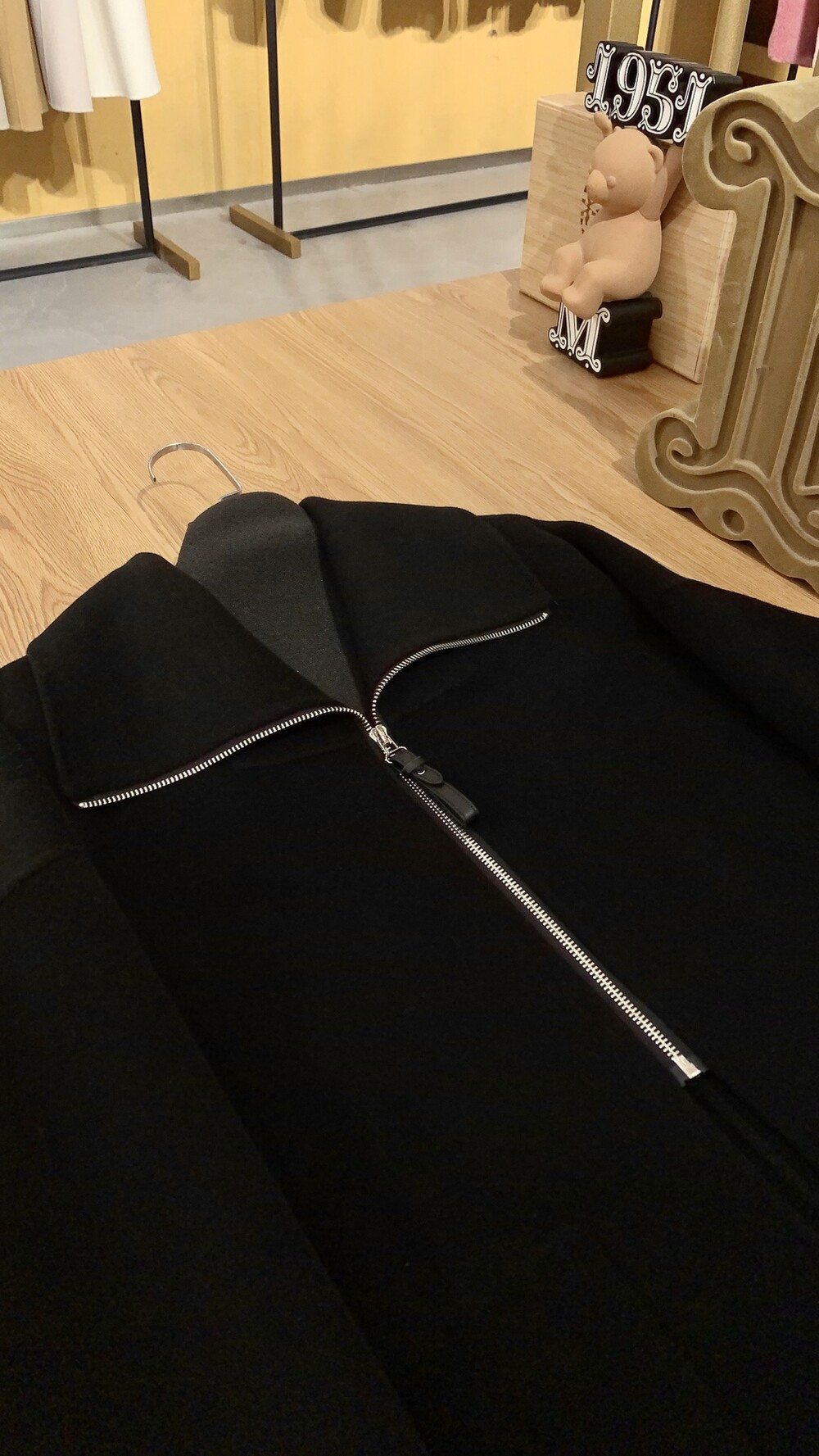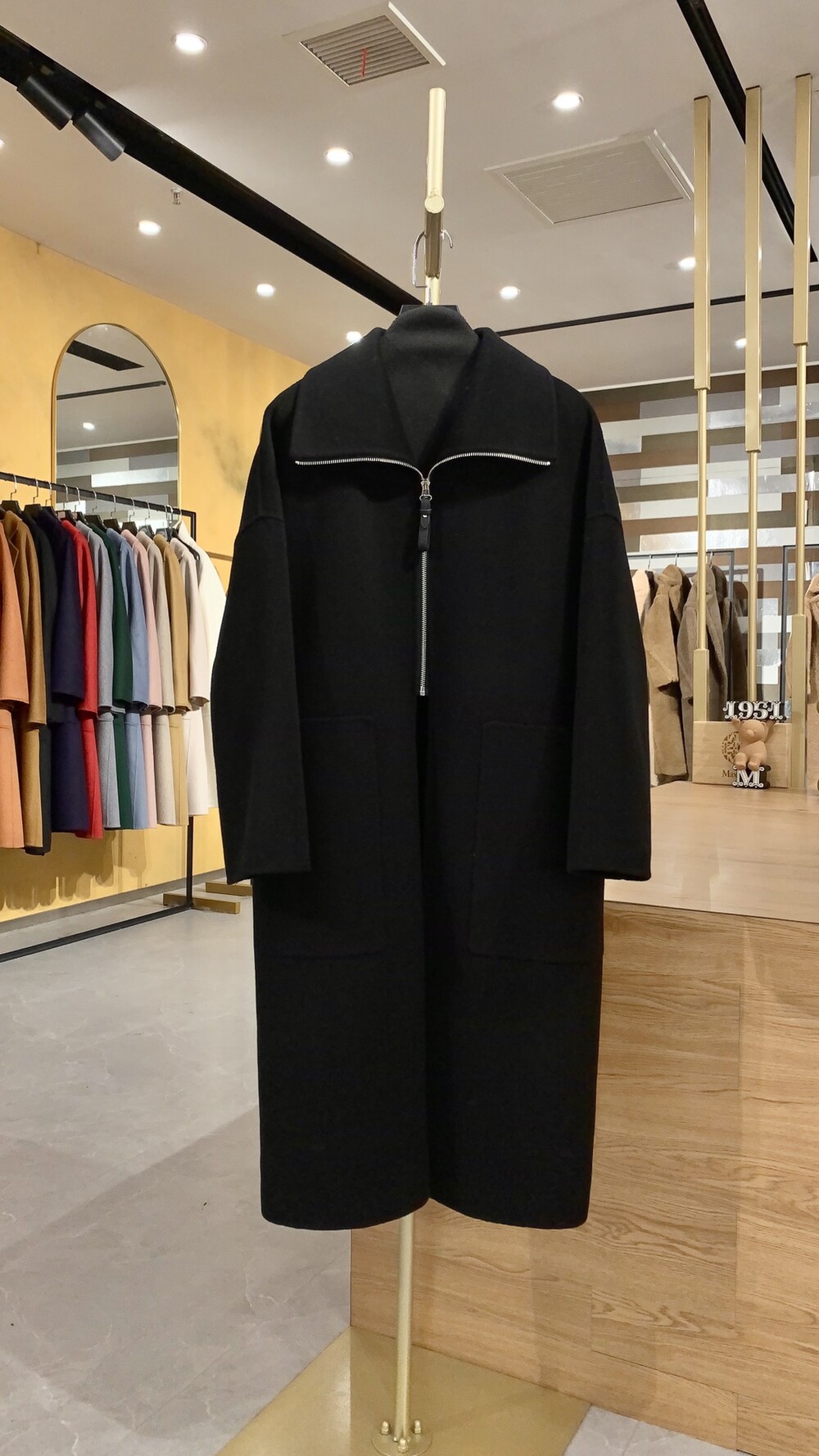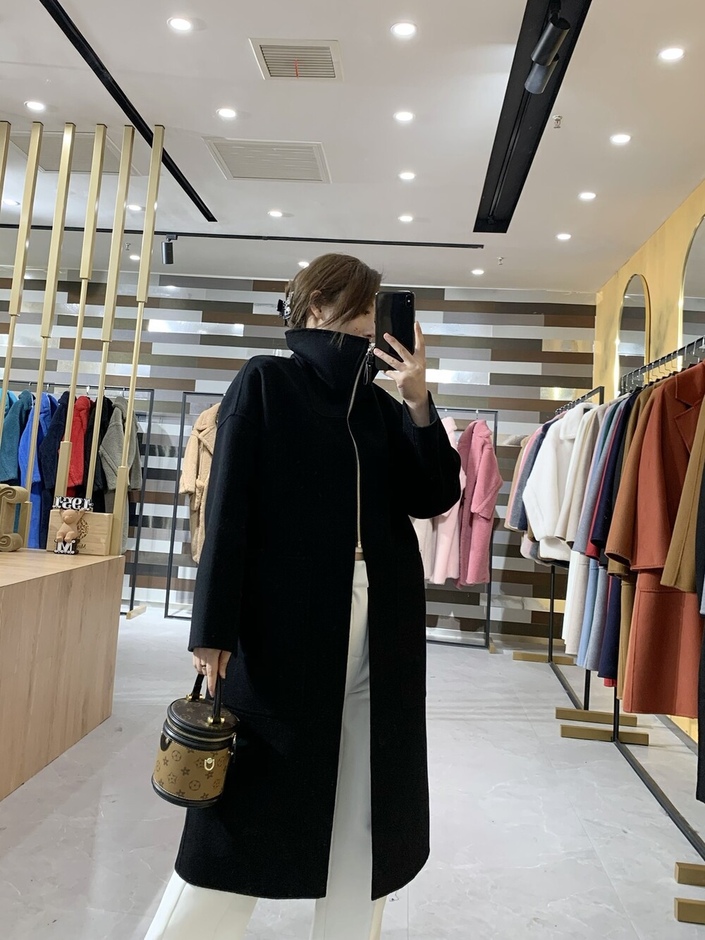 하프 지퍼 하이 칼라 양면 캐시미어 코트
