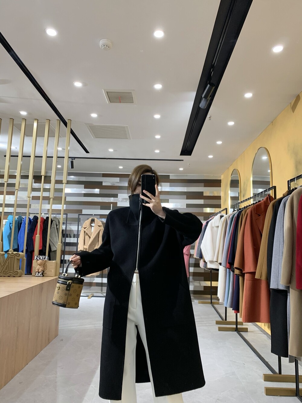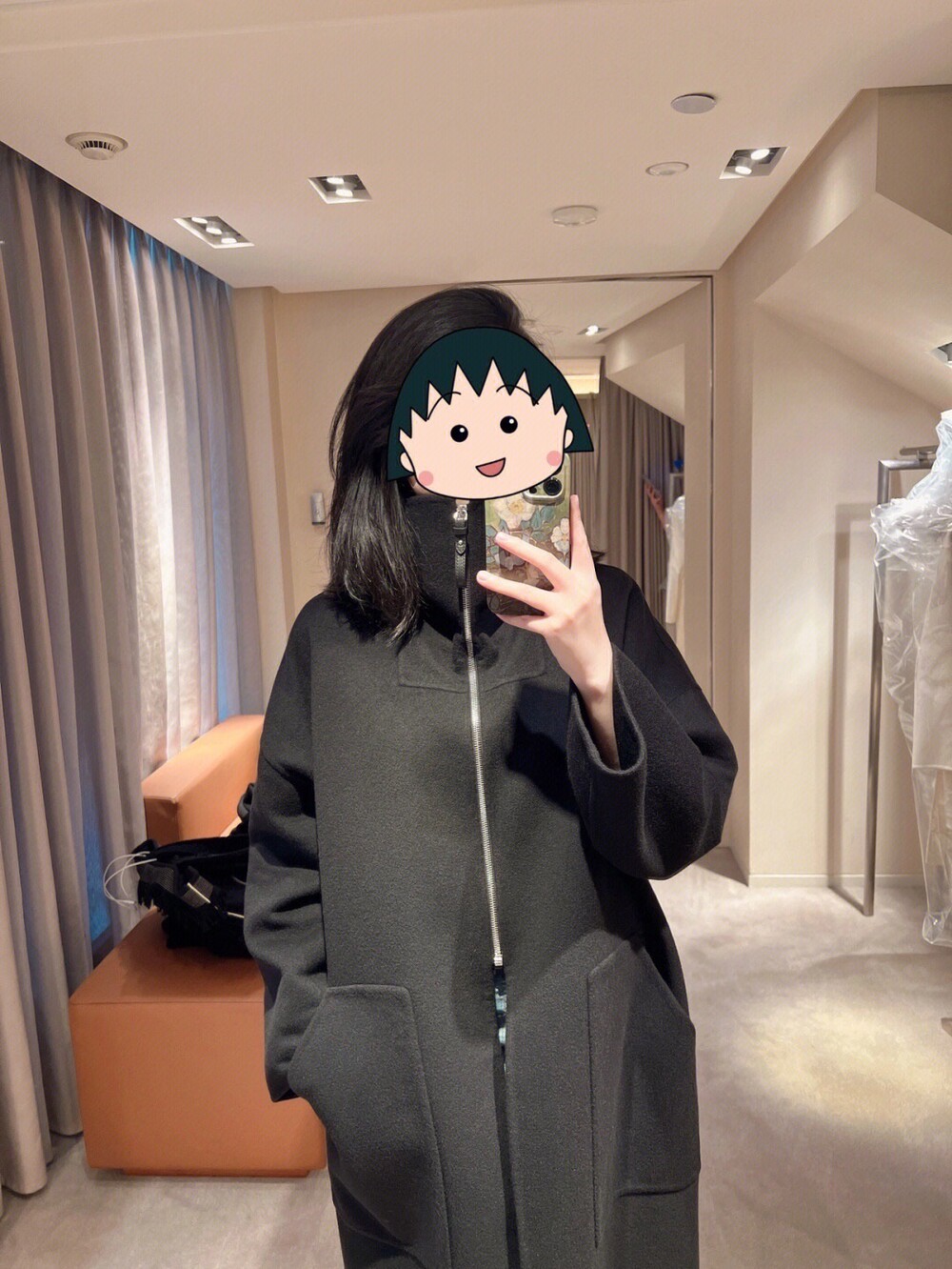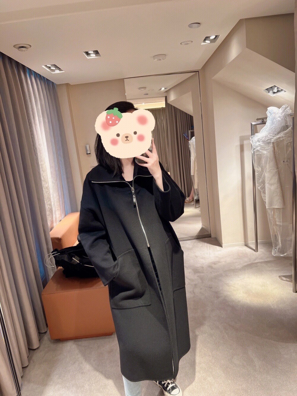 하프 지퍼 하이 칼라 양면 캐시미어 코트