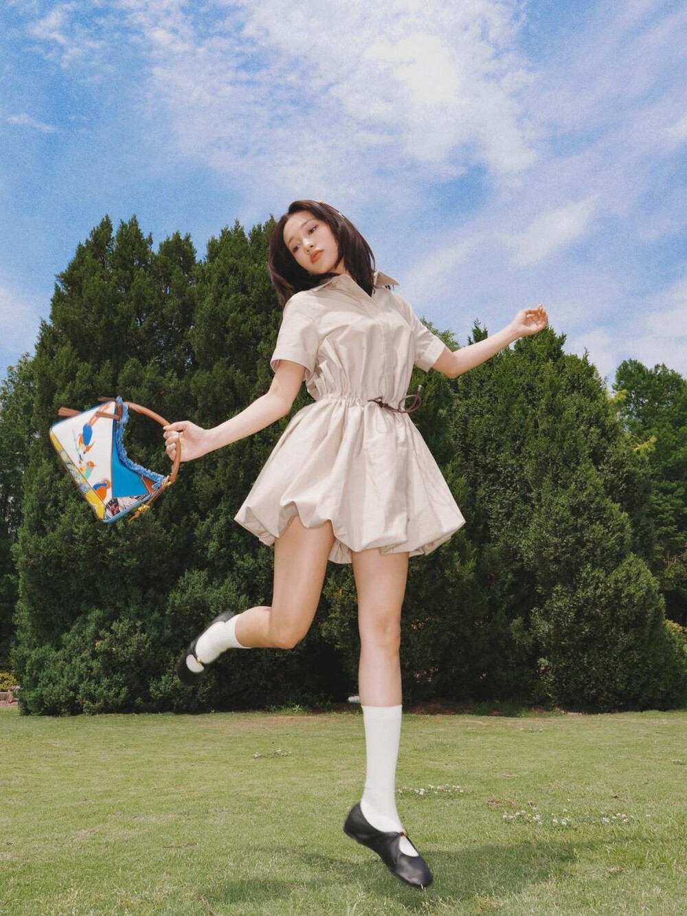 □코튼 실크 쇼트 슬리브 드레스□
