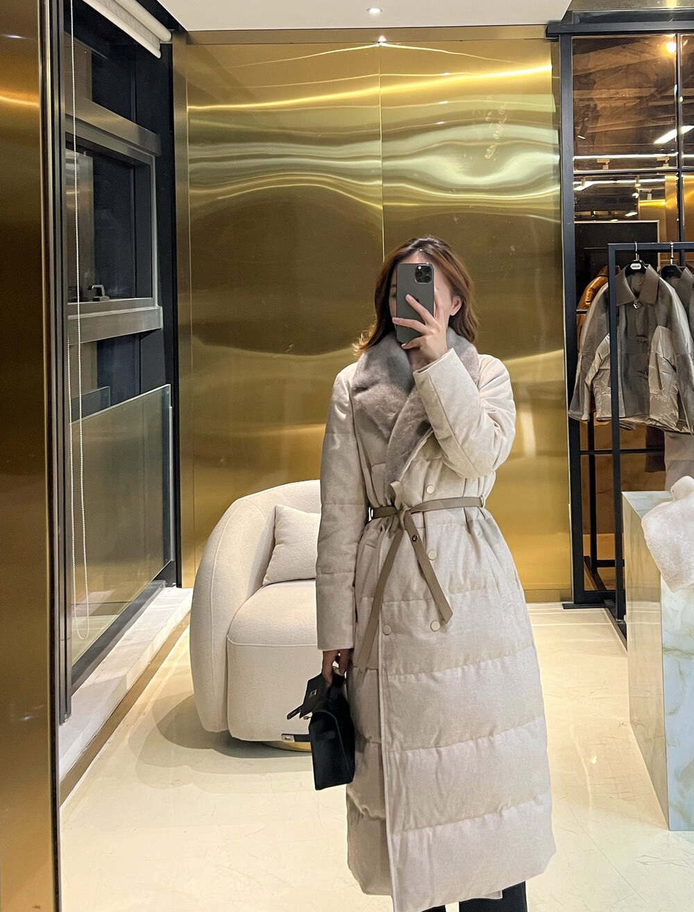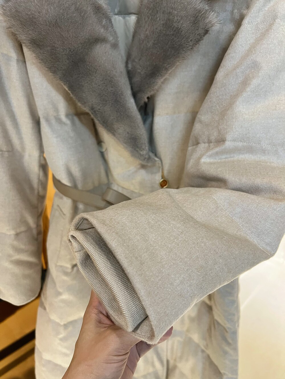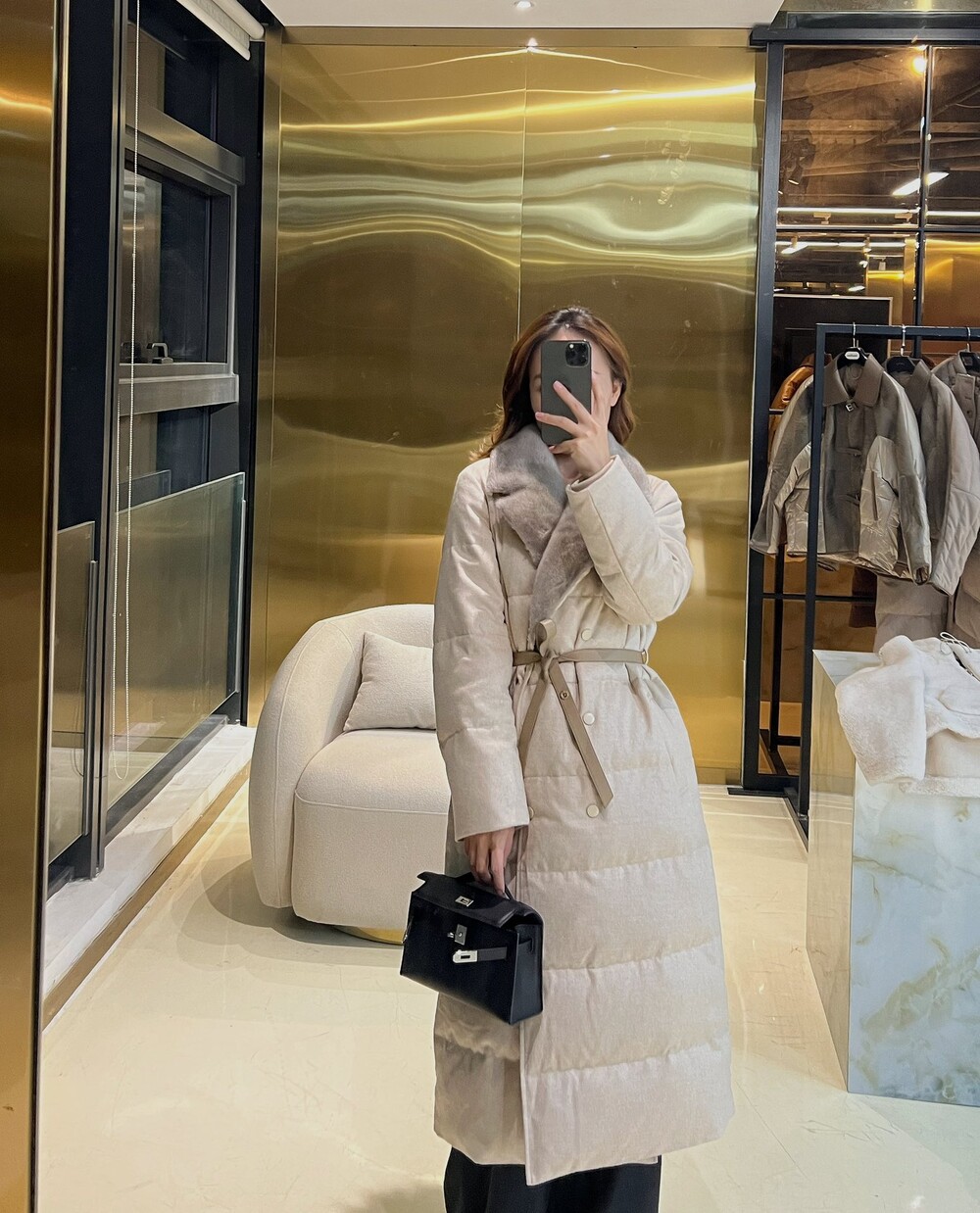 □밍크 퍼 울 실크 롱패딩 코트□
