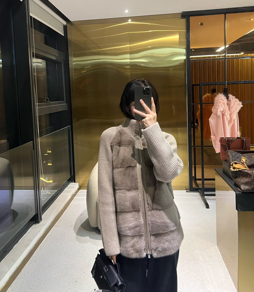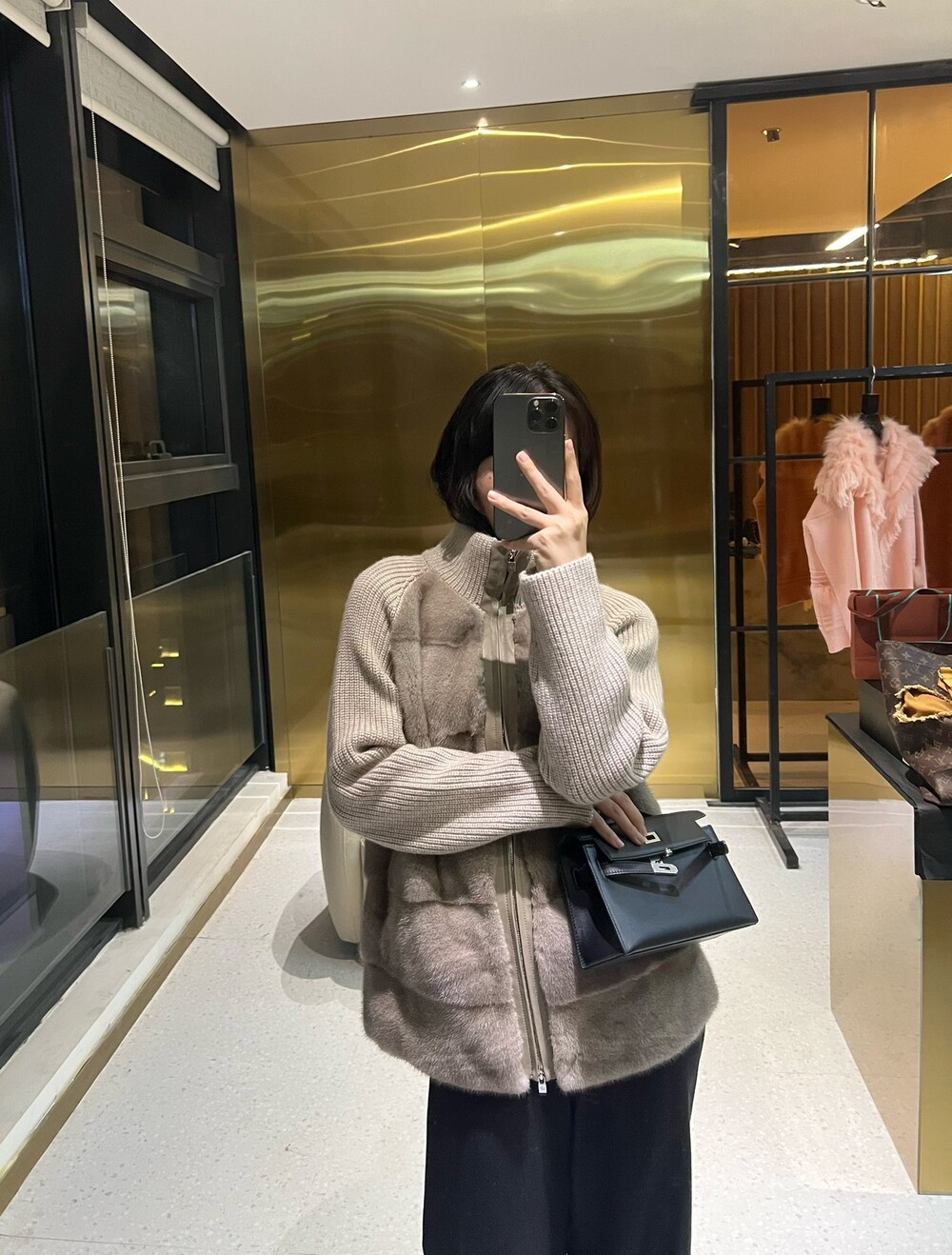 플래킷 수입 양가죽 밑단 믹스 앤 매치 소재가