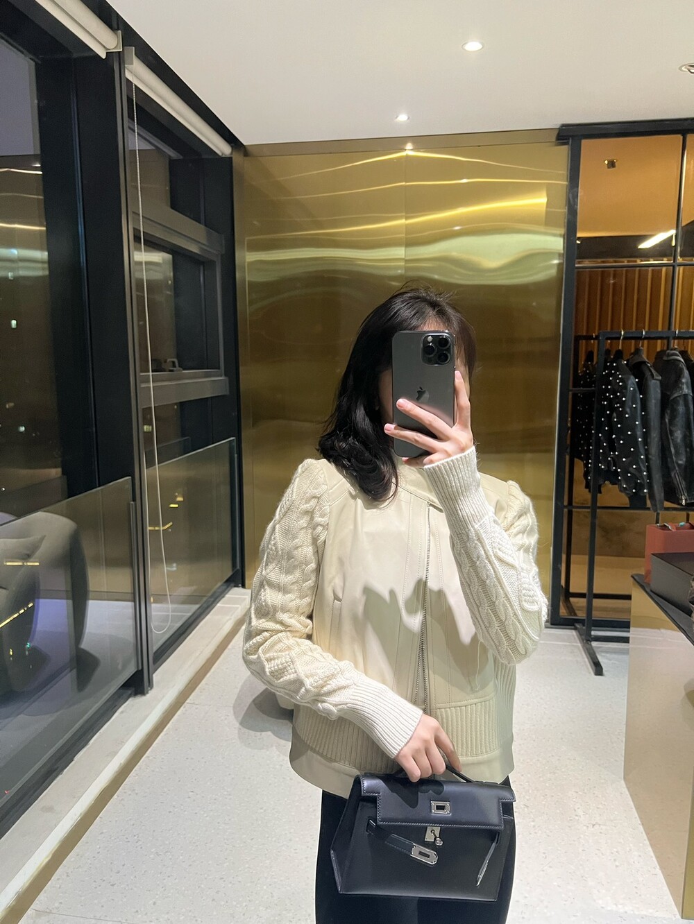 □캐시미어 니트 레더 집업 자켓□