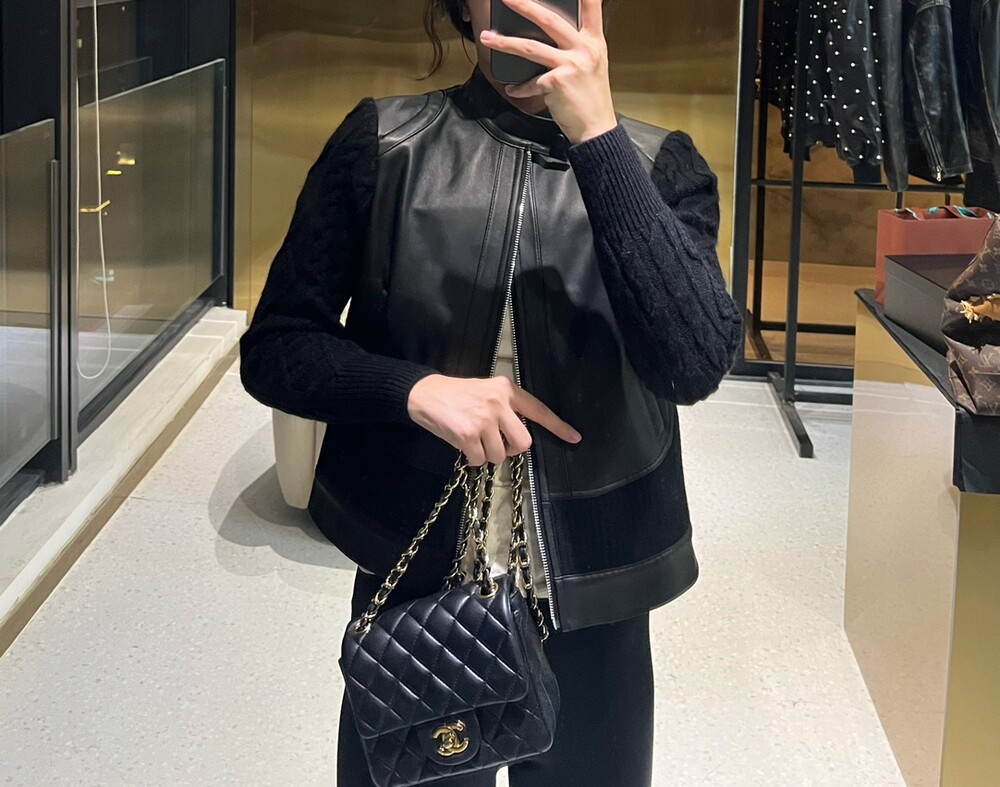 □캐시미어 니트 레더 집업 자켓□