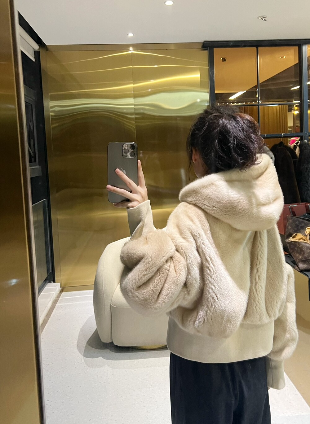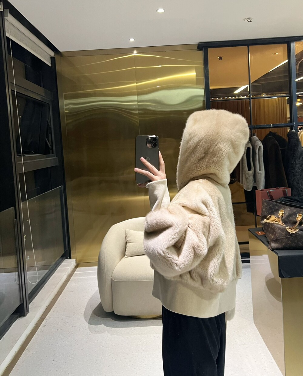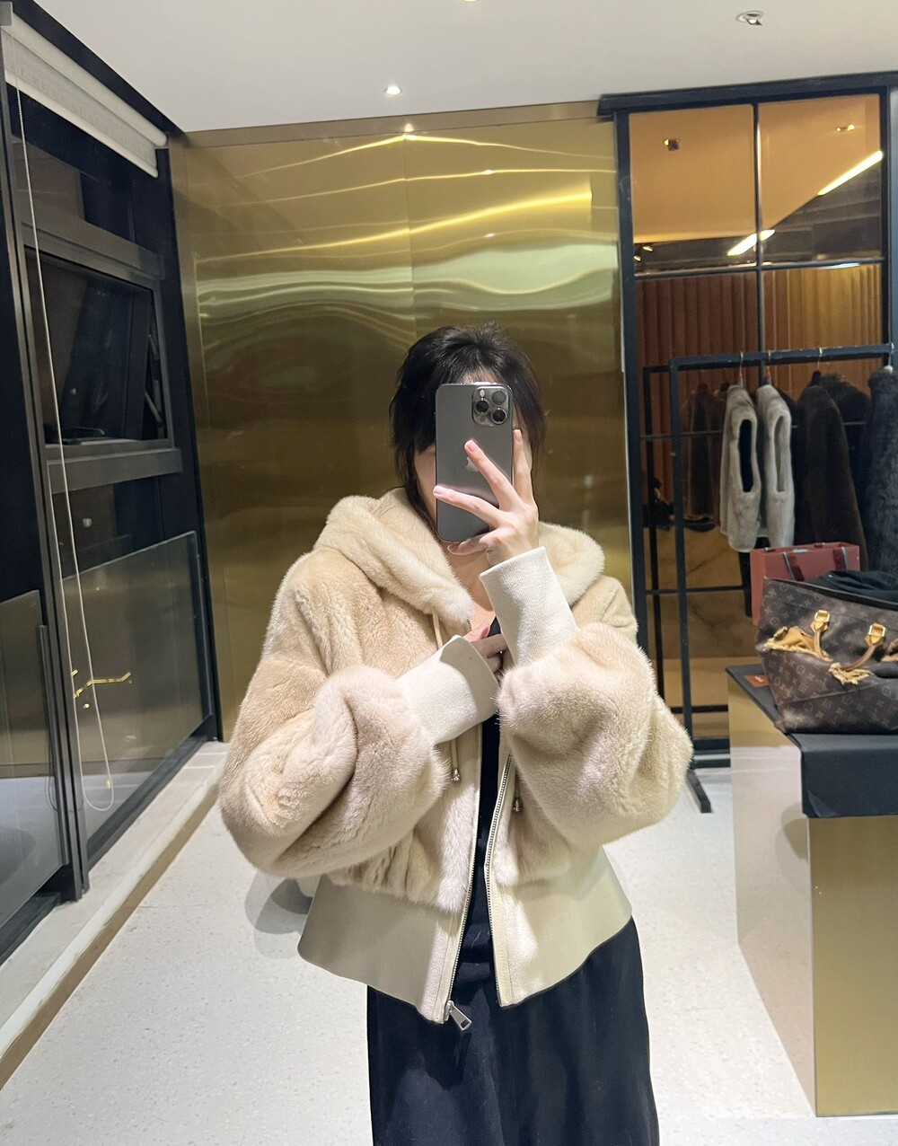 □밍크 후드 구스 다운 롱 패딩 코트□