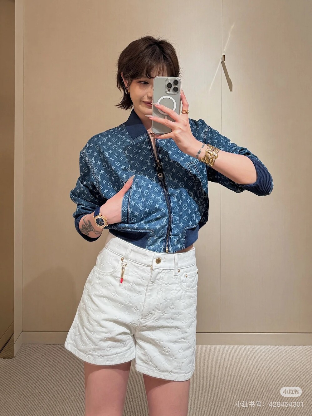 □모노그램 자카드 데님 쇼츠□