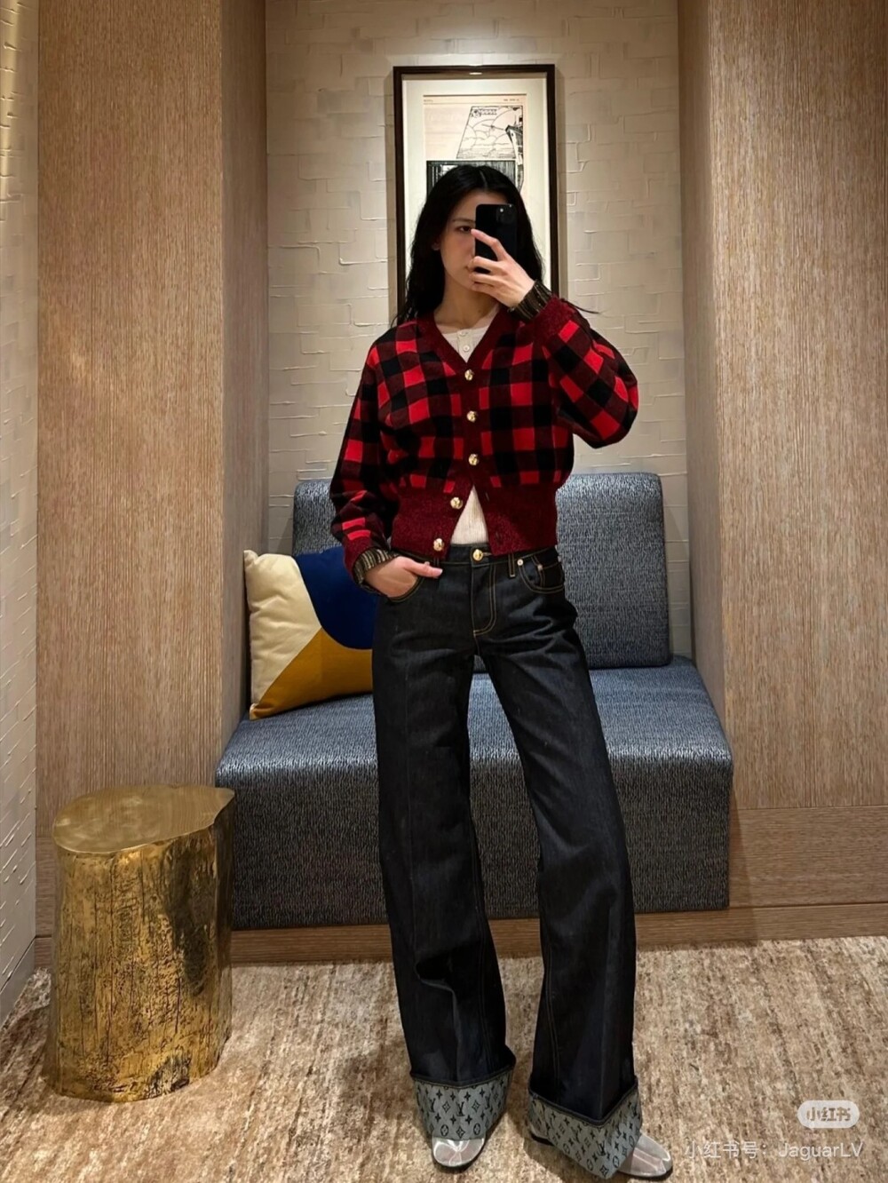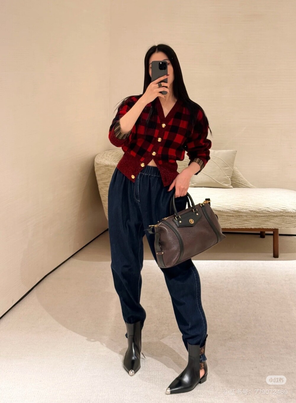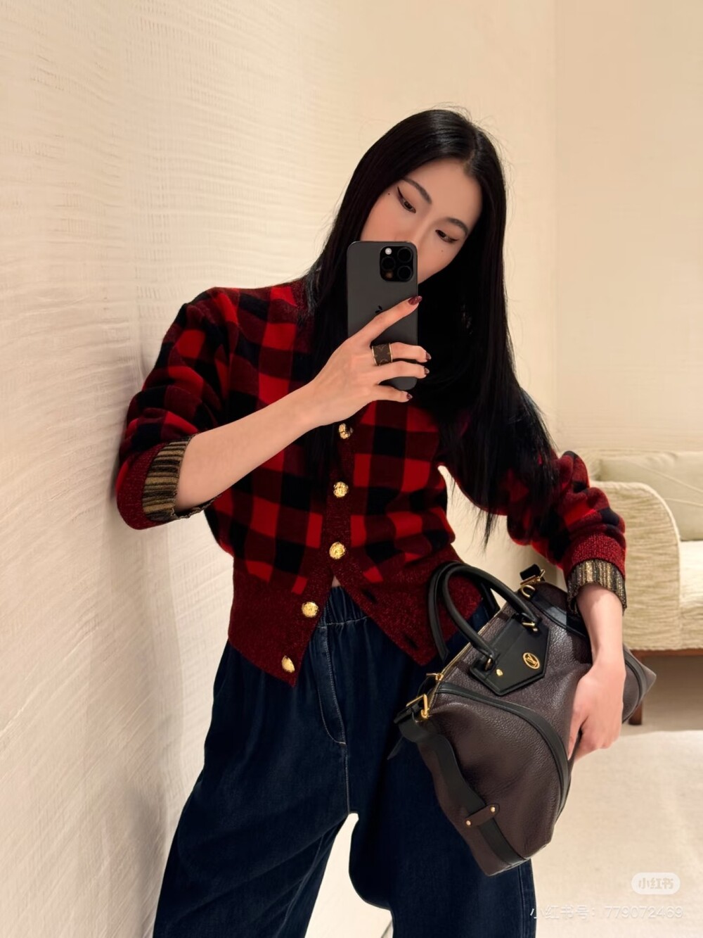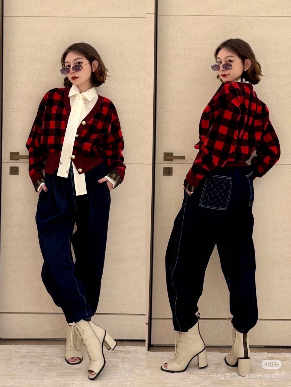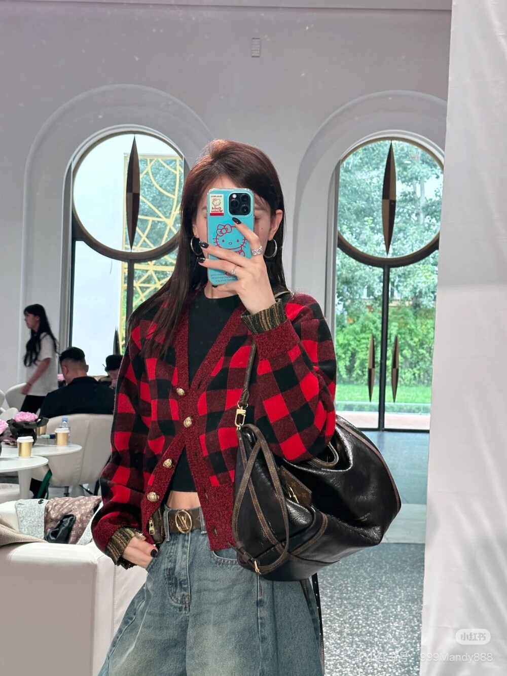 전체적으로 레드와 블랙 체크 패턴이 돋보입니다