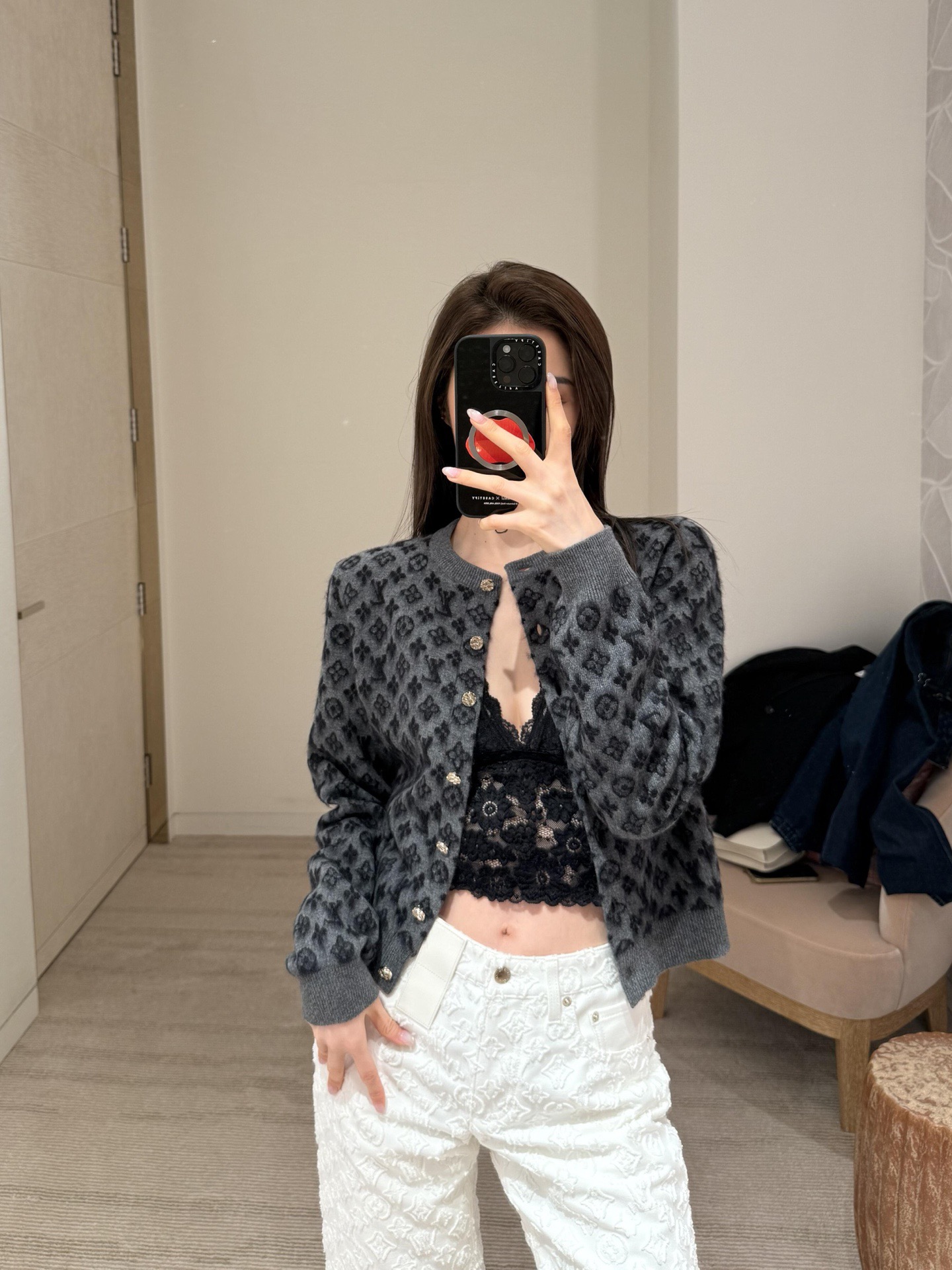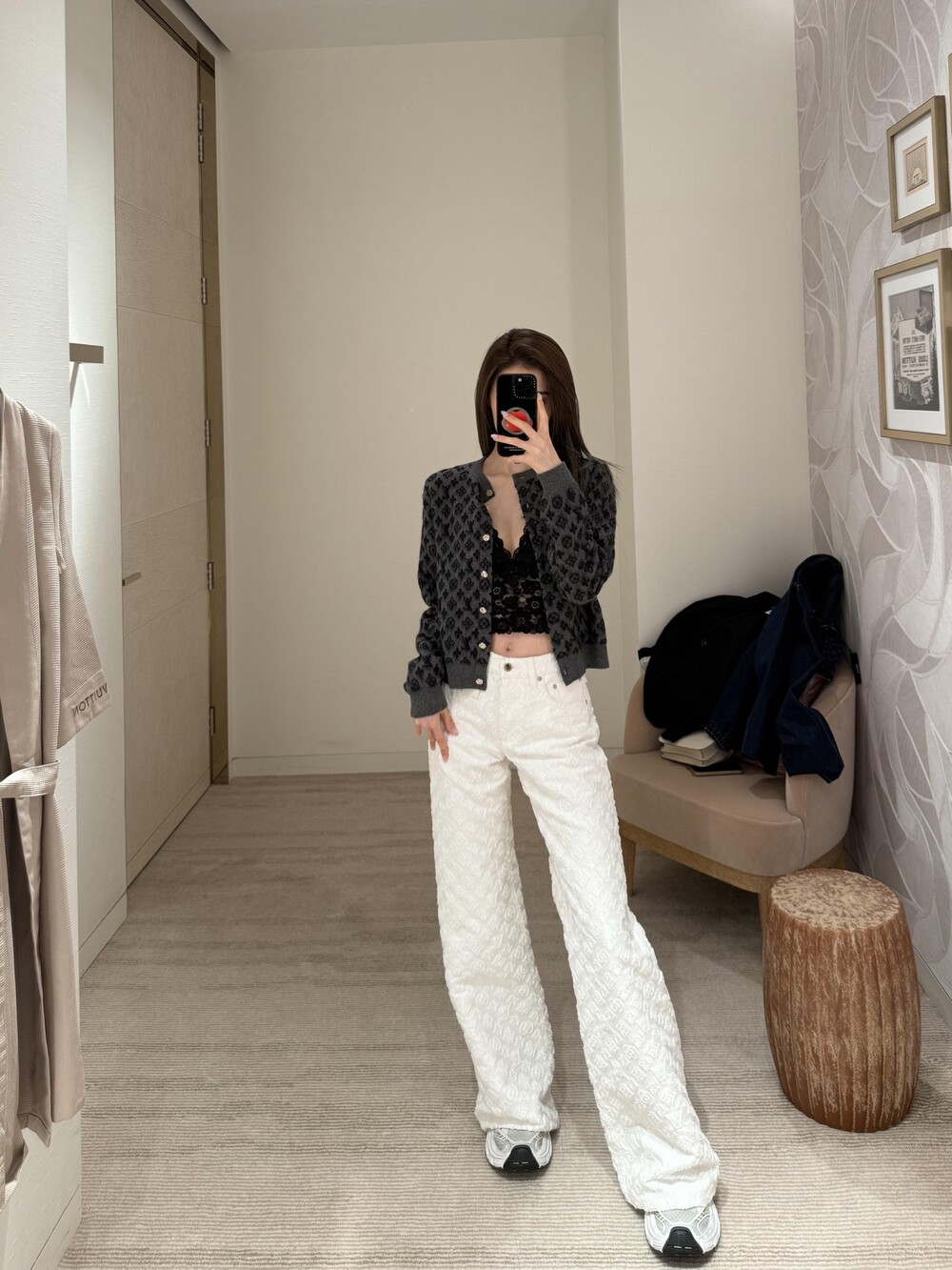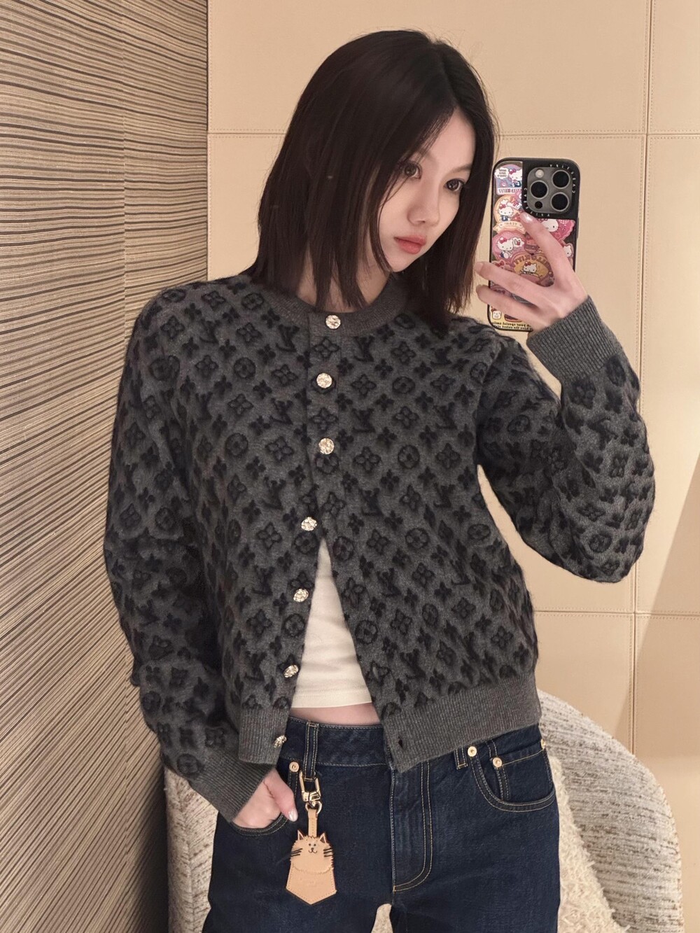 □브러시드 모노그램 가디건□