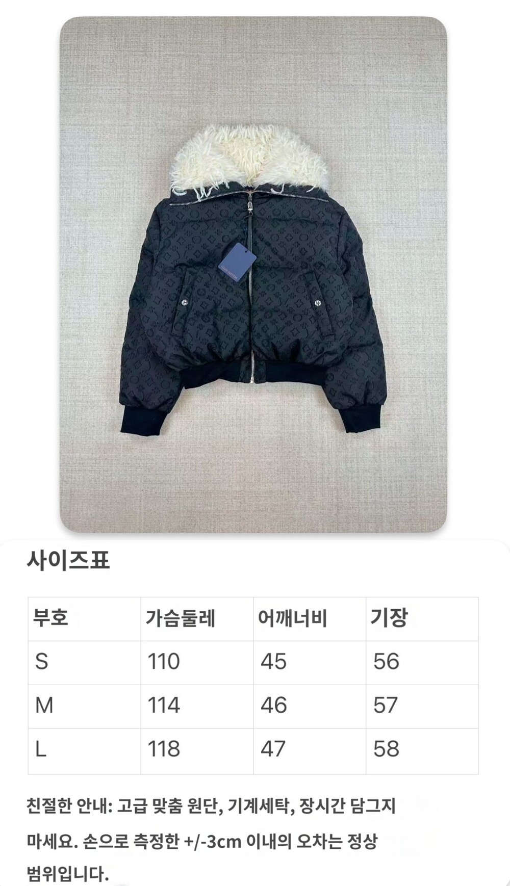 어깨 너비와 총장 1cm의 차이가 있습니다