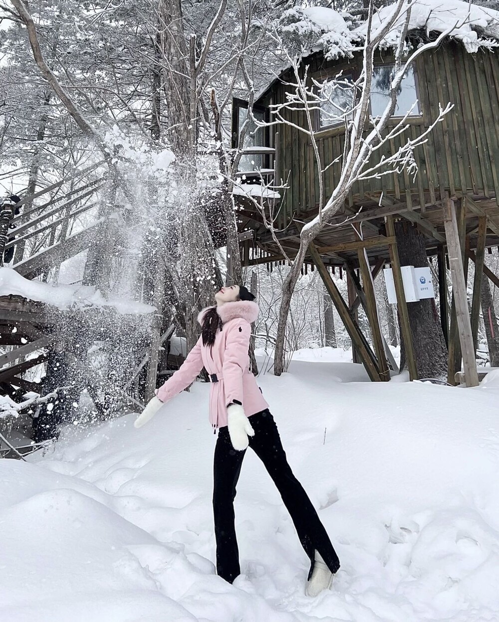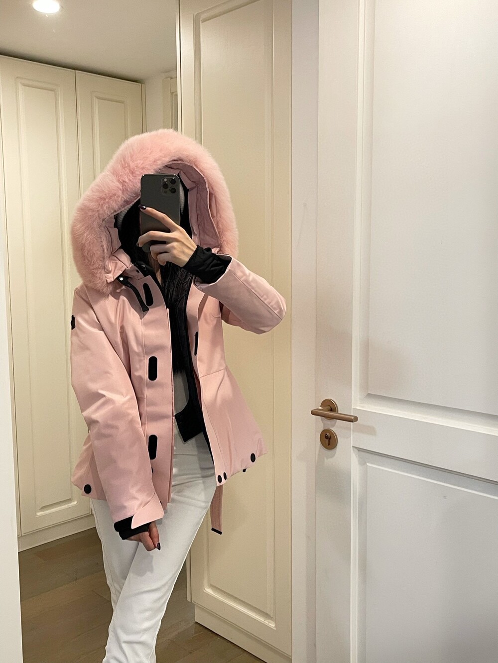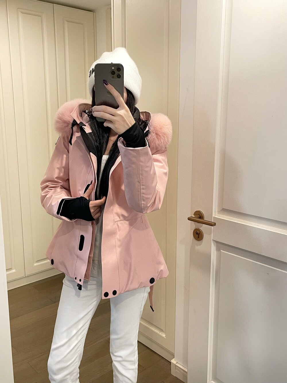 폴리에스테르 소재의 여성용 스키 재킷입니다