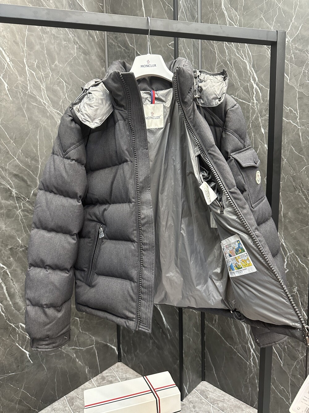 나선형 지퍼가 달린 내부 포켓후드와