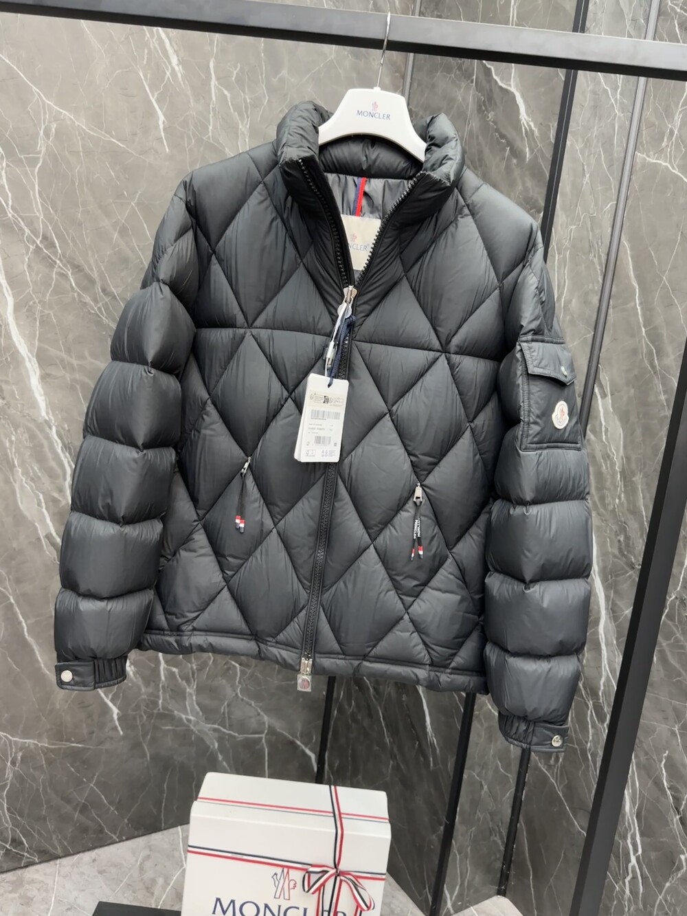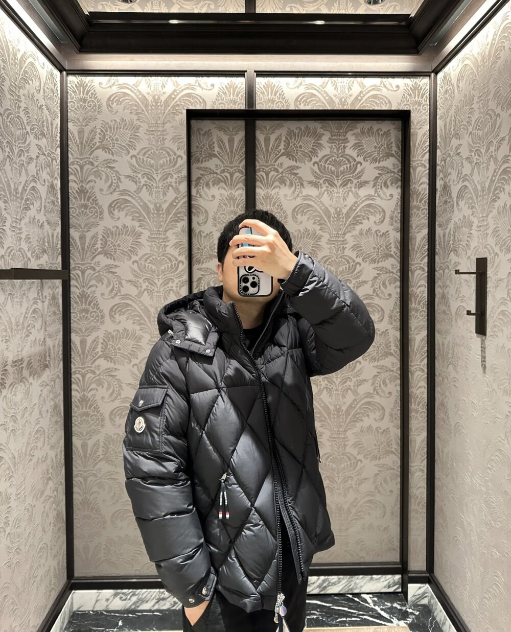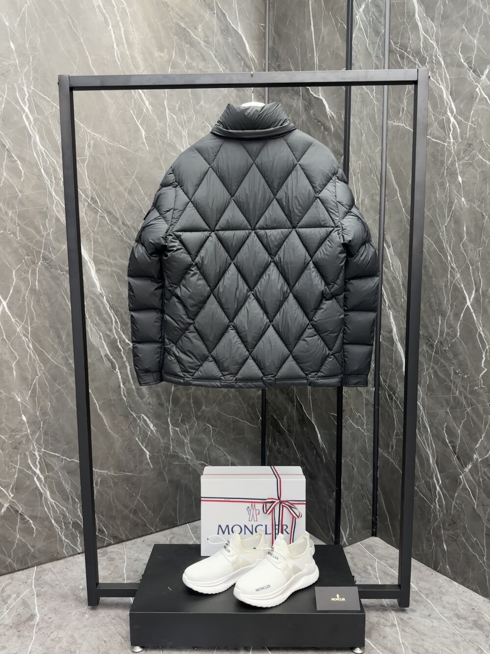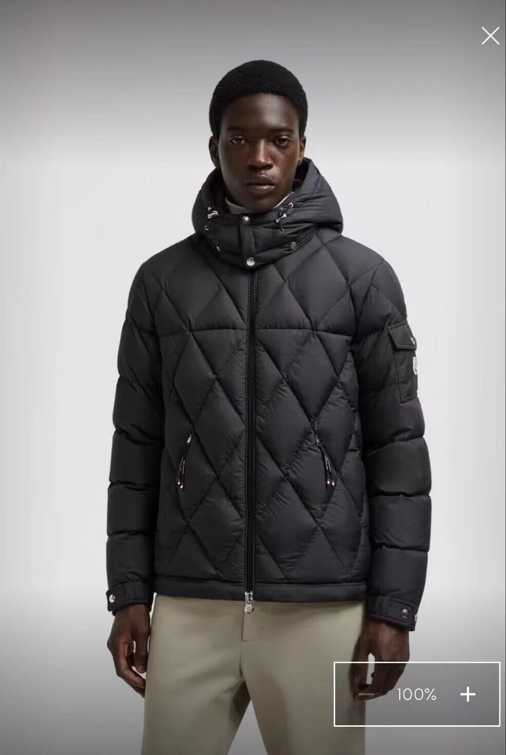 남성용 다이아몬드 퀼팅 다운 재킷.
