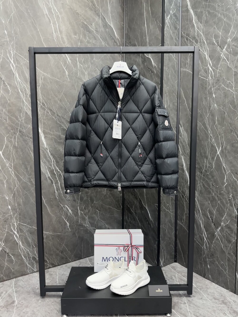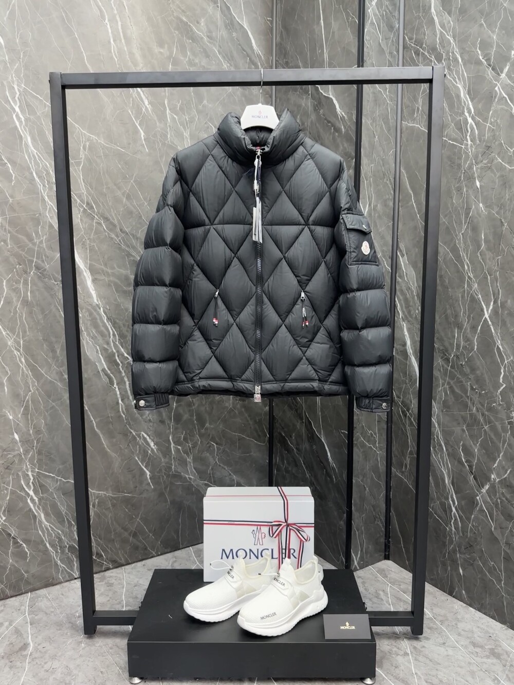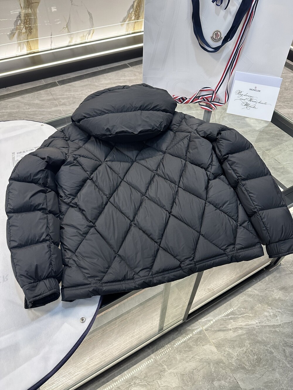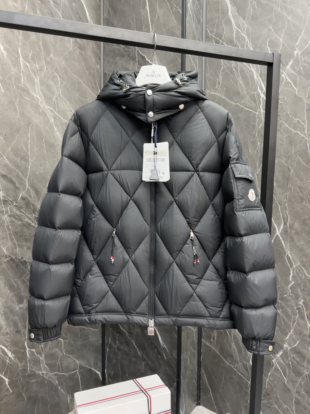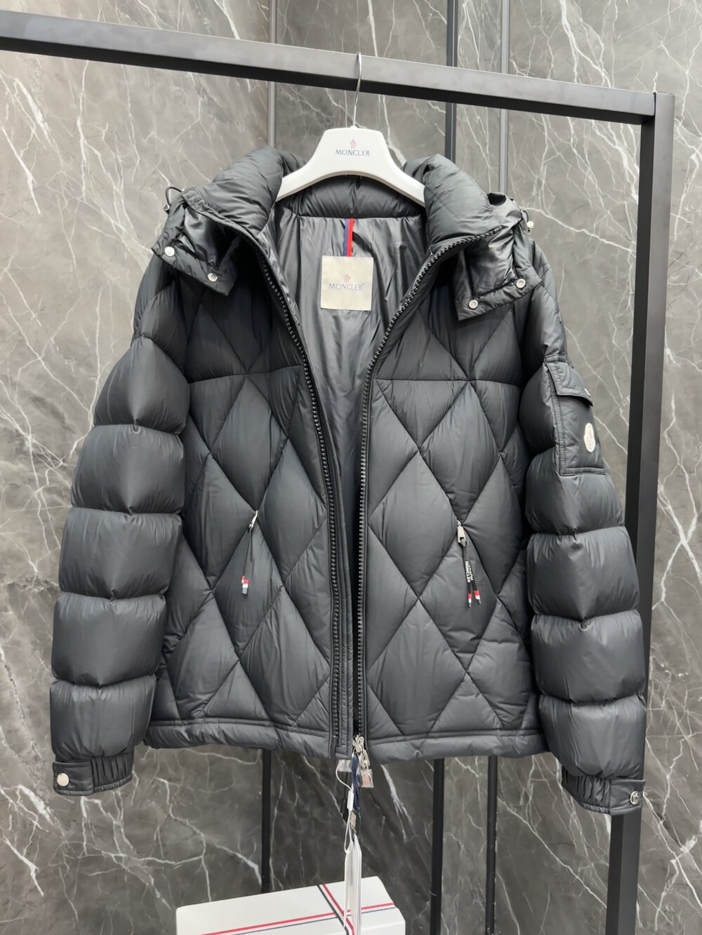 남성용 다이아몬드 퀼팅 다운 재킷.