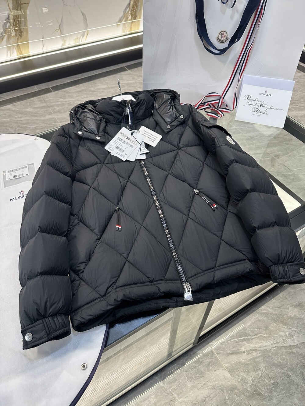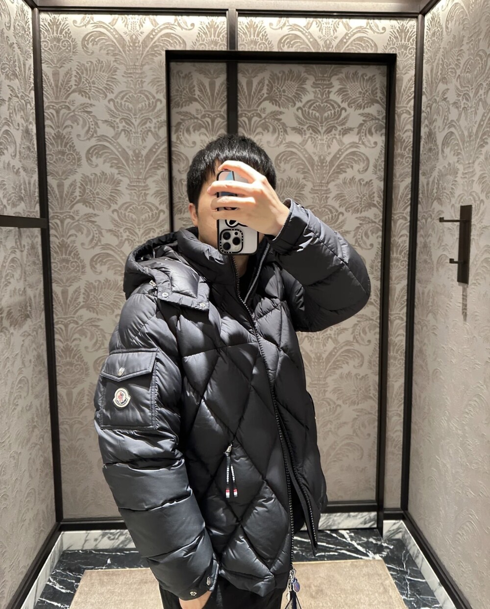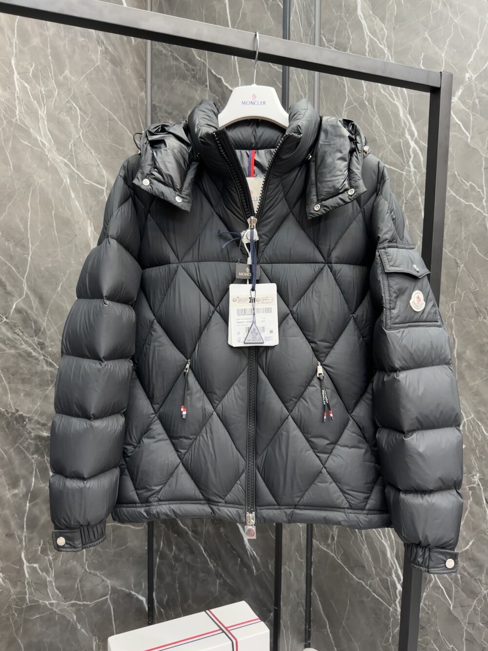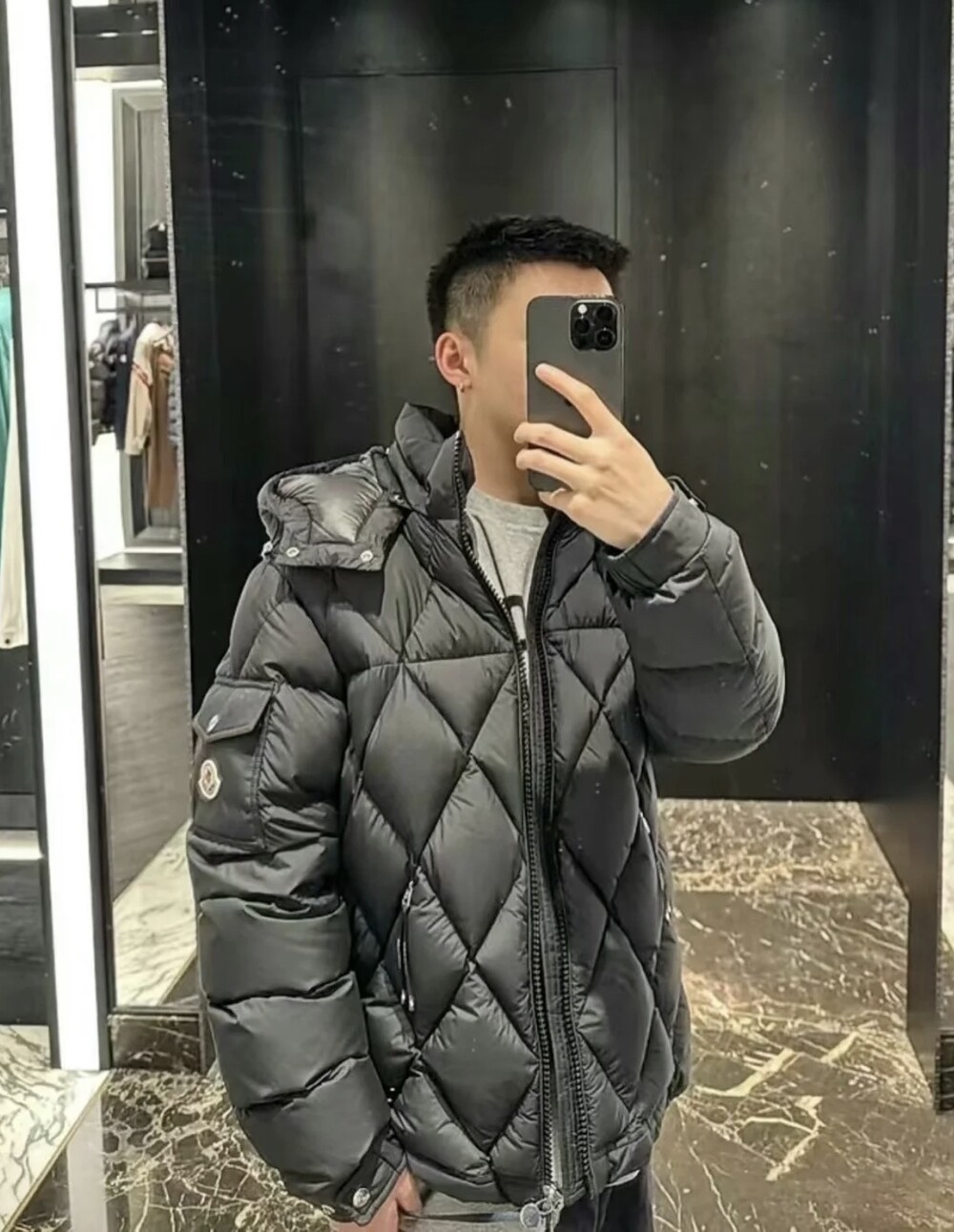 남성용 다이아몬드 퀼팅 다운 재킷.