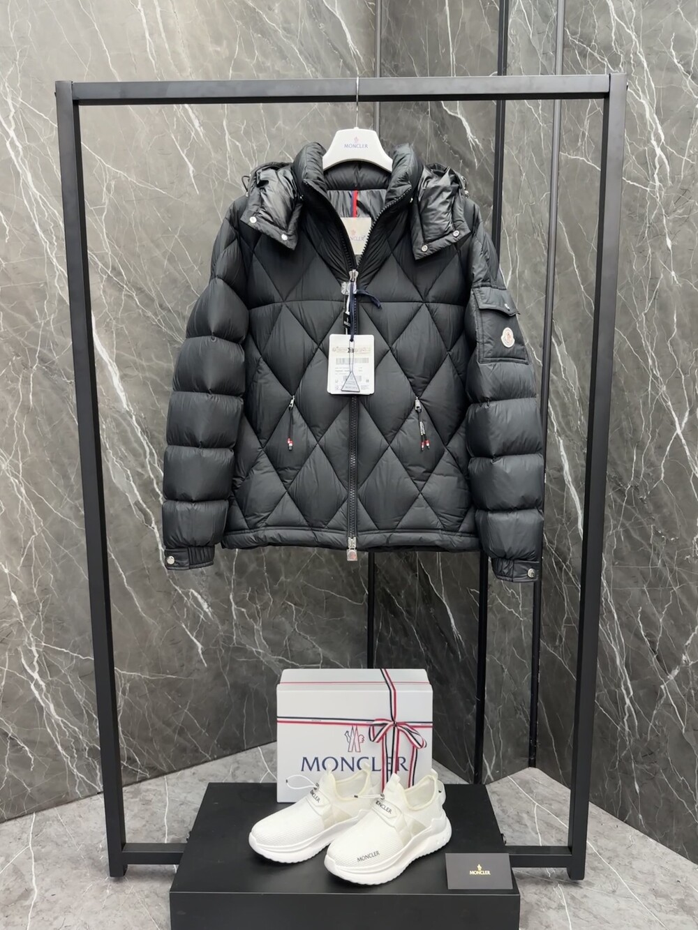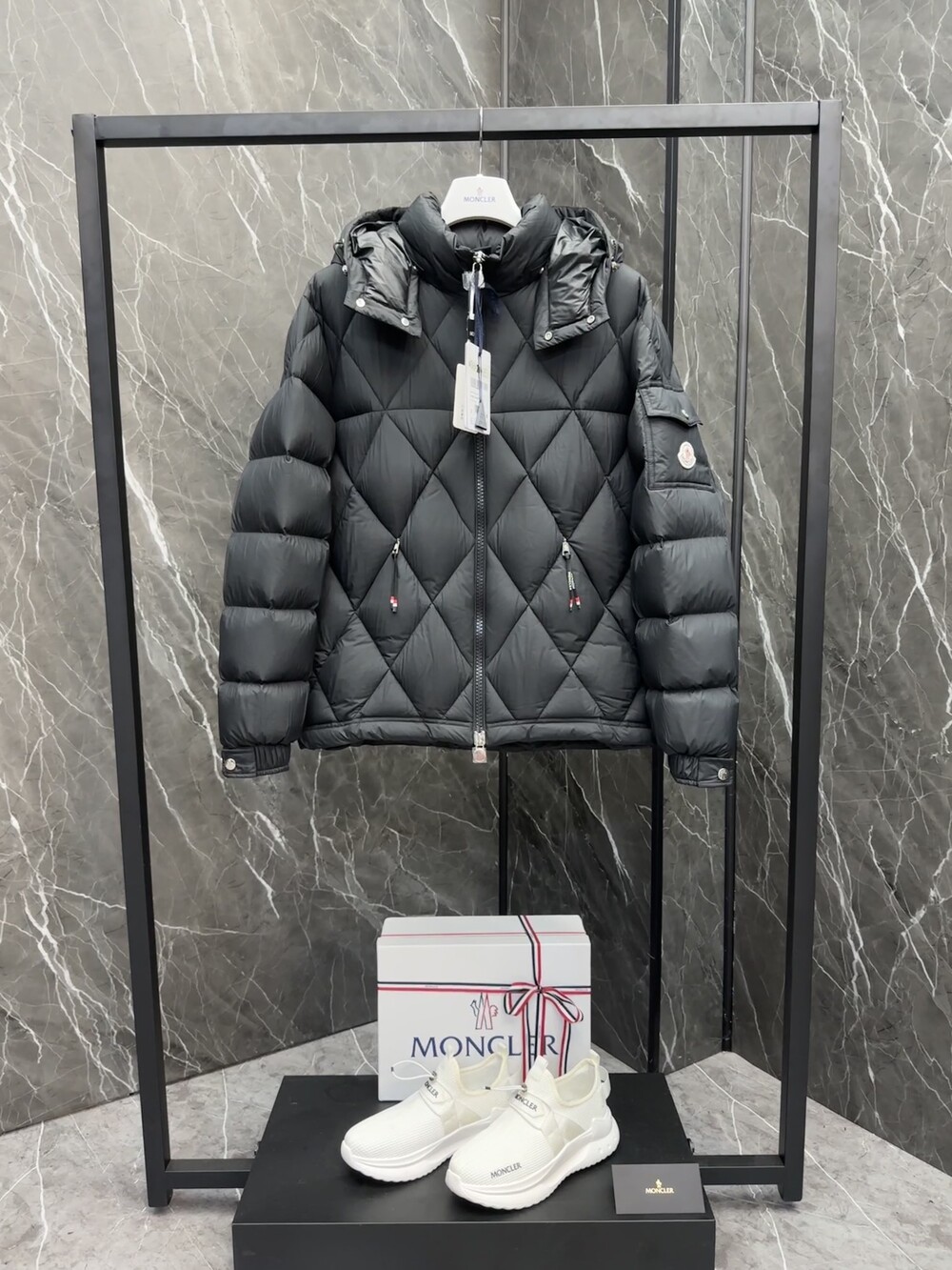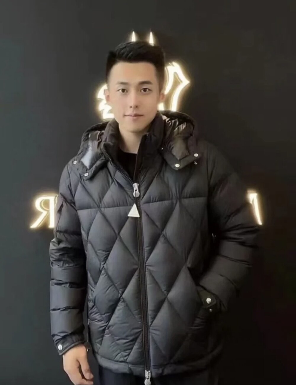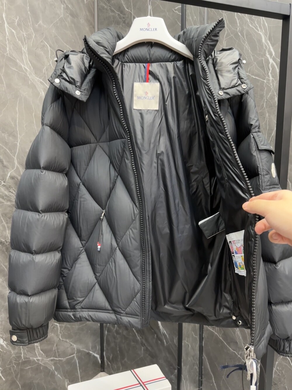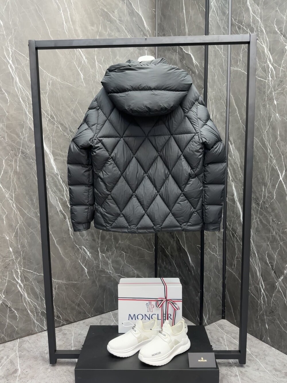 남성용 다이아몬드 퀼팅 다운 재킷.