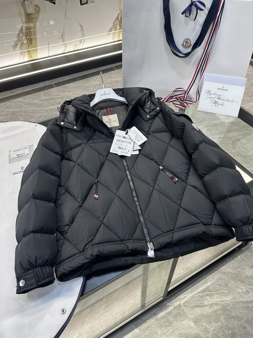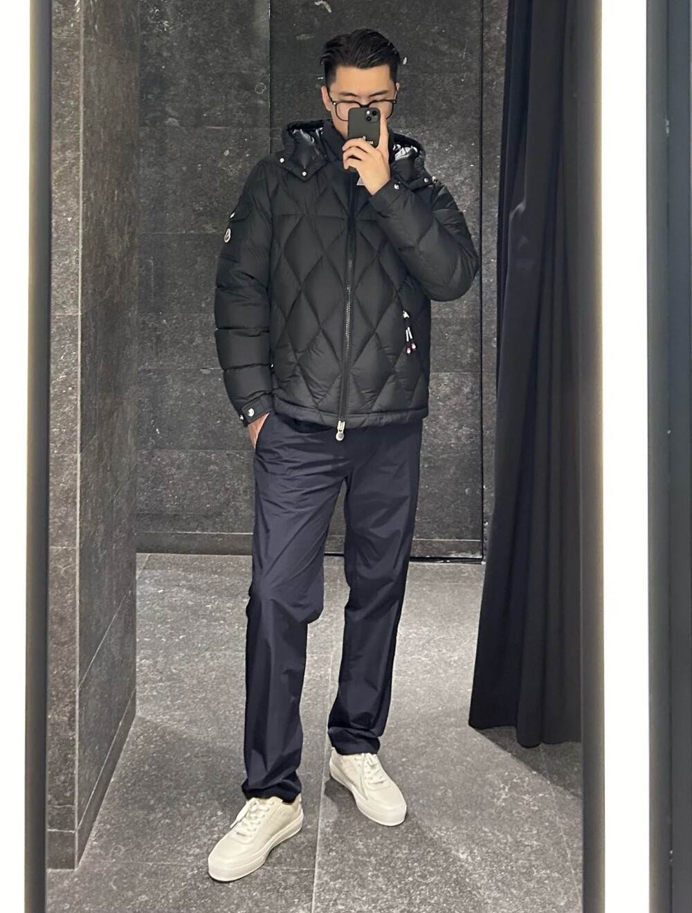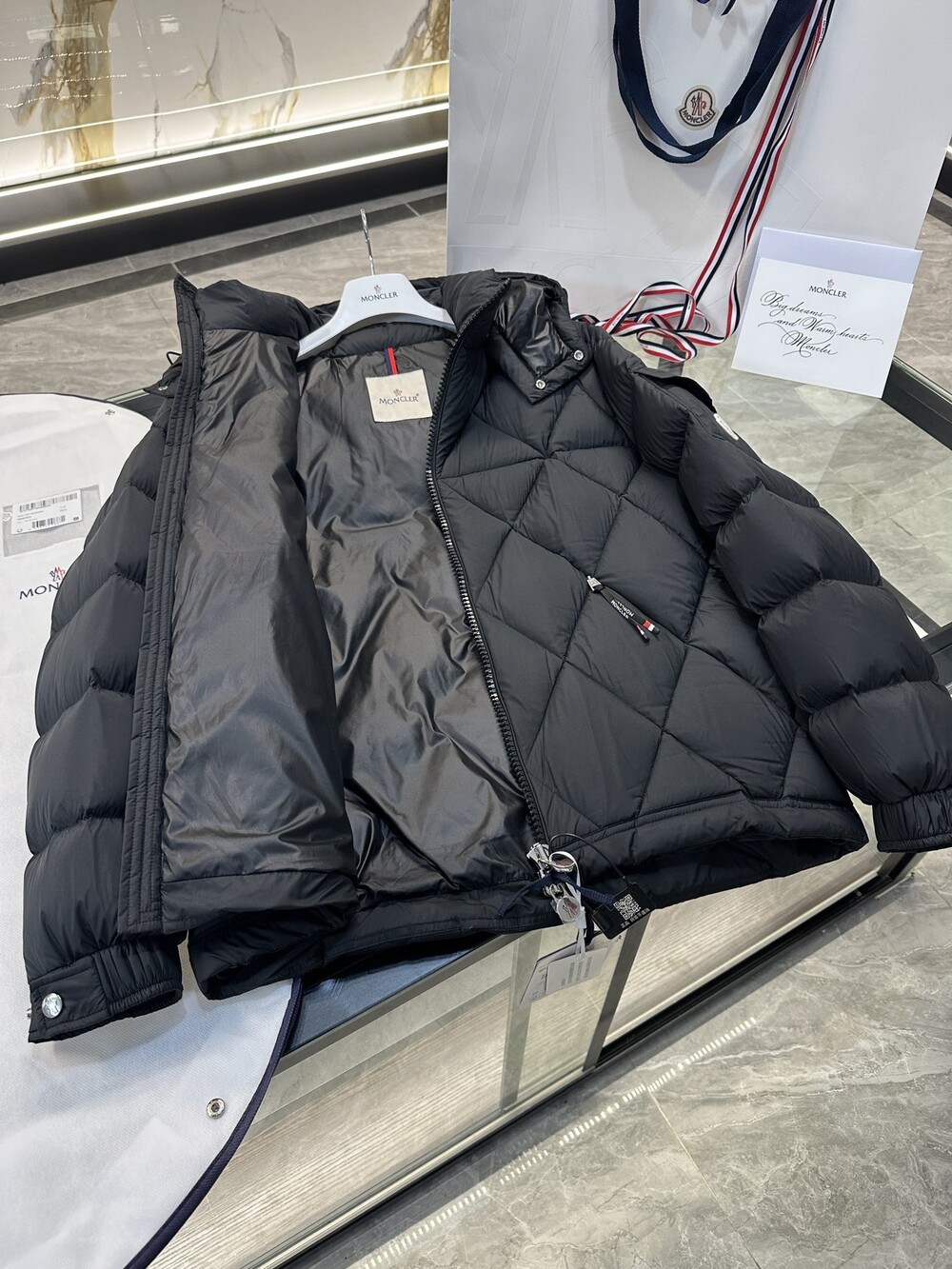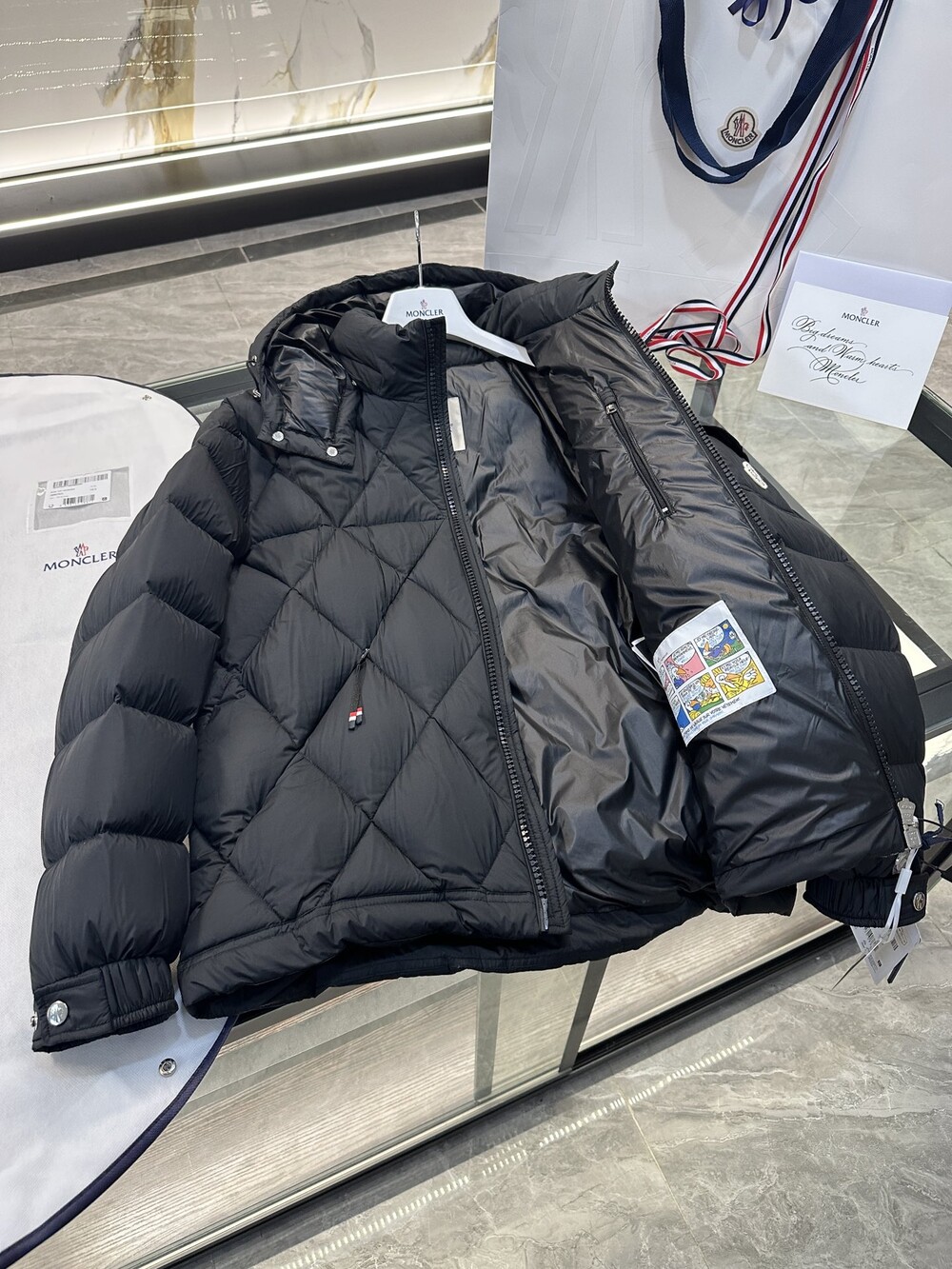 남성용 다이아몬드 퀼팅 다운 재킷.