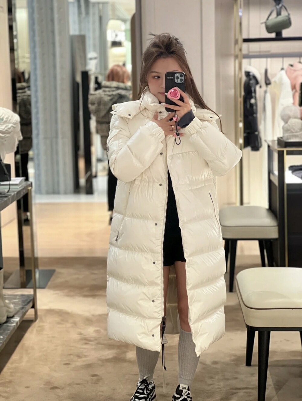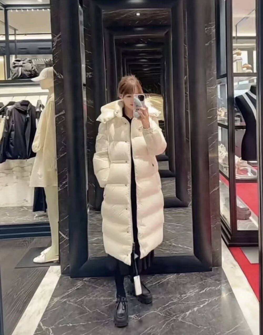 이 롱 아이템은nylon laqué 소재로 제작되어