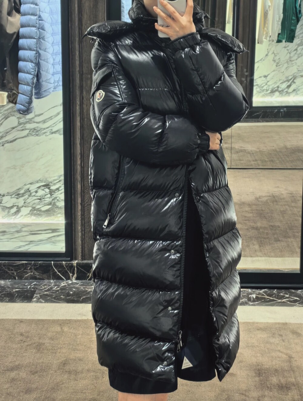 이 롱 아이템은nylon laqué 소재로 제작되어