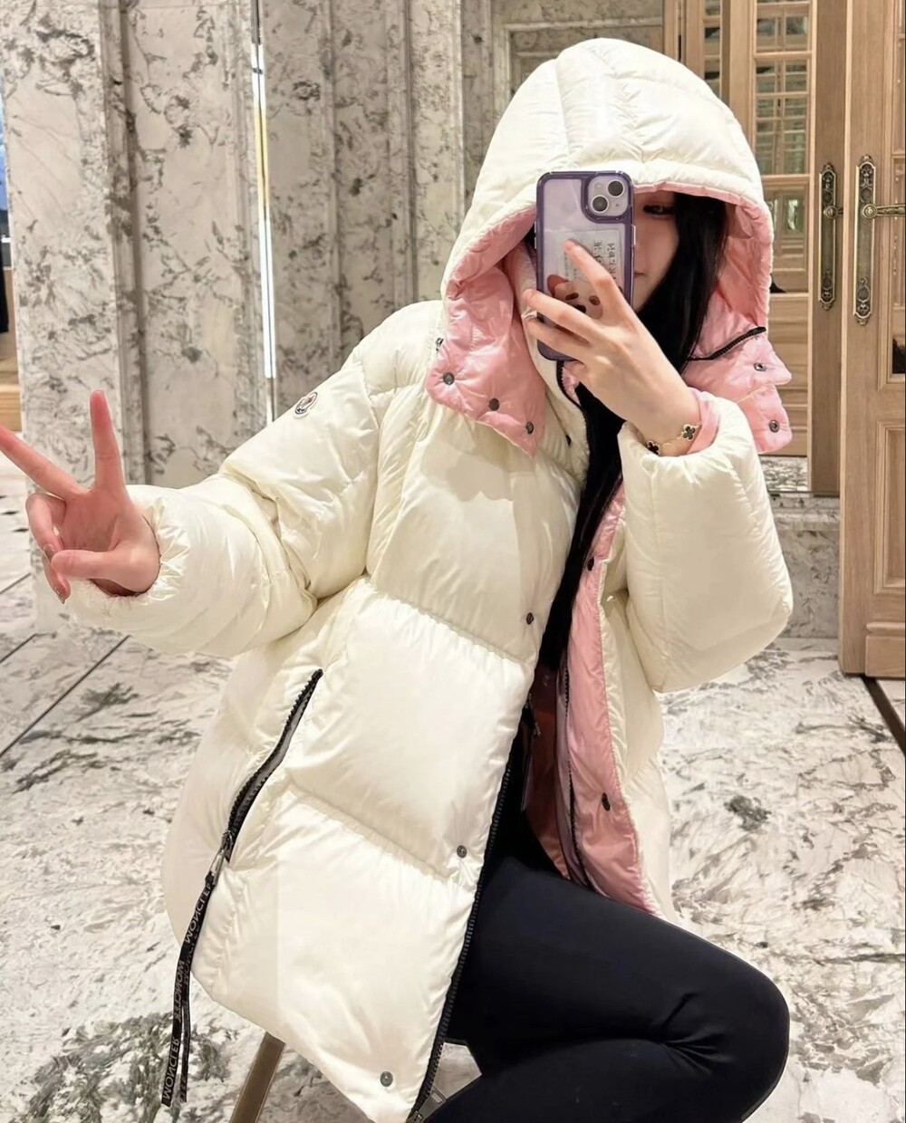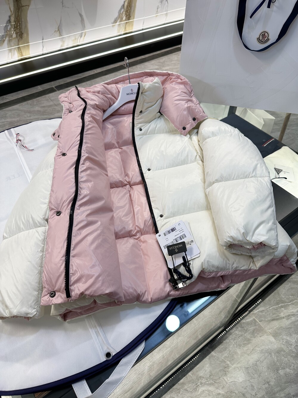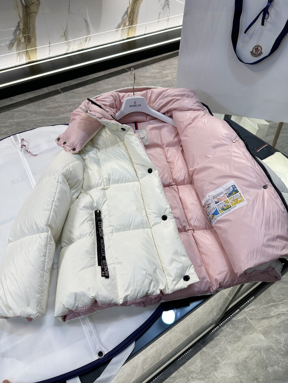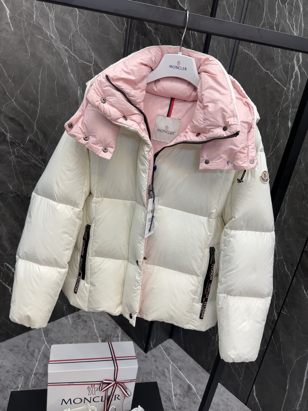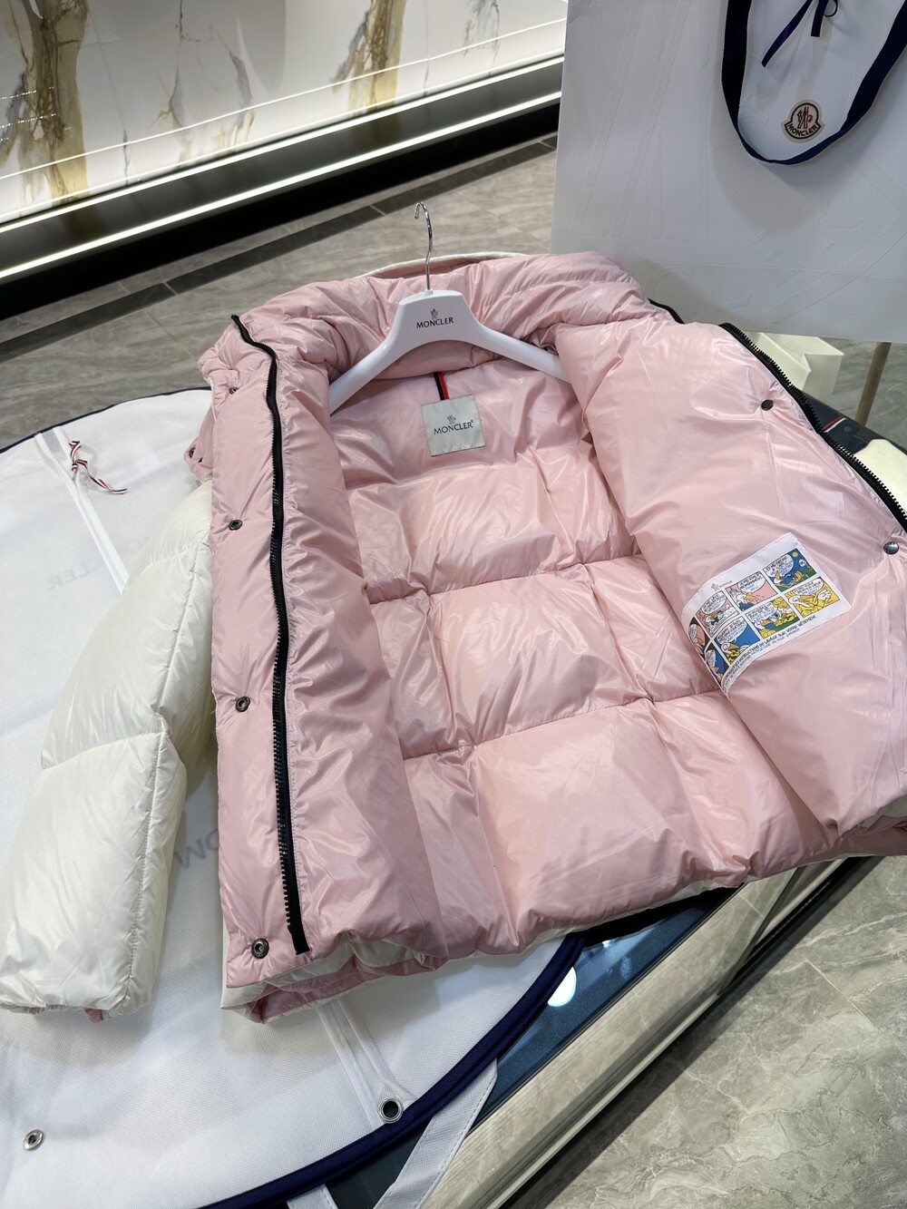 Parana 다운 재킷은 대조적인 내부 및