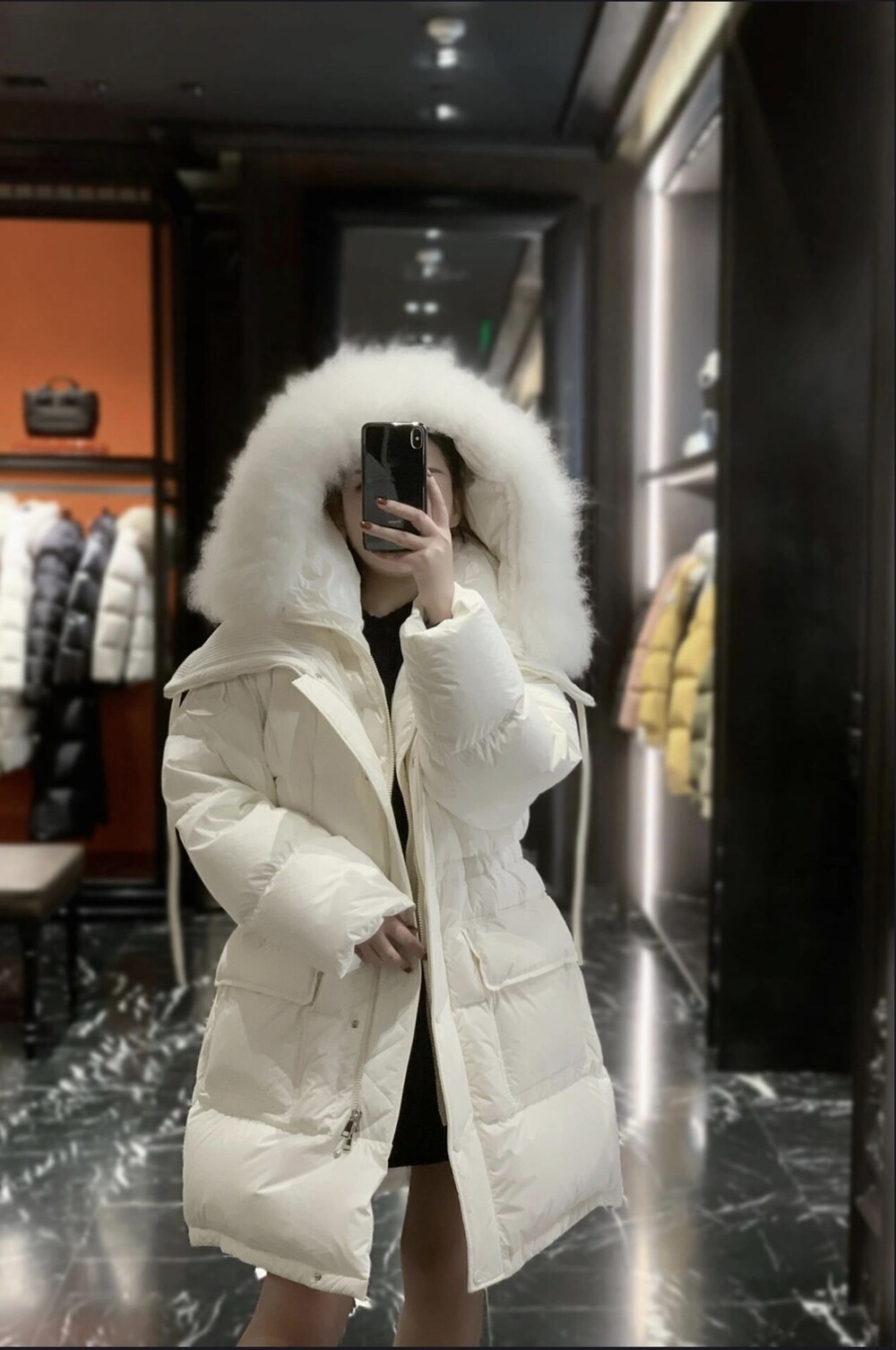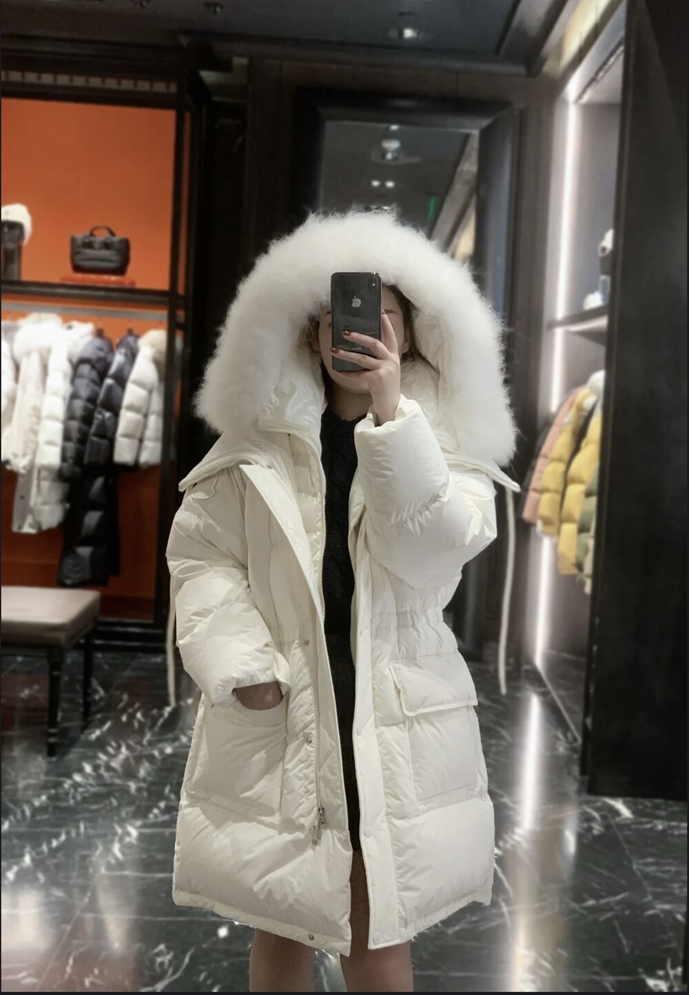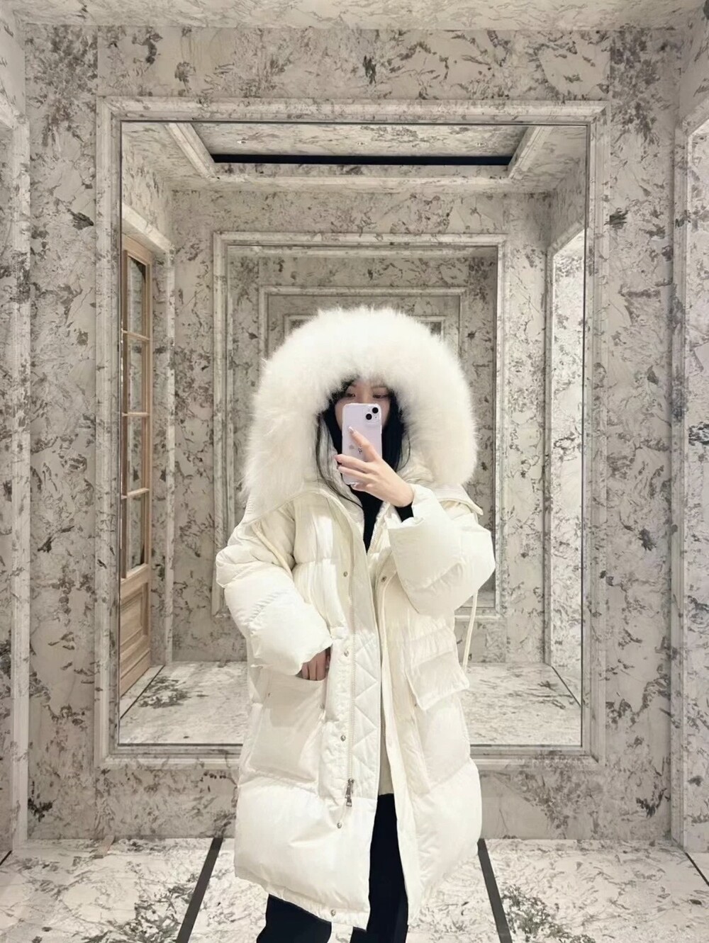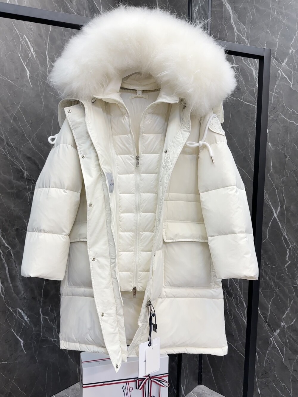 여성 후드 롱다운 자켓입니다