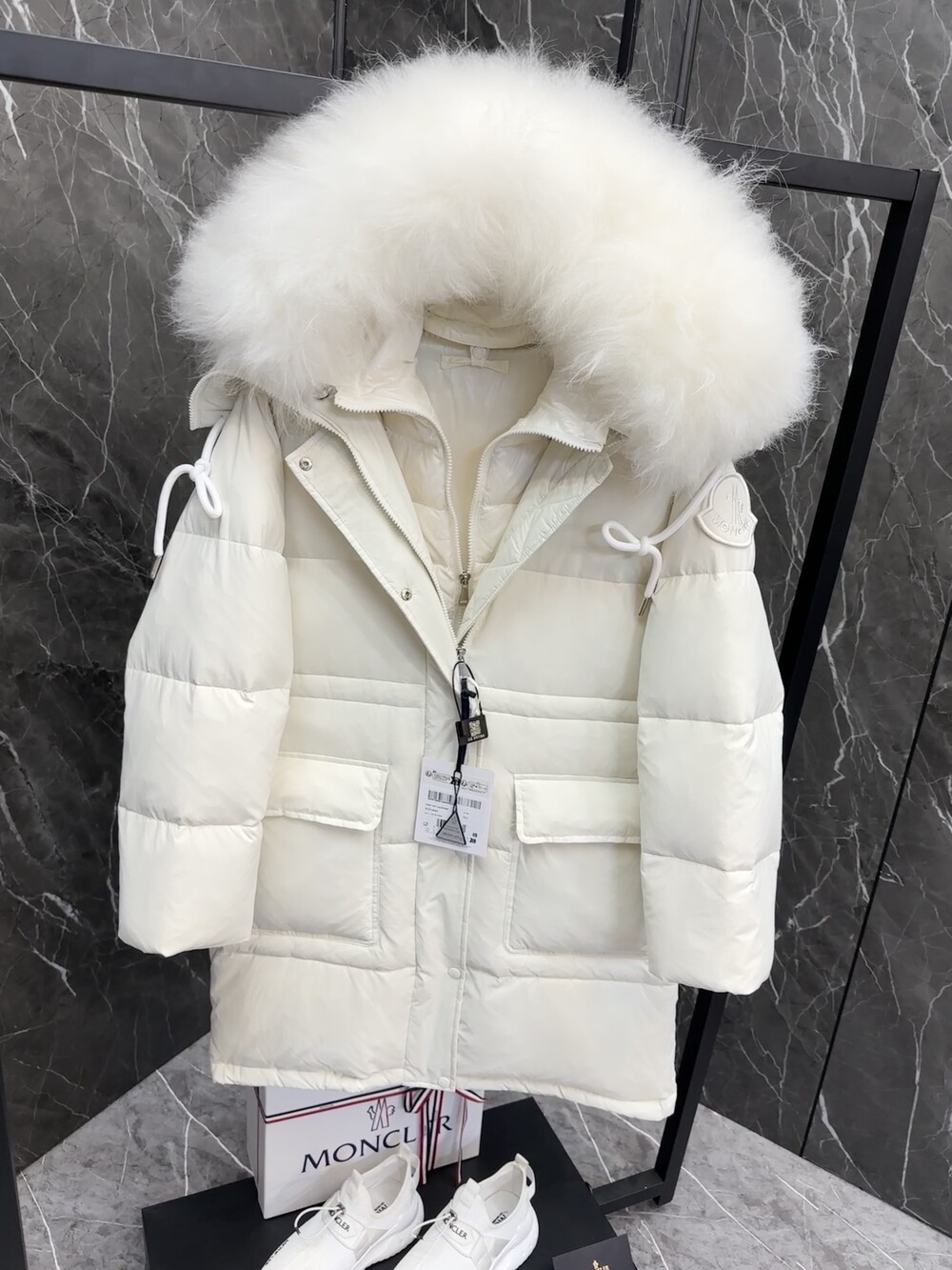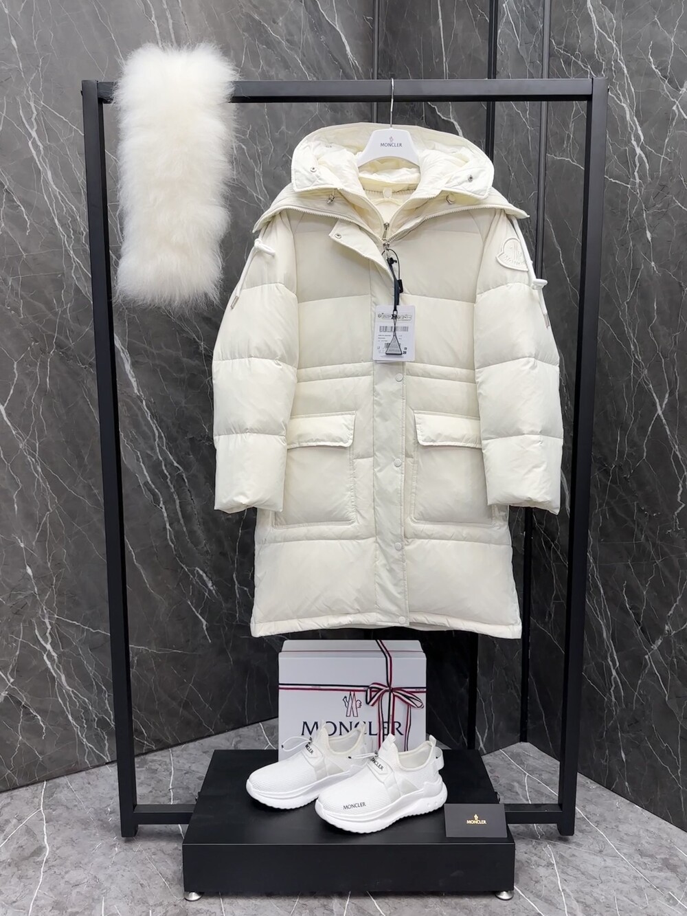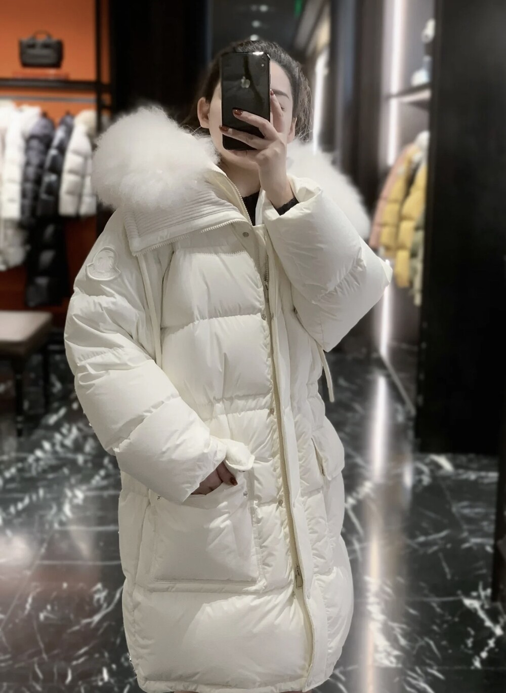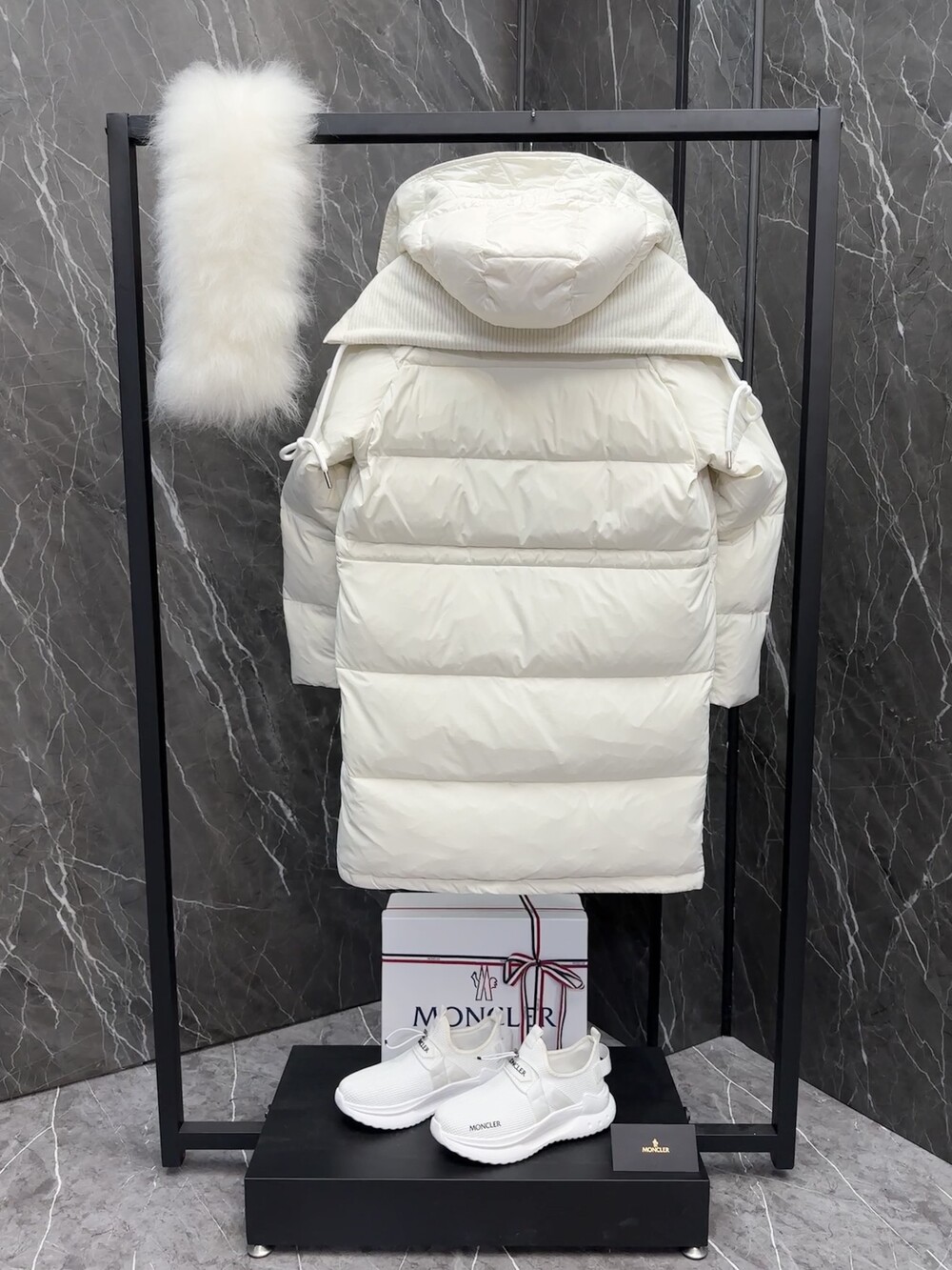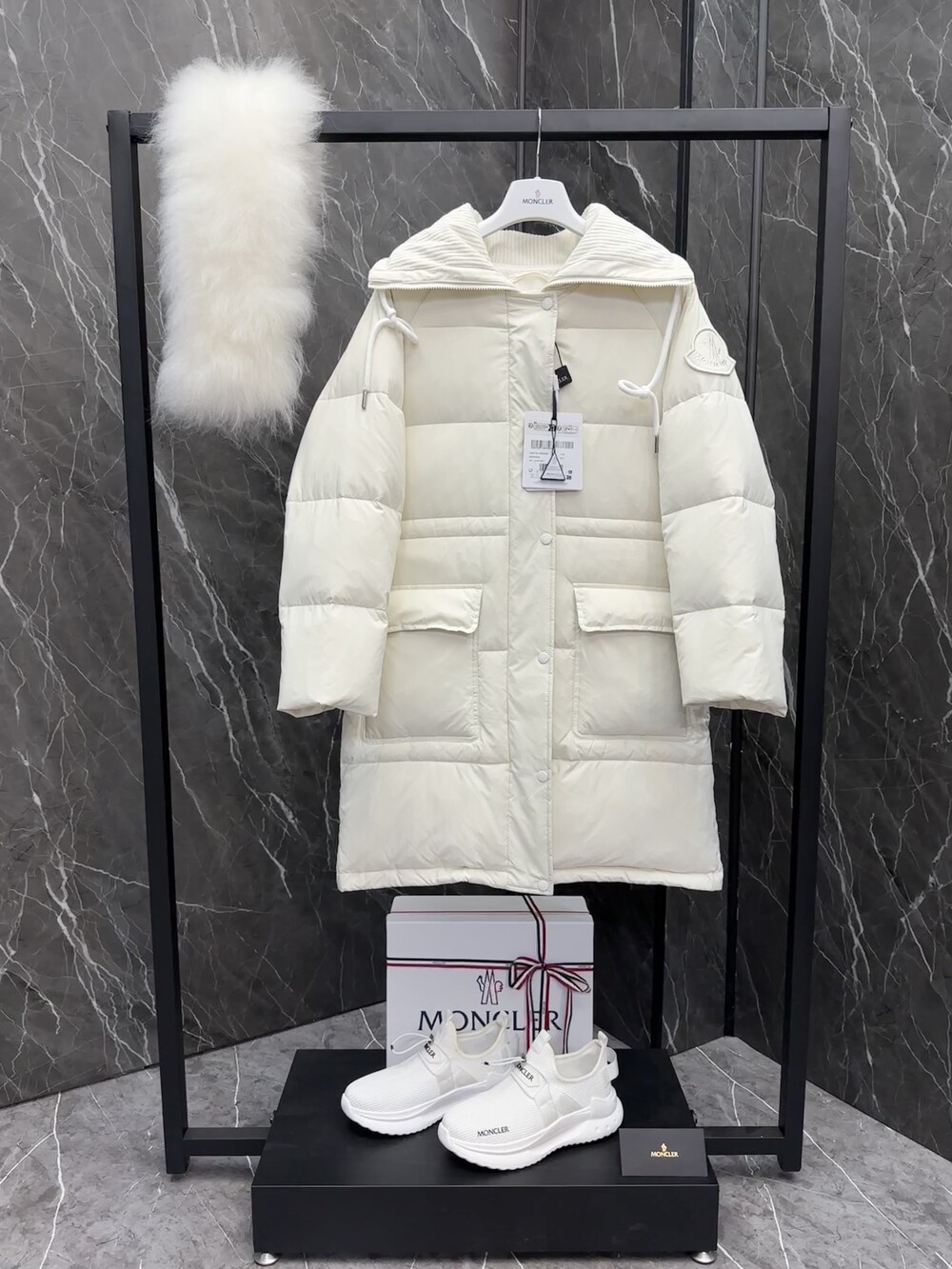 여성 후드 롱다운 자켓입니다