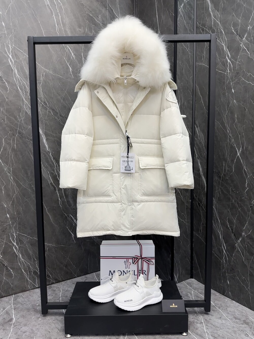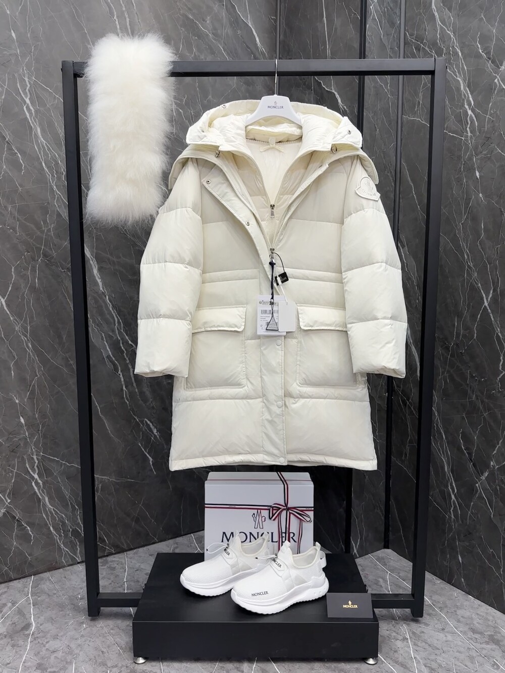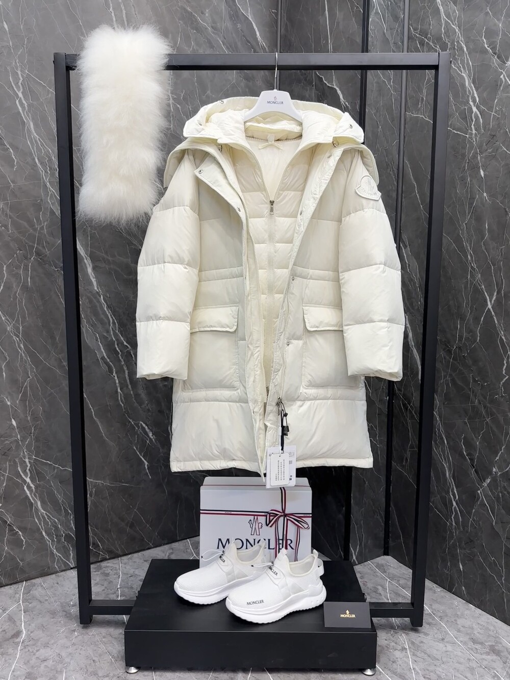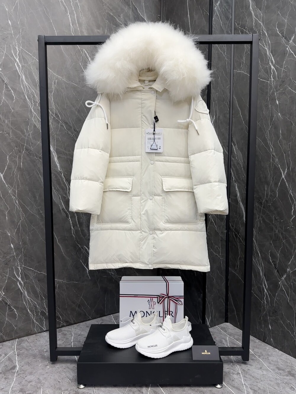 여성 후드 롱다운 자켓입니다
