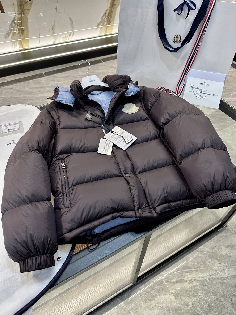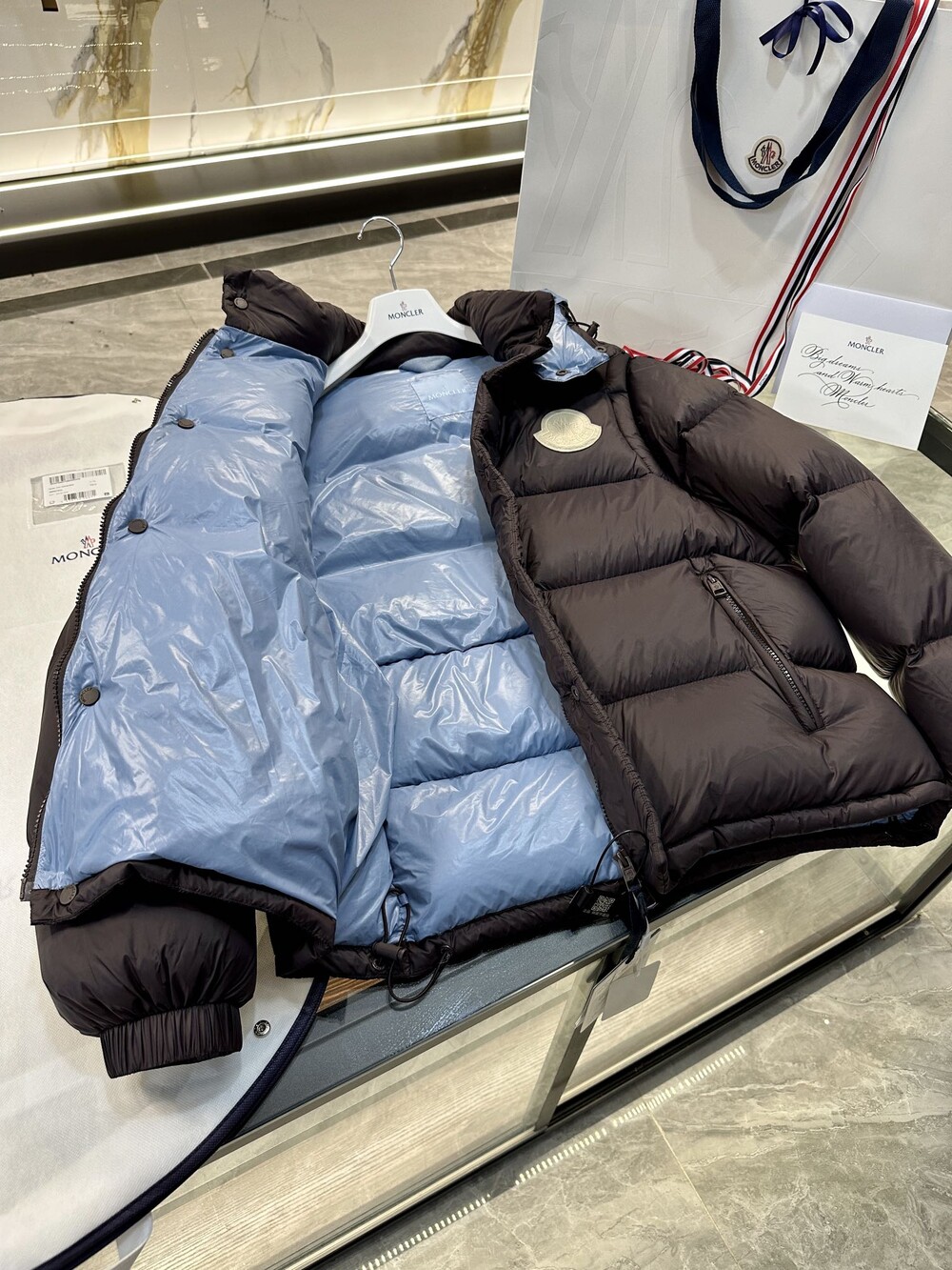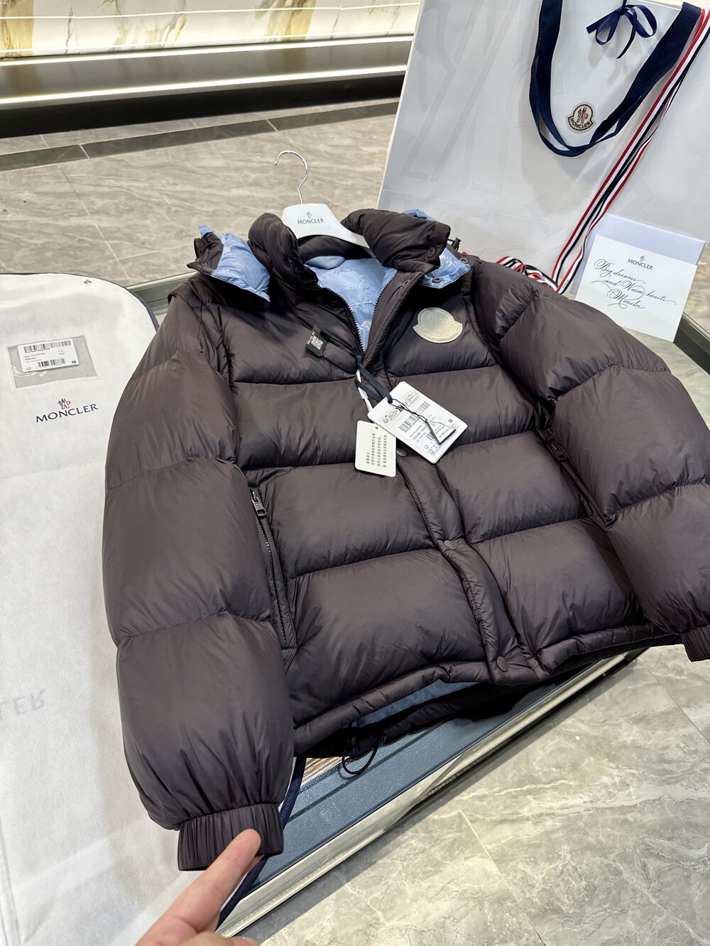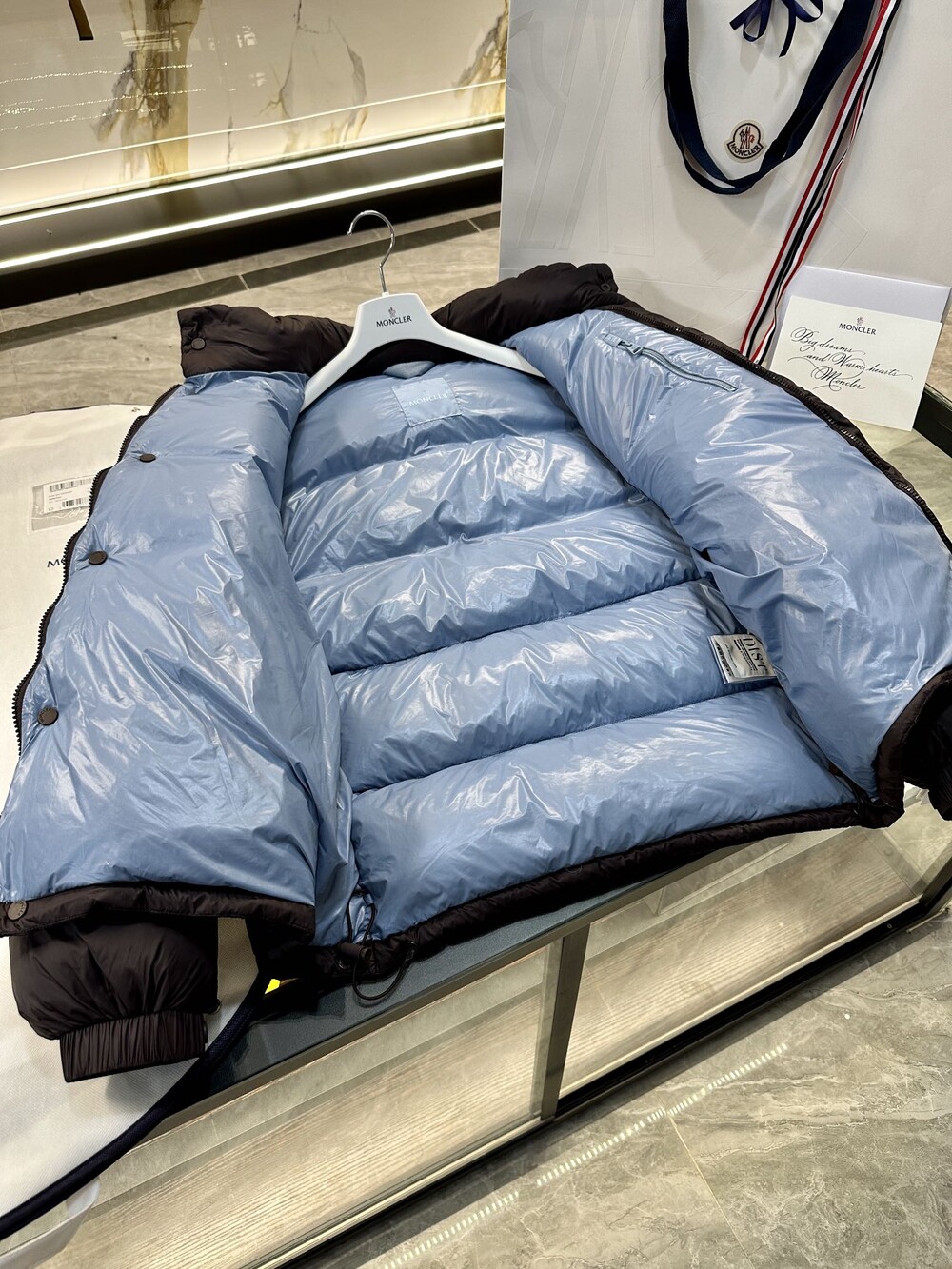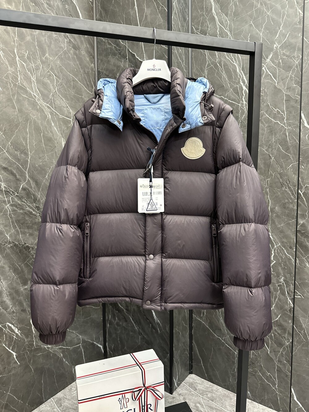 이 다운 재킷은 나일론으로 제작되었으며