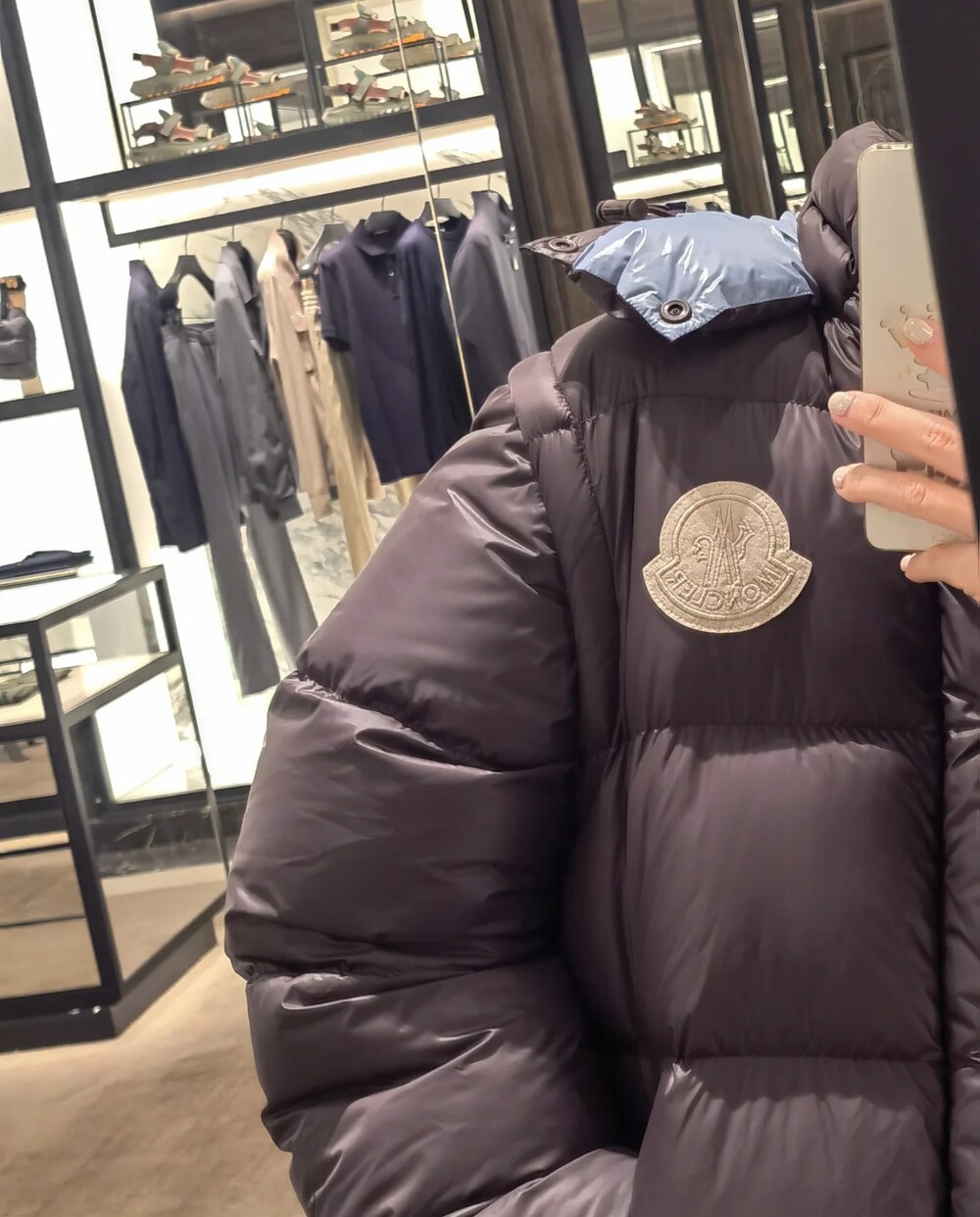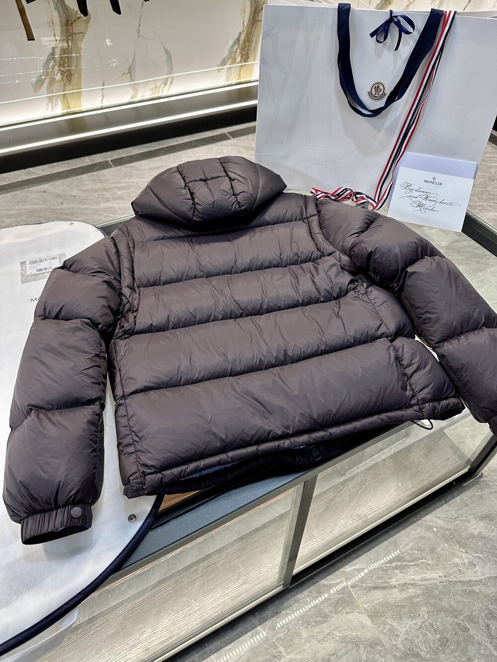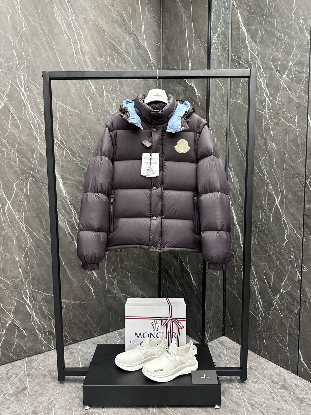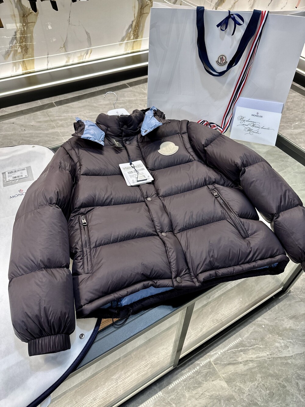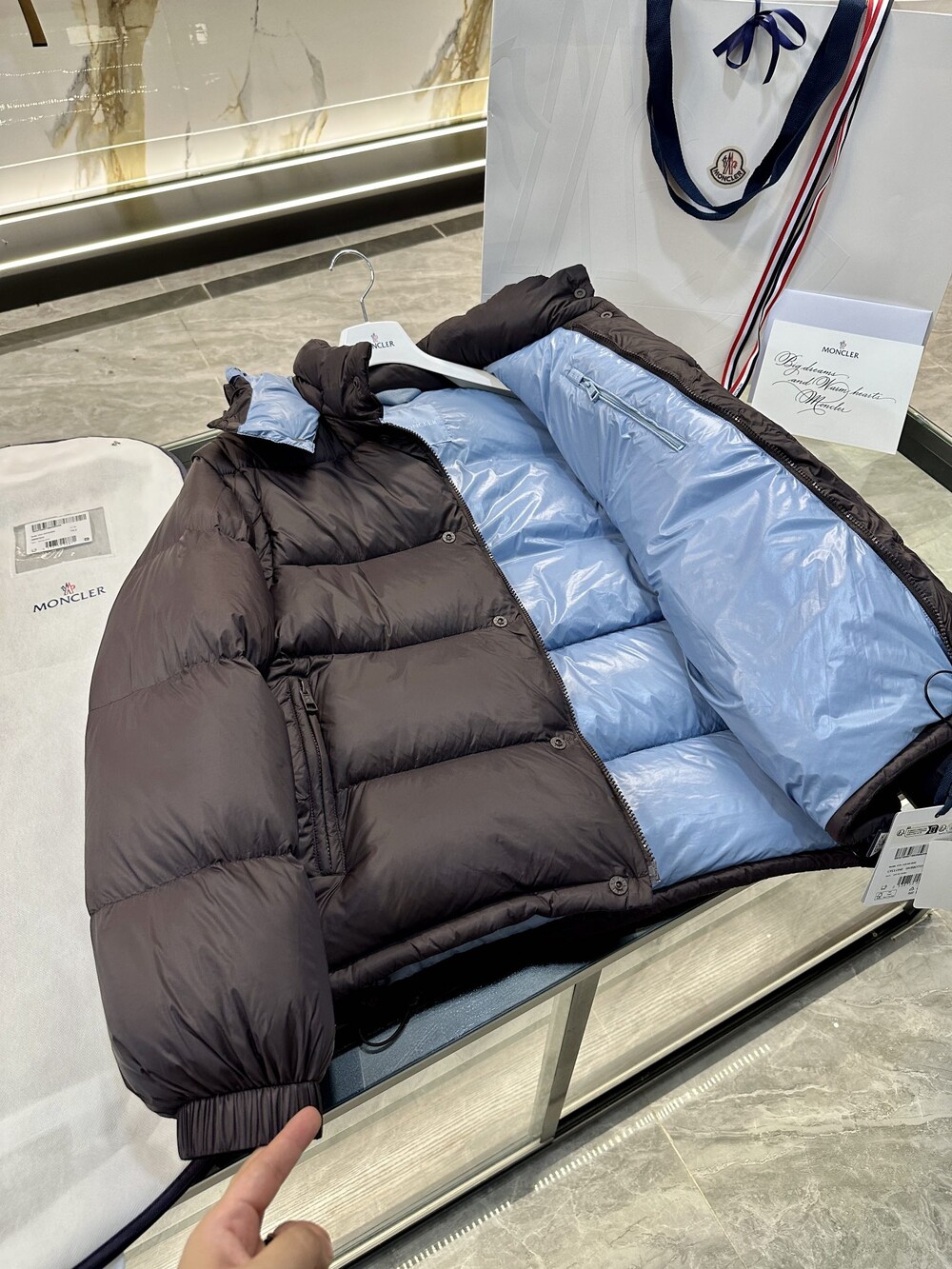 이 다운 재킷은 나일론으로 제작되었으며